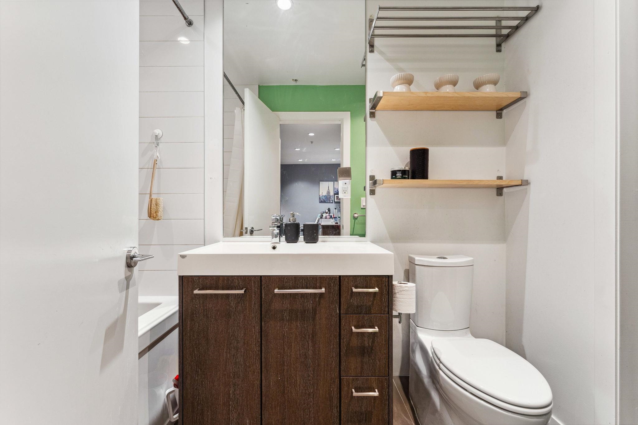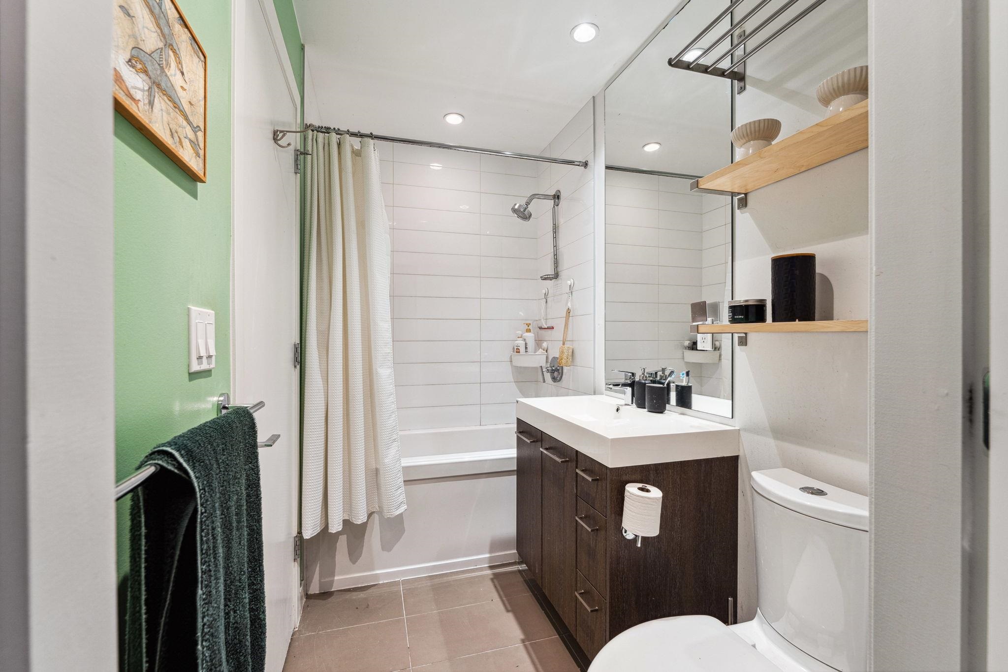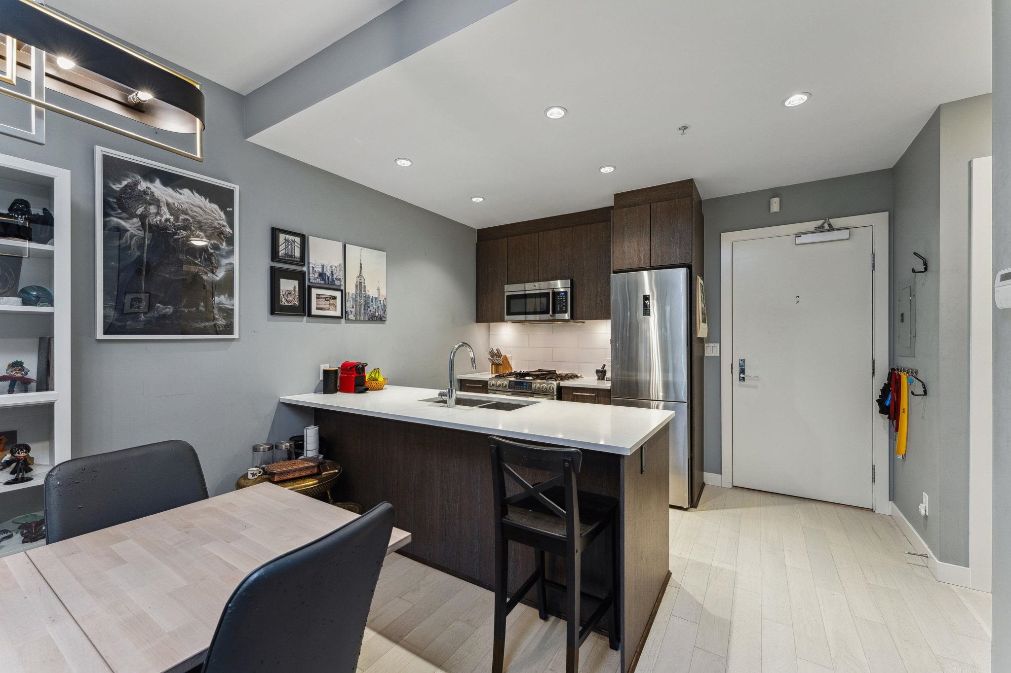 Private, bright, & spacious - welcome to this open concept 1 bed 1 bath home in the concrete built Atitude atop beautiful Burnaby Mountain. Thoughtfully designed, this home features spacious living & dining areas, over height ceilings, perennial laminate flooring, insuite laundry, nook for home office, & oversized windows w/ roller blinds. Chef's kitchen features gas range, top rate SS appliances, & plenty of storage. Large & cozy bedroom includes walk through dual closets & connects to your modern 4 piece ...