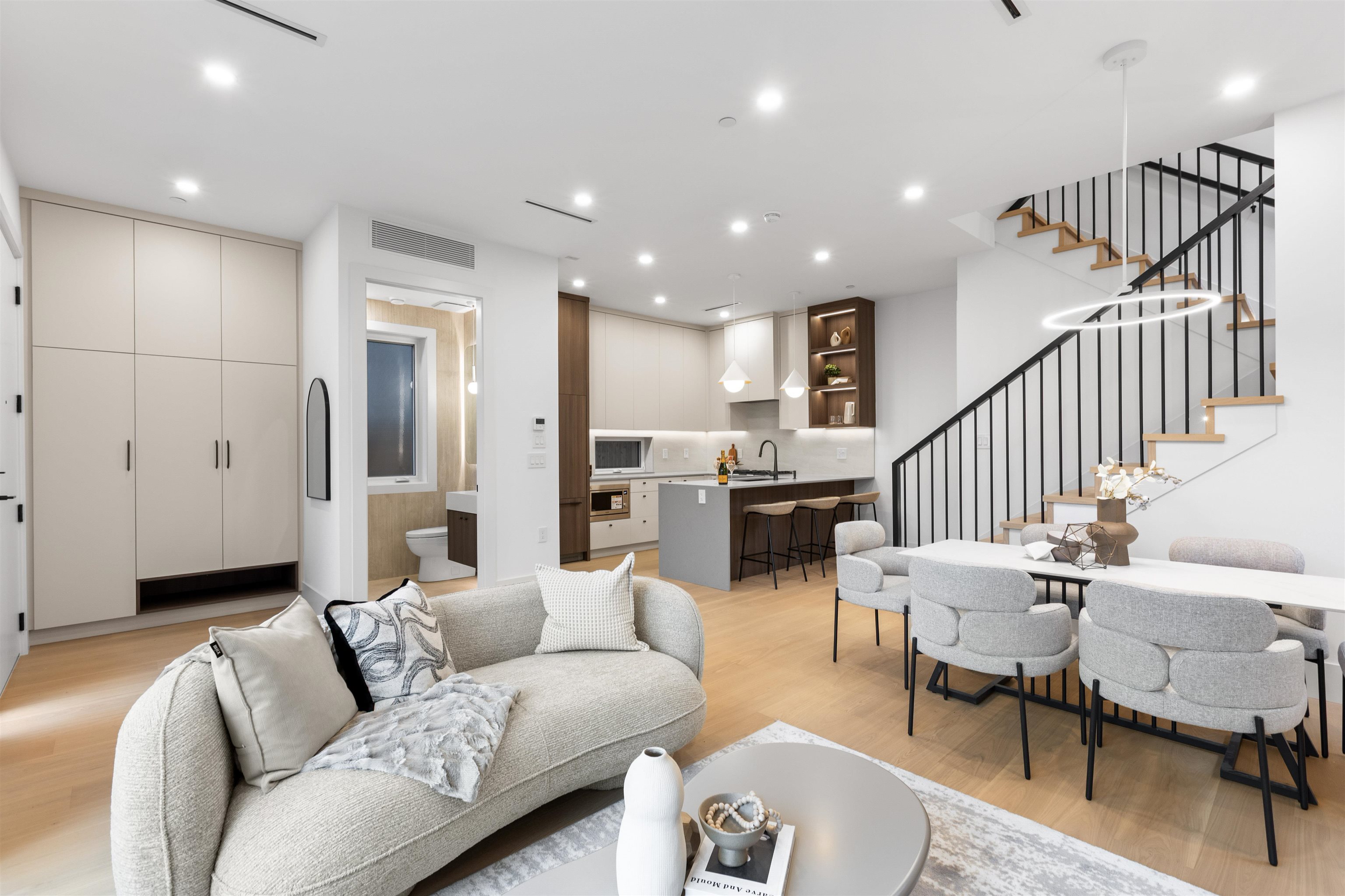 DUNDAS3 - A brand new collection of modern residences. 1,613 SF FRONT UNIT of a triplex is thoughtfully designed w/ 3 beds 4 baths + 1 EV-ready carport. Crafted w/quality + functionality in mind, each home includes zoned heat pumps, Ring doorbell, security cameras, engineered hardwood flooring, 10ft ceilings on the main level, ample pantry/storage space, large entry-way closets, washer/dryer + F&P appliance packages. You're steps from parks, schools + vibrant retail/restaurant corridor along Hastings St, sc...