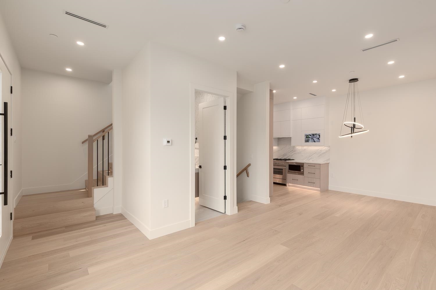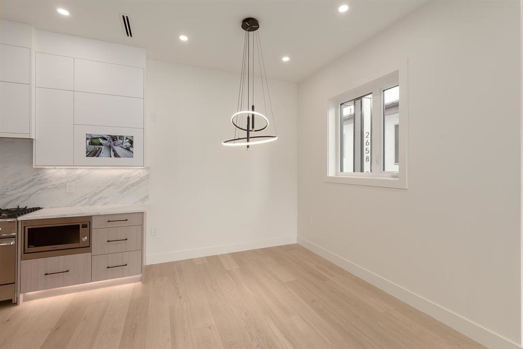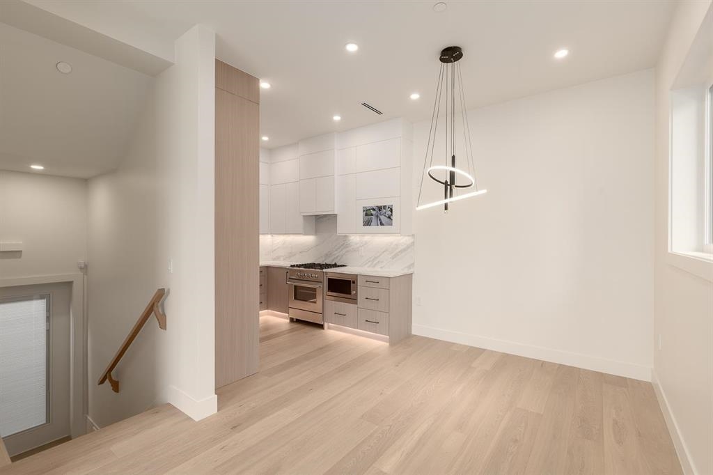 This brand-new, modern north-facing 1/2 duplex is located in a vibrant neighborhood close to parks, shopping, and community centers. The home features a gourmet kitchen with quartz countertops, custom cabinetry, and high-end Fisher & Paykel appliances including a gas range, fridge, dishwasher, and microwave. Soaring 9-foot ceilings, engineered hardwood floors, and large windows fill the space with natural light and create a bright, contemporary atmosphere. Bedrooms include bay windows with views of downtown...