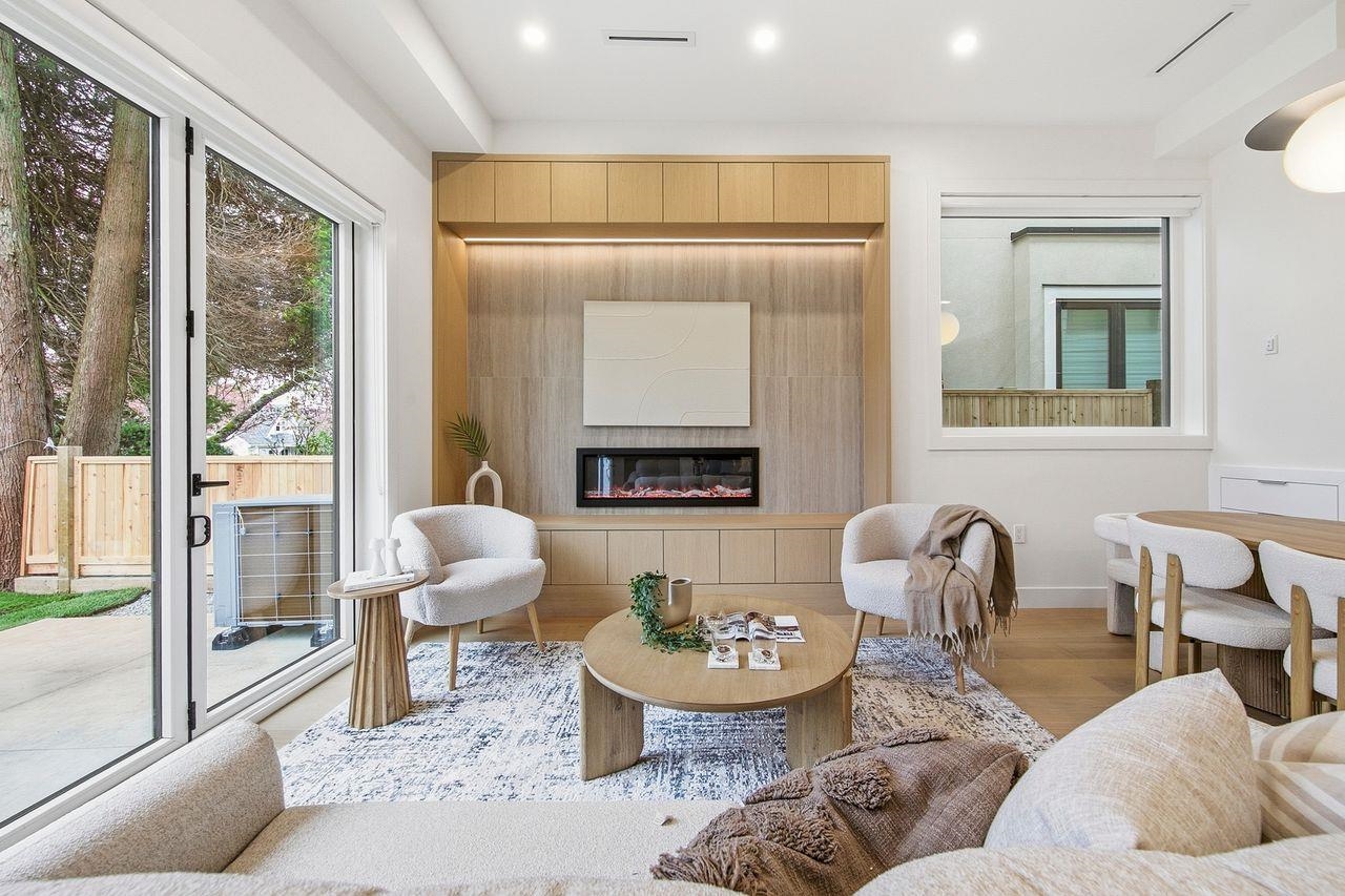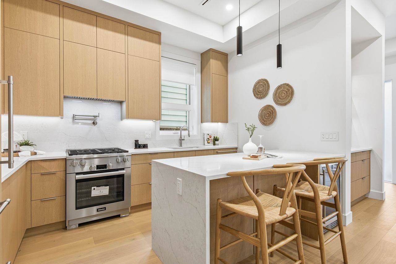 DUNBAR HOMES is a luxurious 1/2 duplex with a spectacular top-floor retreat feat. vaulted ceilings, patio & expansive MOUNTAIN/OCEAN views. Spacious L/R features built-in fireplace, dedicated bar area, both with custom cabinetry, LED lights & SOARING 10.5' ceilings. 9’ folding doors open to a beautifully landscaped private yard to a large concrete patio with BBQ hookup. The gourmet Kitchen features full Miele Appliances, extensive full height cabinetry, waterfall island with integrated dining & beverage co...