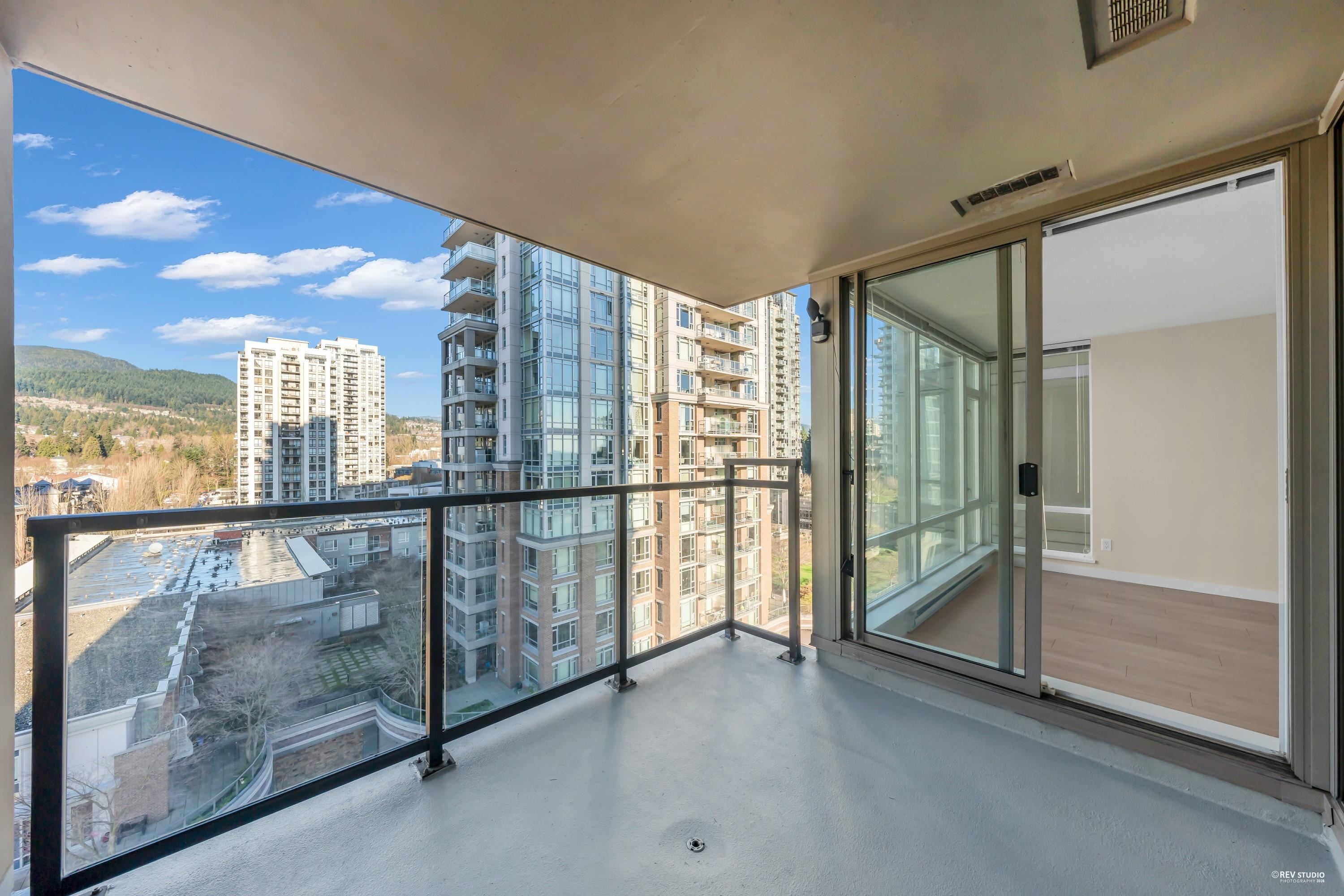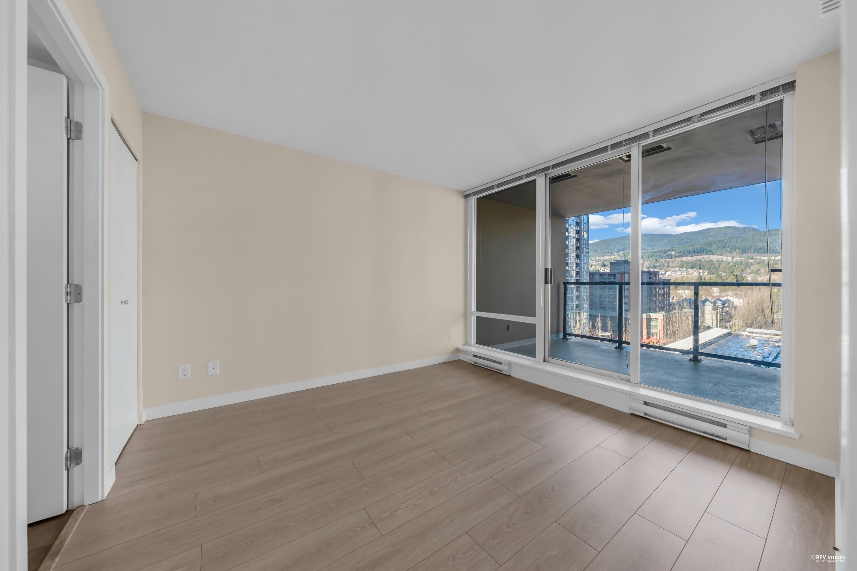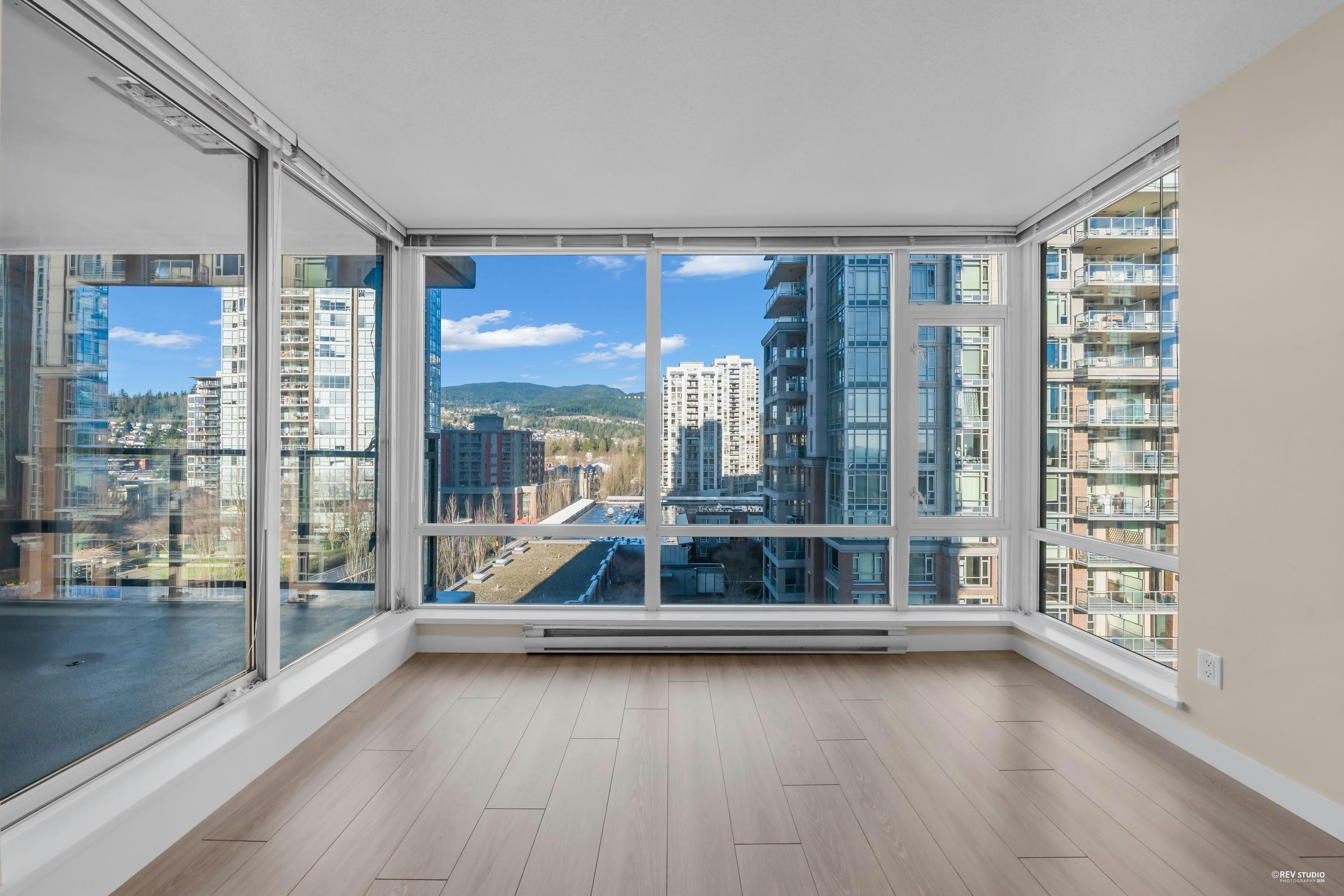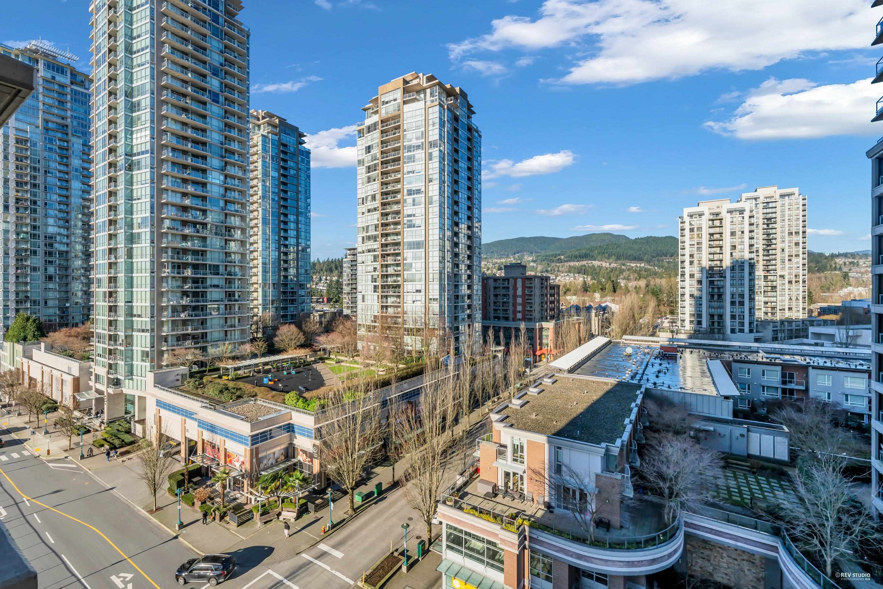 The LEVO Heart of Coquitlam Centre. Spacious 2 bedroom 2 bath with floor to ceiling windows enjoying beautiful mountain view, new flooring, fresh paint & new washer & Dyer, move-in ready, bright, quiet and much cooler in the summer months. S/S appliances, granite counters, tiled 5pcs in primary bathrooms. The building features secured resident parking, visitor parking. Amenities w party room & 30,000 ft 2 roof top garden with waterfalls and a walking path offering a lovely private get-away in the middle of...