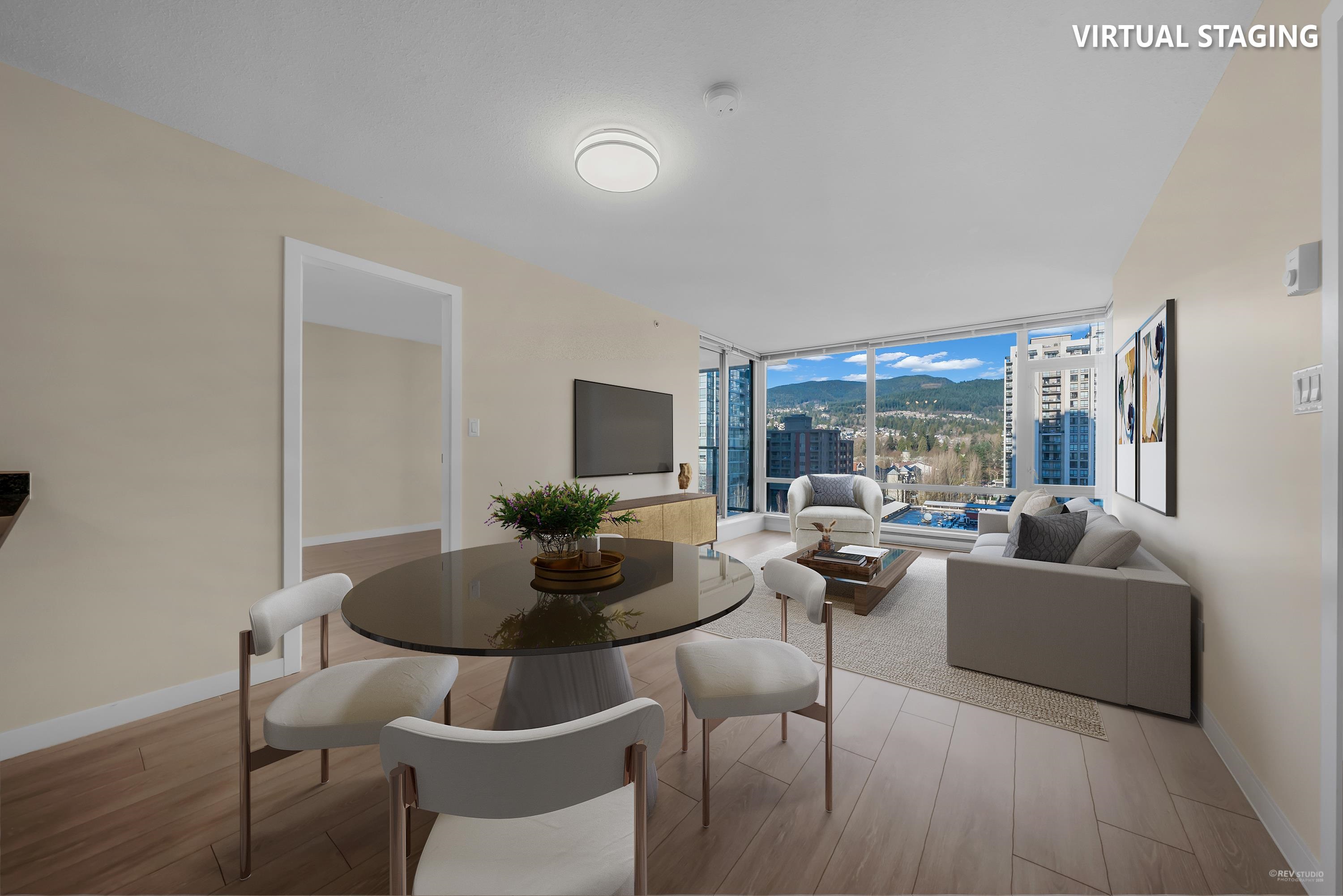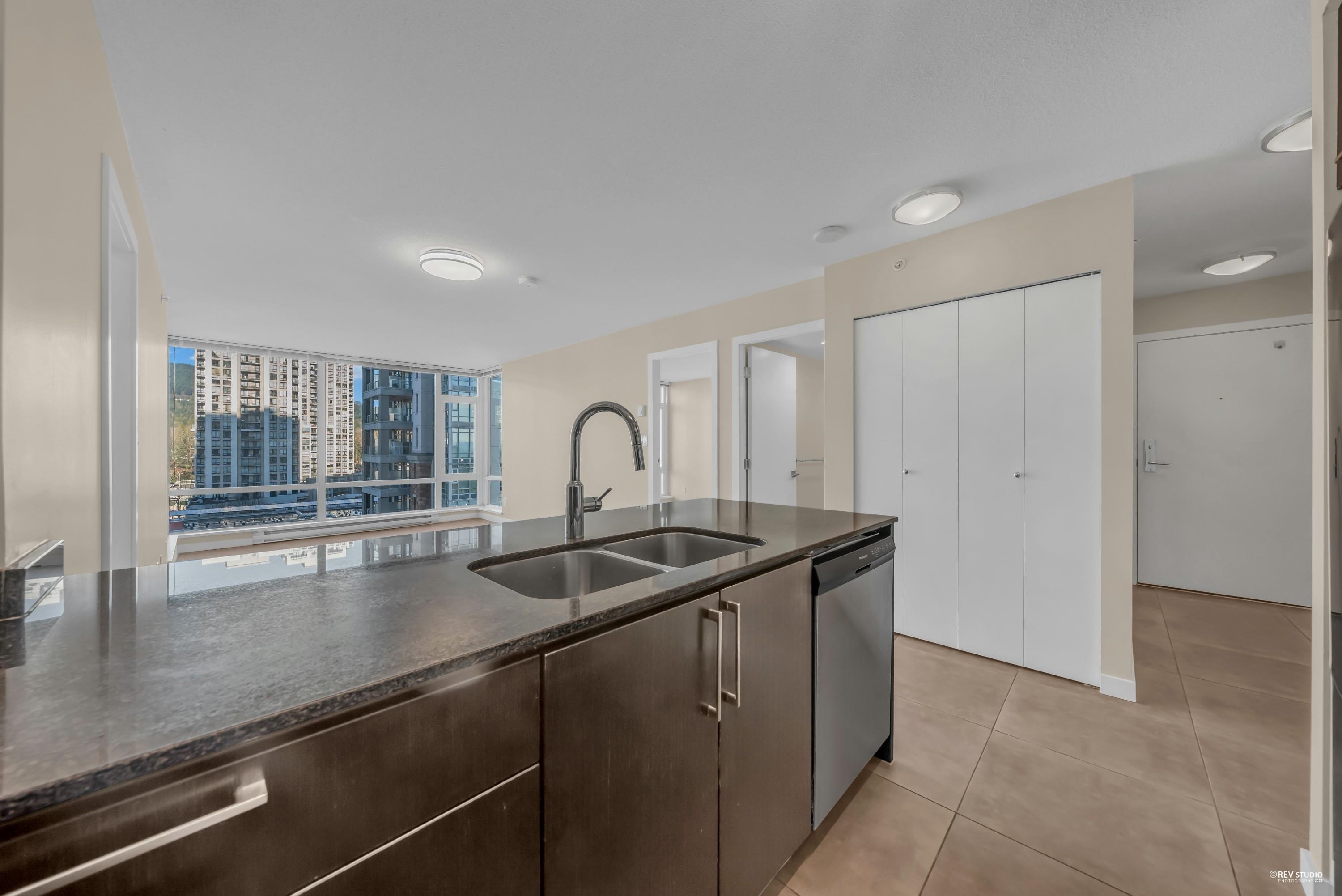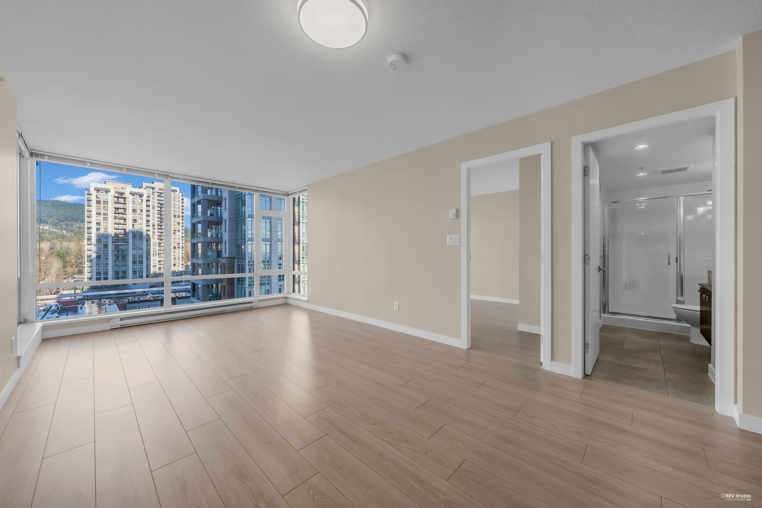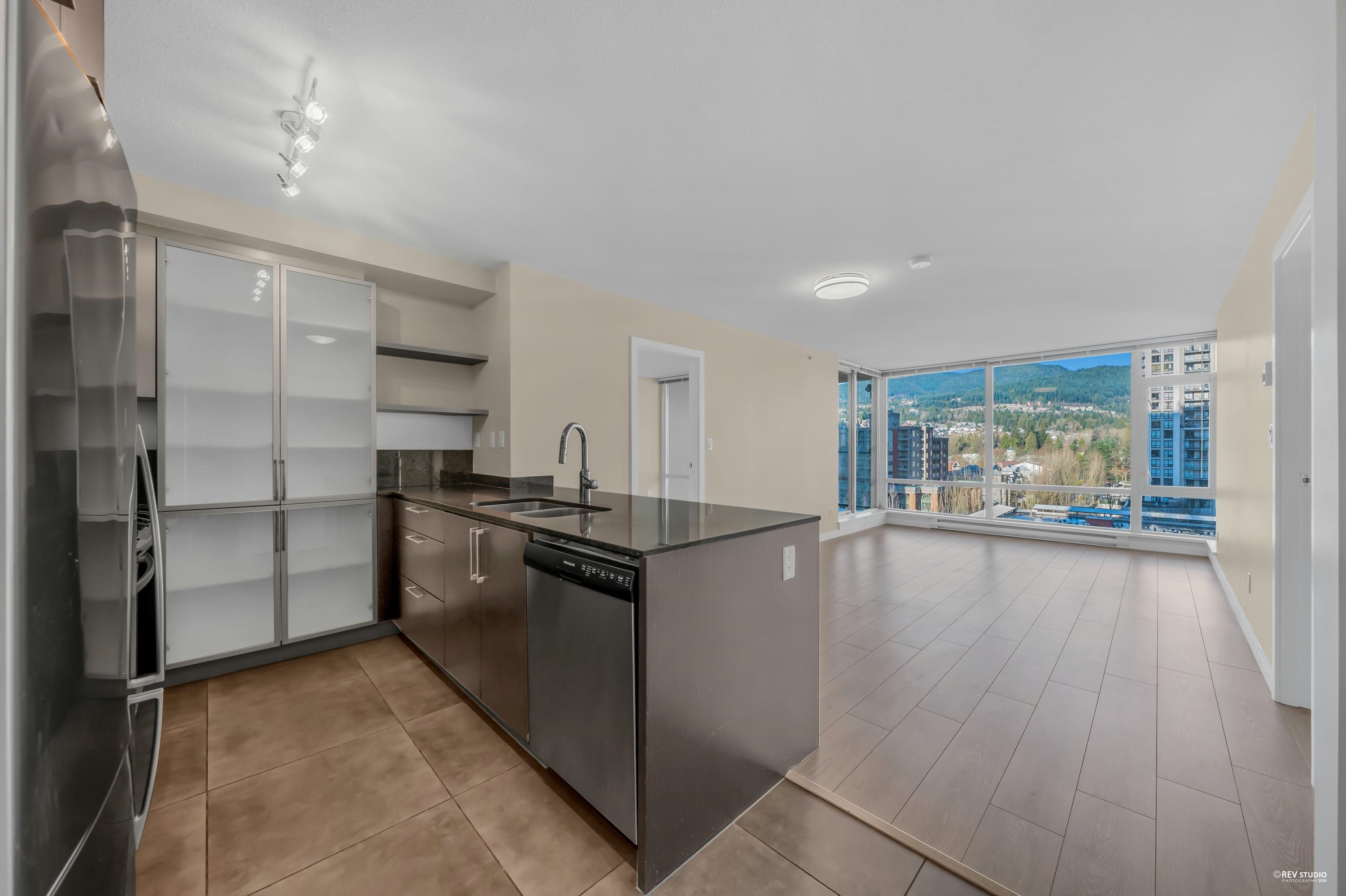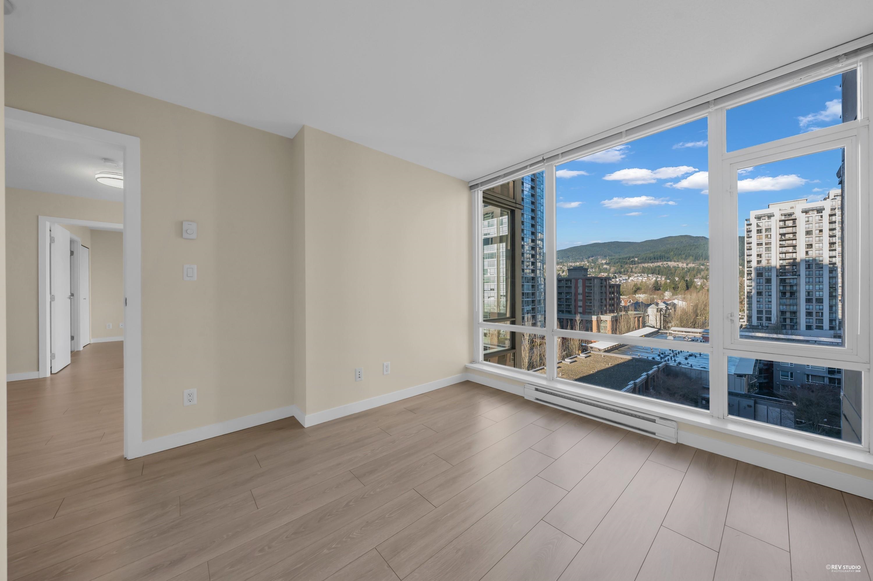 The LEVO Heart of Coquitlam Centre. Spacious 2 bedroom 2 bath with floor to ceiling windows enjoying beautiful mountain view, new flooring, fresh paint & new washer & Dyer, move-in ready, bright, quiet and much cooler in the summer months. S/S appliances, granite counters, tiled 5pcs in primary bathrooms. The building features secured resident parking, visitor parking. Amenities w party room & 30,000 ft 2 roof top garden with waterfalls and a walking path offering a lovely private get-away in the middle of...