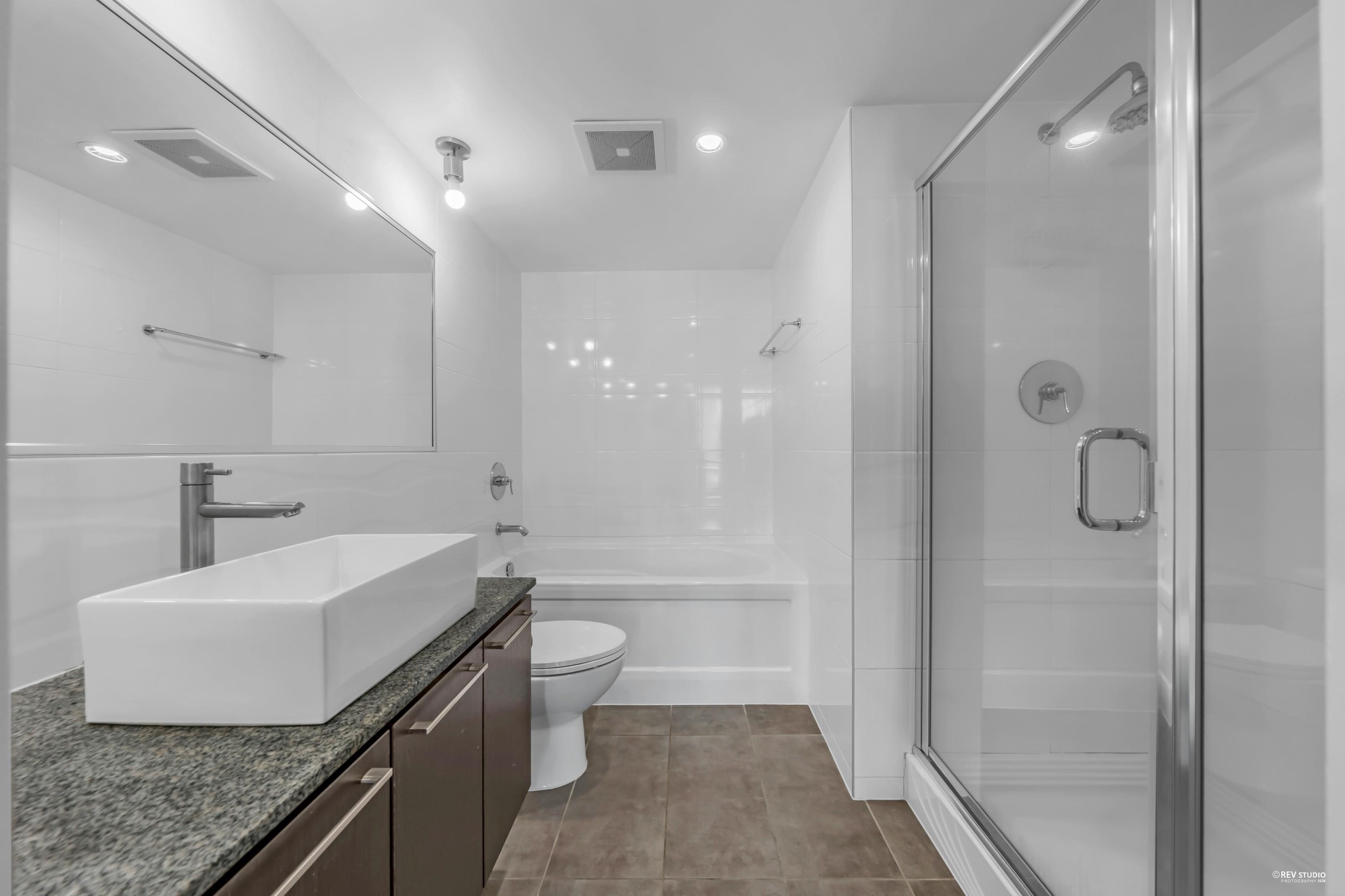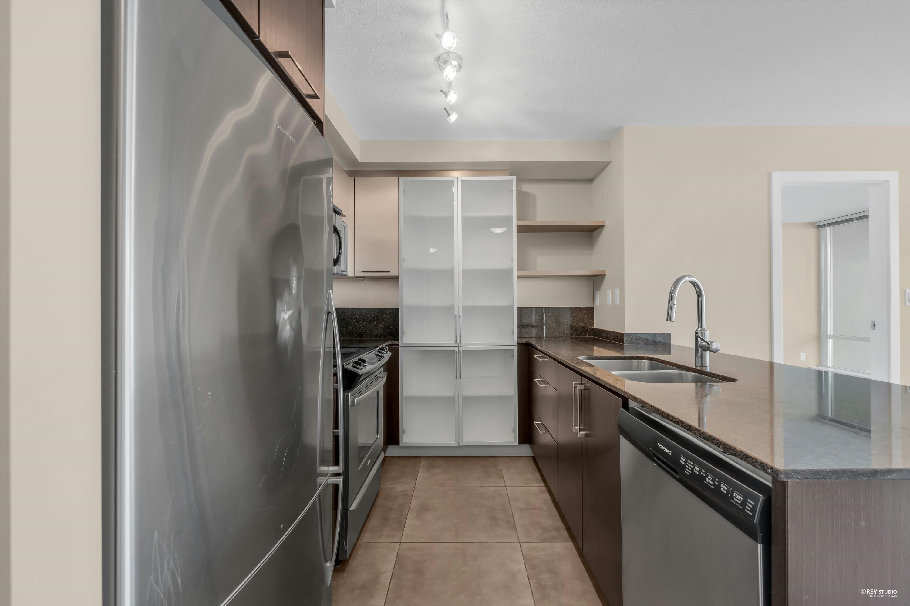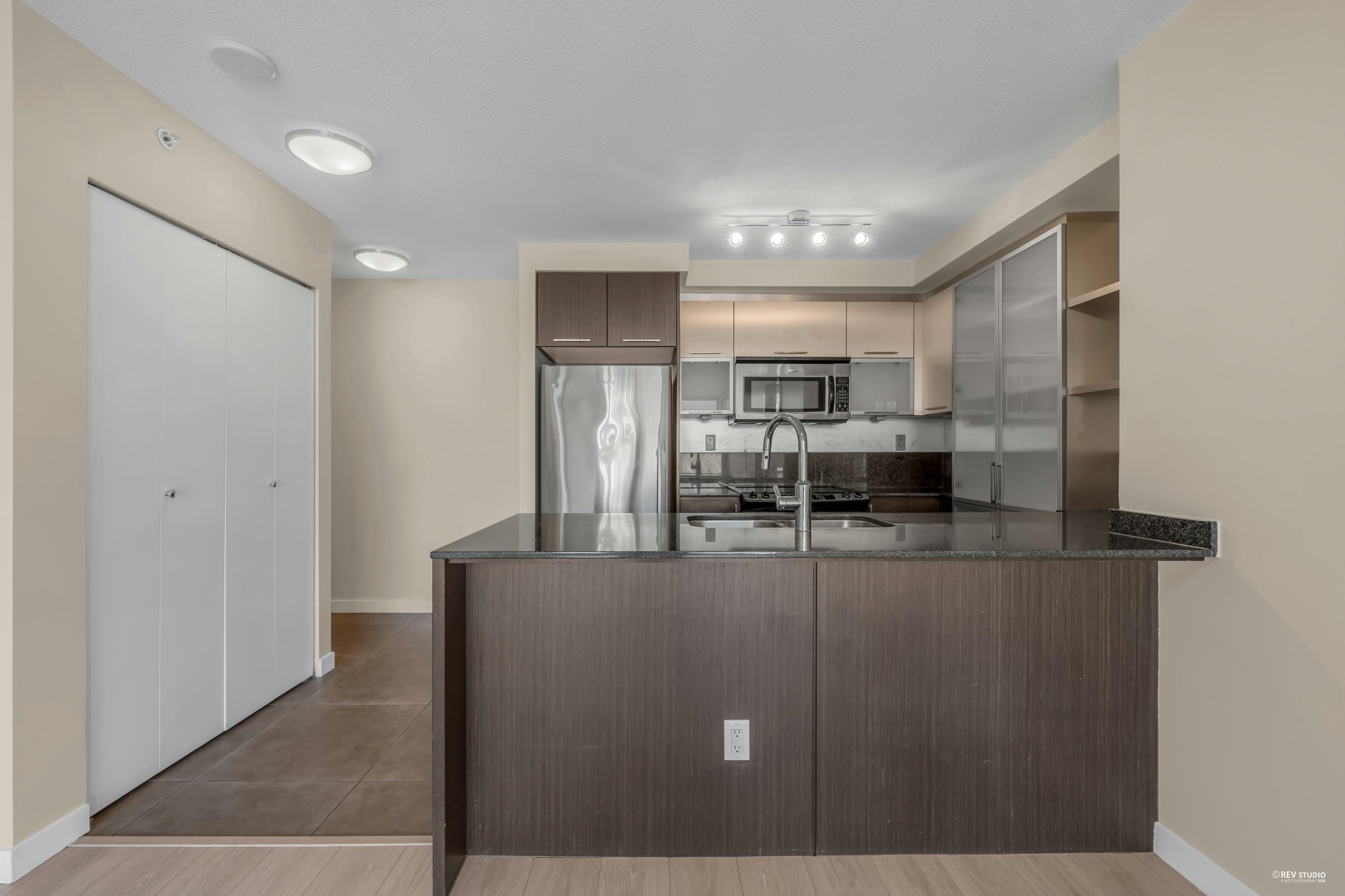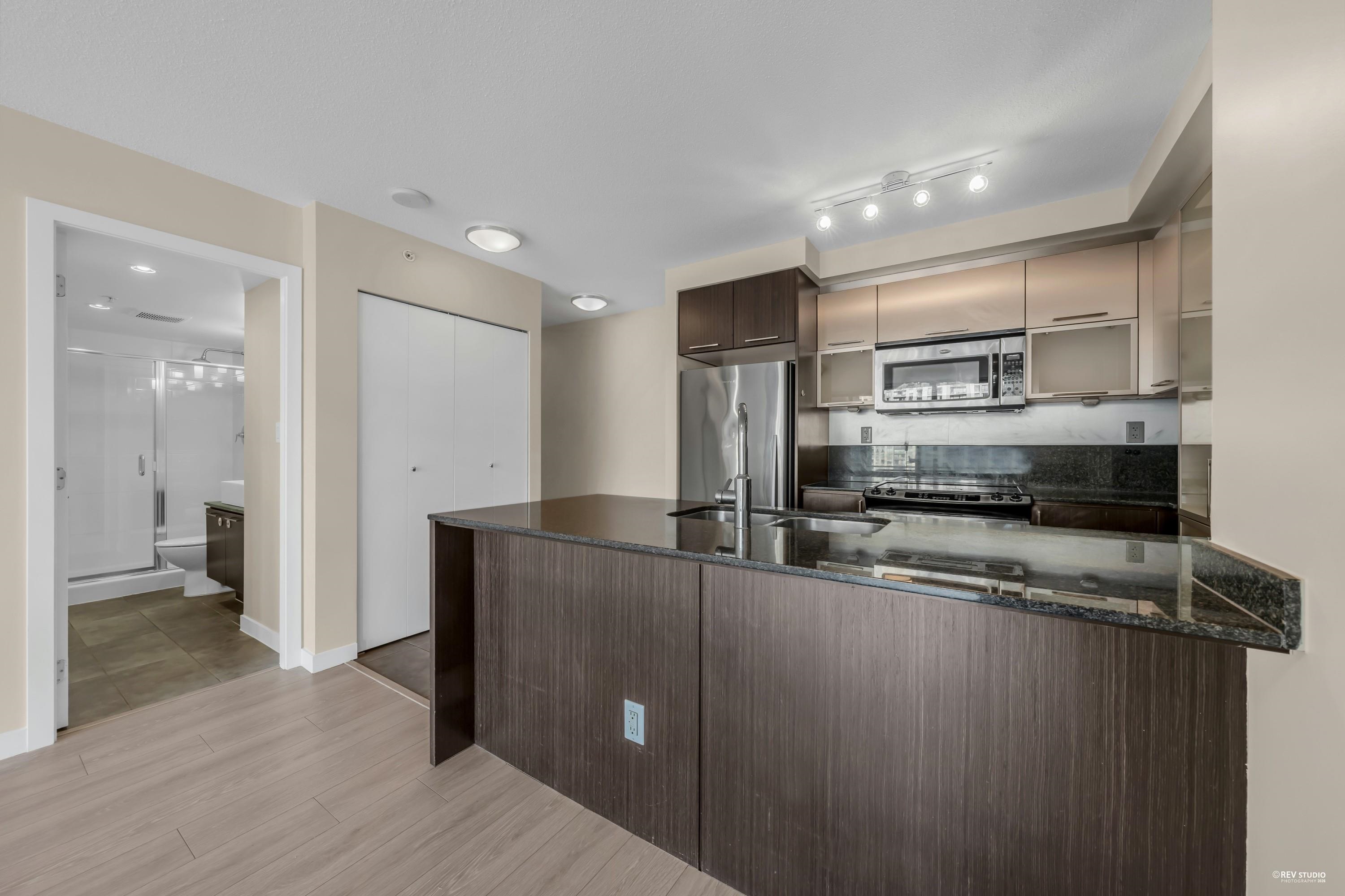 The LEVO Heart of Coquitlam Centre. Spacious 2 bedroom 2 bath with floor to ceiling windows enjoying beautiful mountain view, new flooring, fresh paint & new washer & Dyer, move-in ready, bright, quiet and much cooler in the summer months. S/S appliances, granite counters, tiled 5pcs in primary bathrooms. The building features secured resident parking, visitor parking. Amenities w party room & 30,000 ft 2 roof top garden with waterfalls and a walking path offering a lovely private get-away in the middle of...