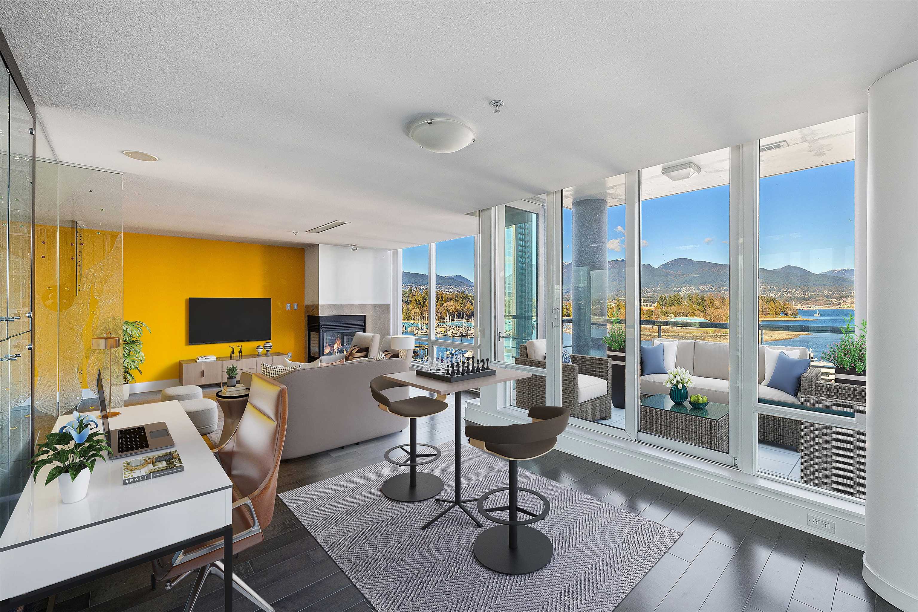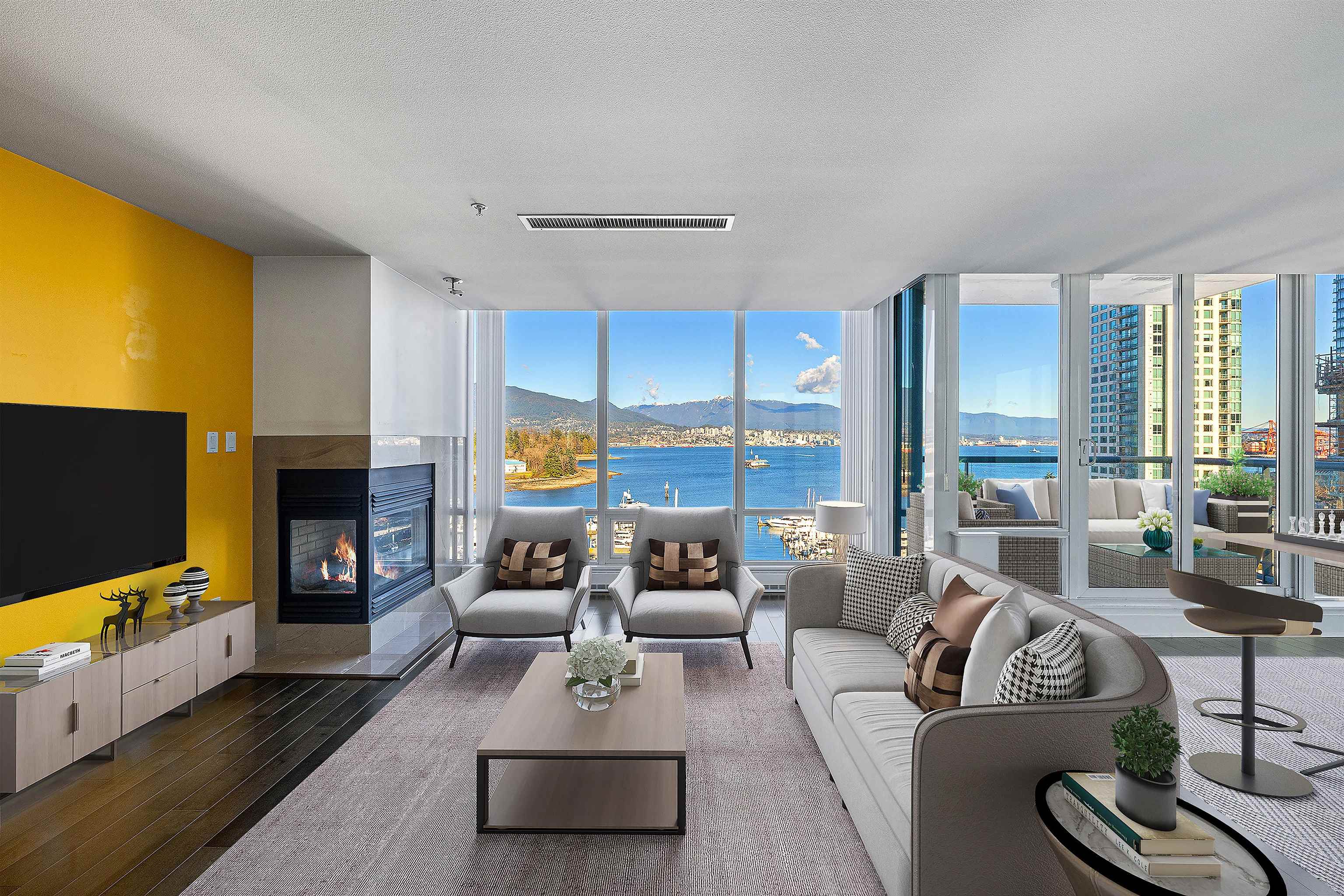 Exclusive waterfront living at Denia, perfectly located along the Coal Harbour Seawall. This spacious 2 bed, 2 bath and den home offers over 1,450 sq ft with stunning unobstructed views of the marina, North Shore Mountains, and Stanley Park. Features include floor-to-ceiling windows, air conditioning, a gas fireplace, and a functional open layout ideal for entertaining, along with excellent storage. Building amenities include some of the best in Coal Harbour: 24-hour concierge, indoor pool, sauna, steam roo...