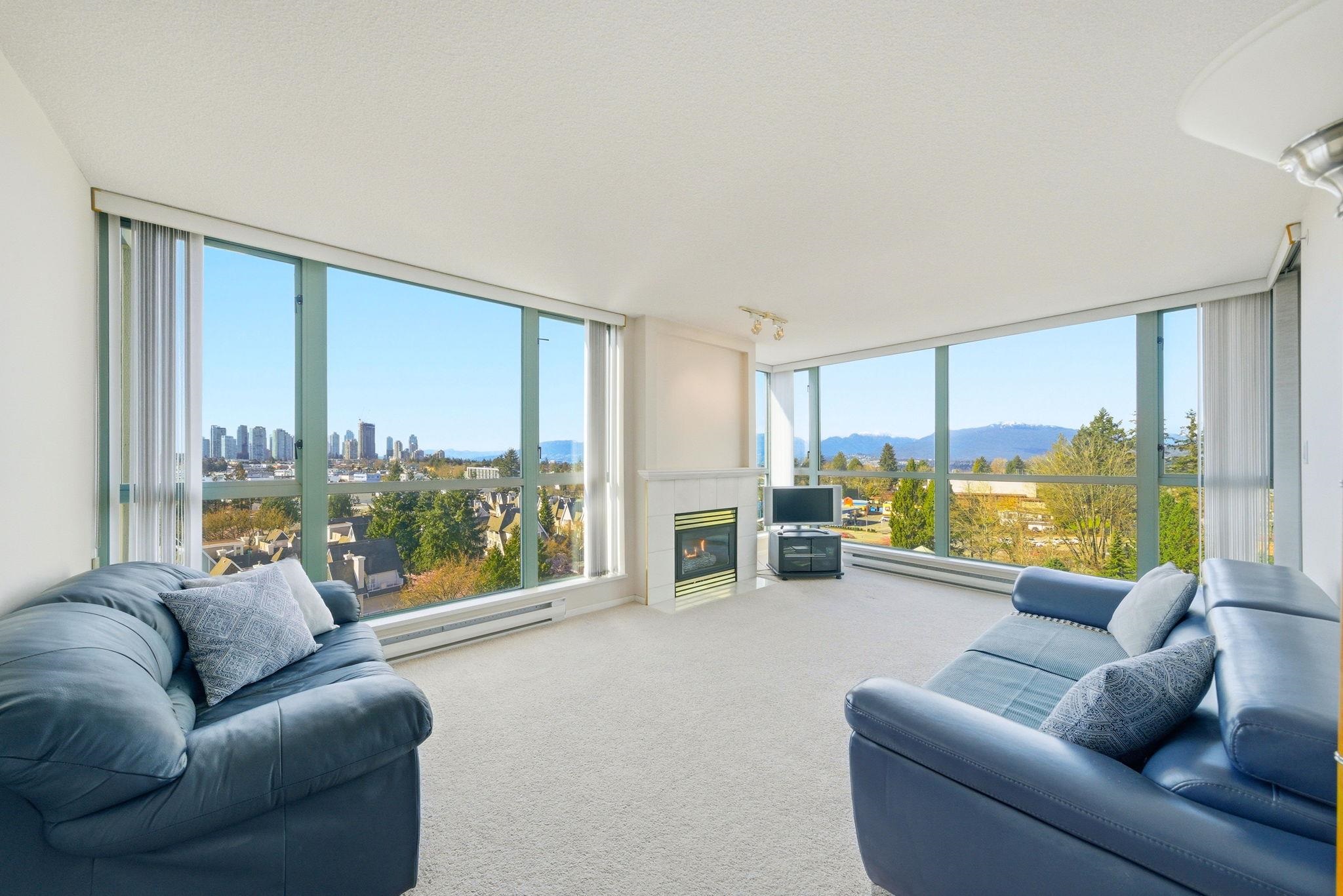 Unobstructed city & mountain views from every room in this bright 2 bed + 2 bath corner unit with west and north exposure. Enjoy beautiful sunsets from the cozy living room by the fireplace, or step out onto your large private covered balcony, perfect for entertaining. Sunny kitchen with breakfast bar and a well designed layout featuring side-by-side bedrooms, including a spacious primary with ample closet space and ensuite. Built by Bosa with resort-style amenities including a hot tub, sauna, gym, and loun...