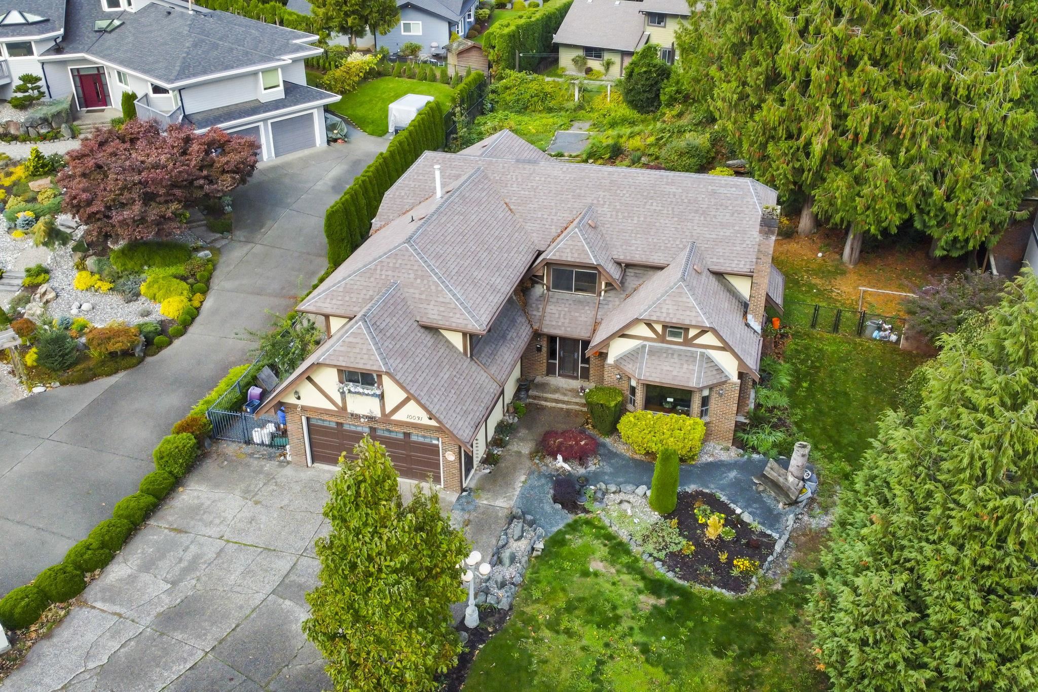 Welcome home to Little Mountain in Chilliwack. This Tudor inspired home on a quiet cul-de-sac sits on nearly half an acre of park-like property. Features include a sunken family room with gas fireplace, formal dining, spacious living room with second fireplace, and oak kitchen with stainless steel appliances opening to the backyard. Upstairs are four large bedrooms including an oversized primary suite with huge walk-in closet, ensuite, and private balcony. Enjoy the serene setting while being just minutes f...