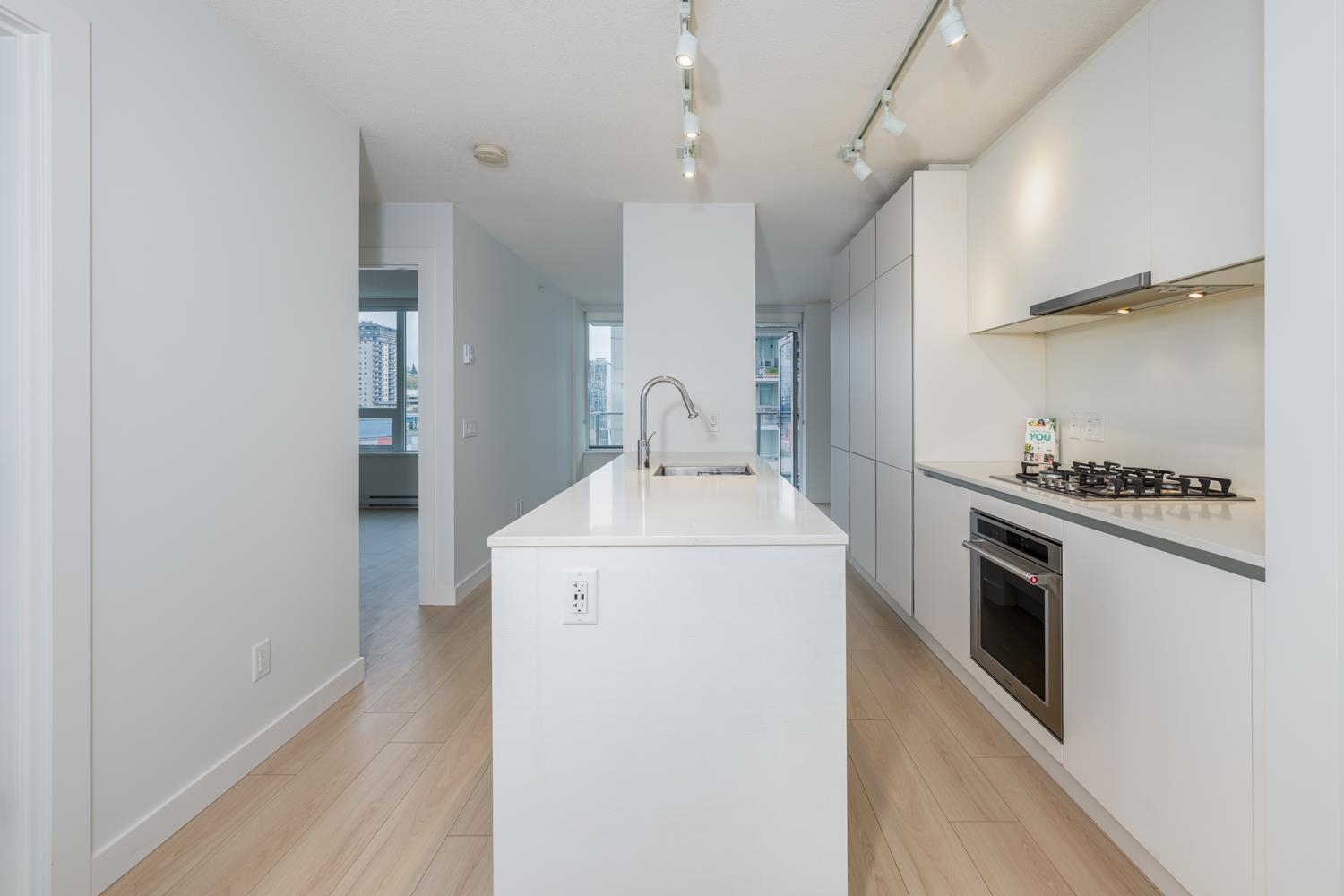 Riversky 2 by Bosa. This 2 beds, 1 bath 736 sq ft condo is functionally designed. Open layout kitchen with a gas stove, premium slide-out fan, soft close cabinet doors, built-in microwave, quartz countertops, integrated refrigerator with bottom freezer and integrated dishwasher. Full-time concierge, fully equipped gym, yoga room, BBQ area & recreation room. Steps to Sky Train, restaurants, shopping, grocery stores, coffee shops and Esplanade boardwalk and the Quay. Fantastic location. 1 parking and 1 storag...