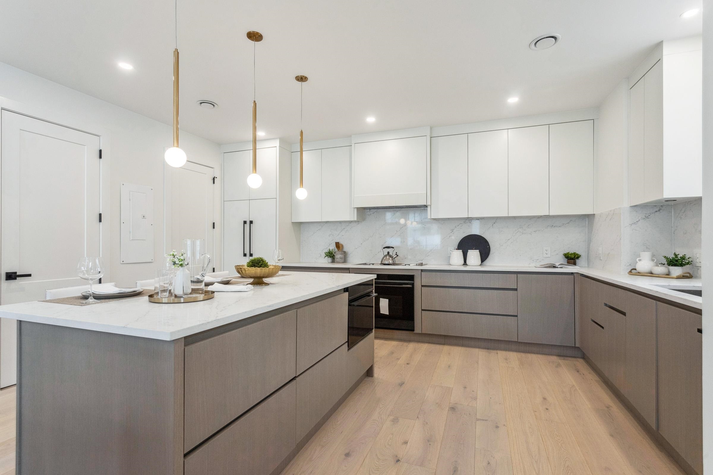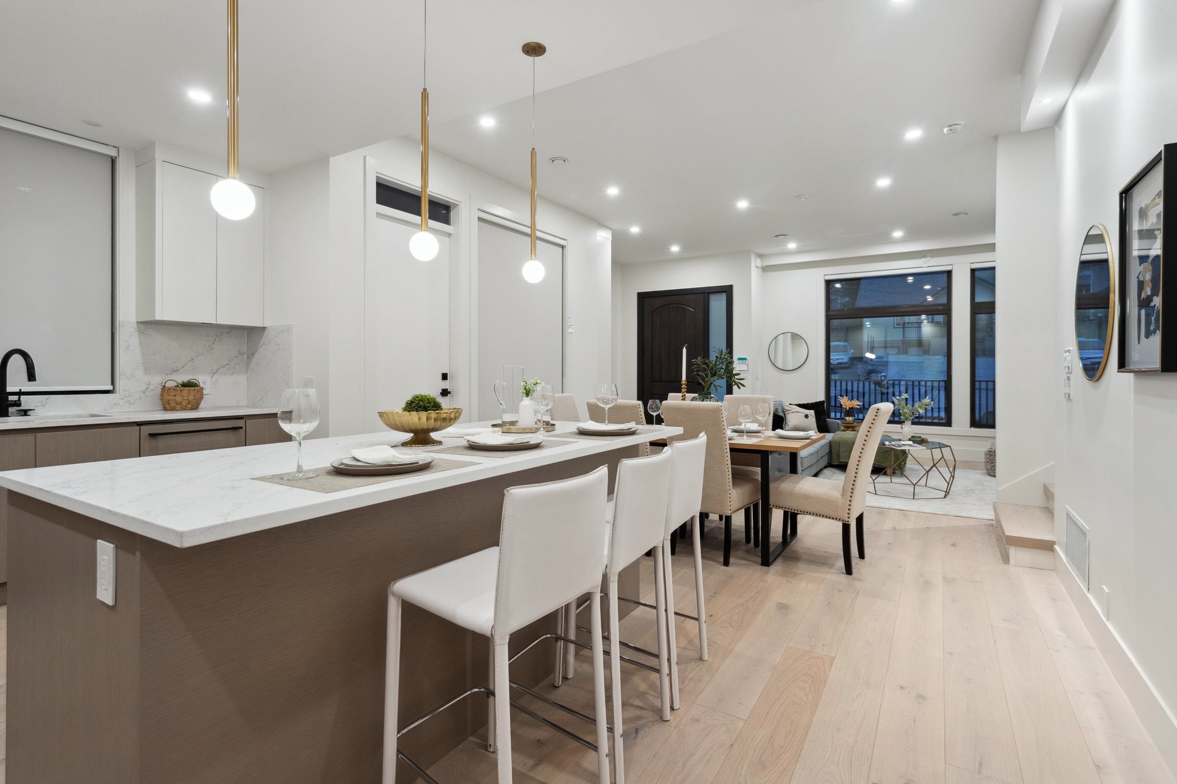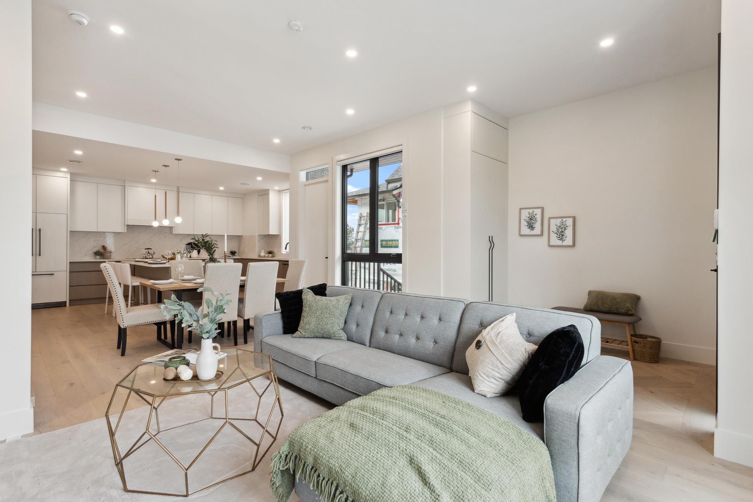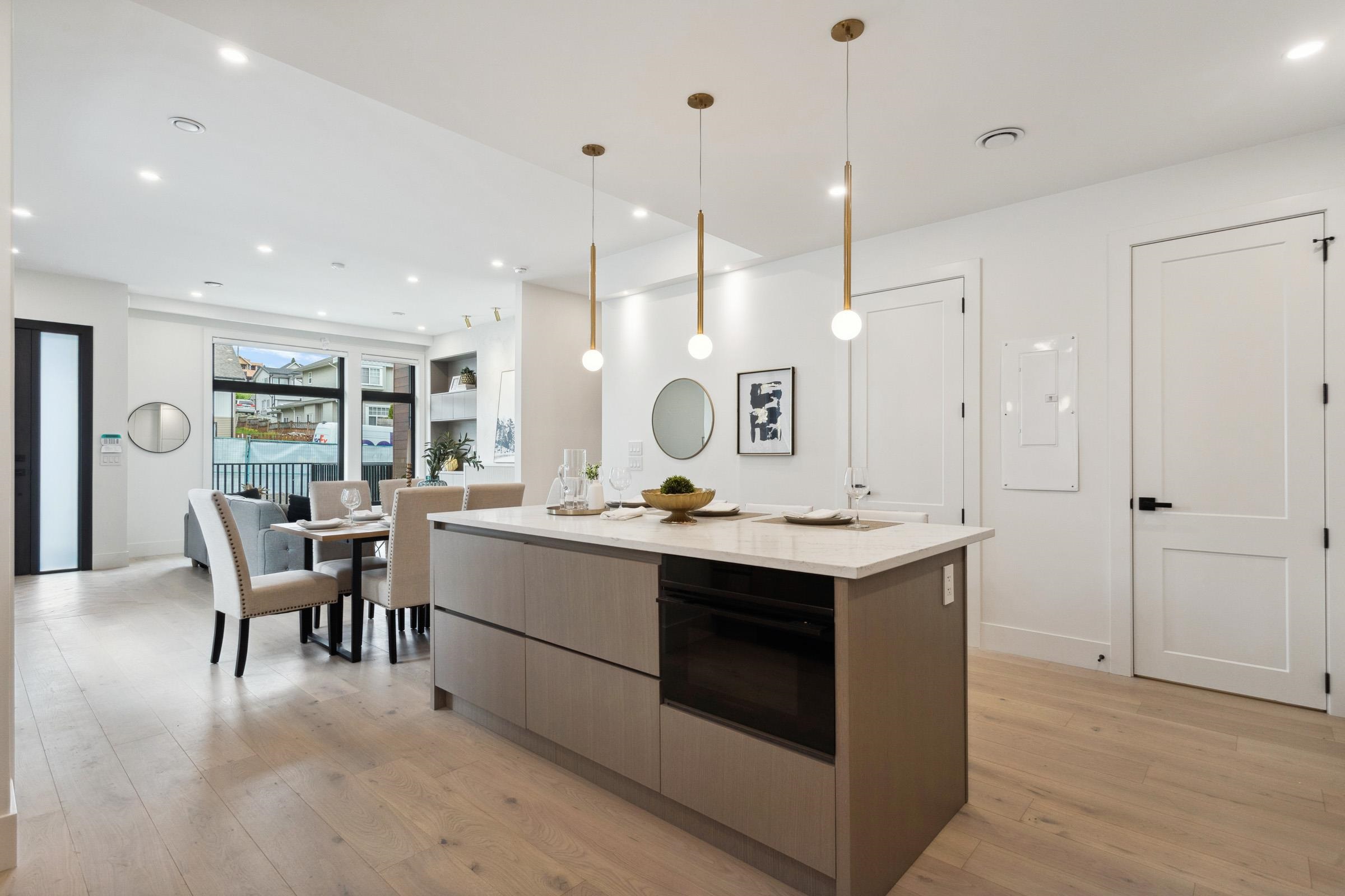 Welcome to The Quad in Maillardville, a luxury fourplex offering nearly 1,500 sq ft of modern living. Each unit showcases unique design, featuring an open-concept main floor with large windows for natural light, three bedrooms upstairs, and 2.5 stylish washrooms. Premium features include AC with heat pump, quartz counters and matching backsplash, Oversized kitchen island with seating for casual dining or entertaining, Fisher & Paykel appliances, Trek board patio decking, iFlow HVAC, tankless hot water, Goog...
