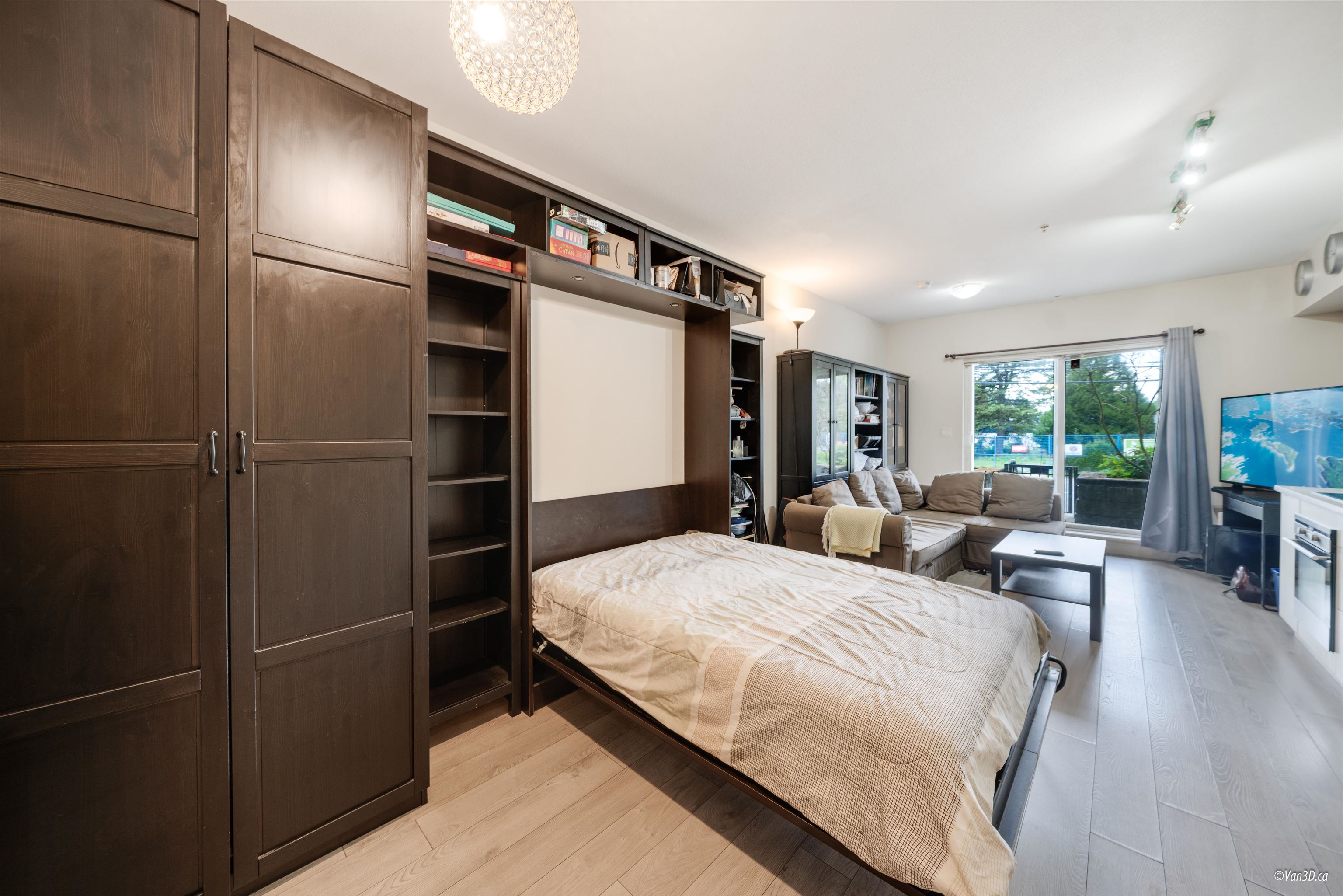 Investor Alert! Well-designed ground-level studio with a fantastic long-term tenant who would love to stay. Features include vinyl plank flooring, tile bathroom, custom built-in Murphy bed, wall-to-wall cabinetry, and built-in appliances for maximum efficiency. Enjoy a spacious southwest-facing patio, plus secure underground parking and storage locker. Pet- and rental-friendly building in the heart of Whalley/Bolivar Heights, Surrey’s rapidly growing downtown core—steps to SkyTrain, shopping, and amenities....