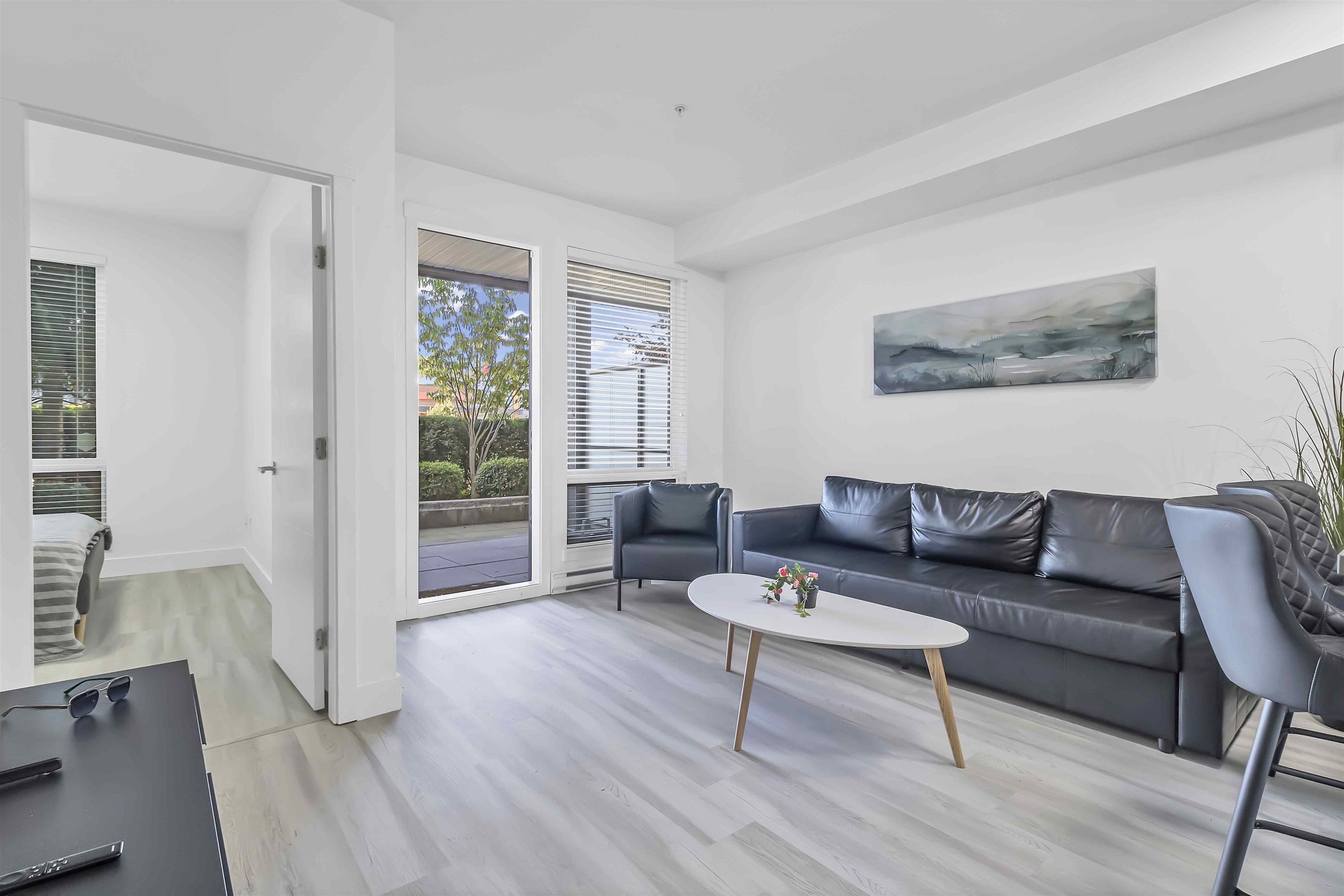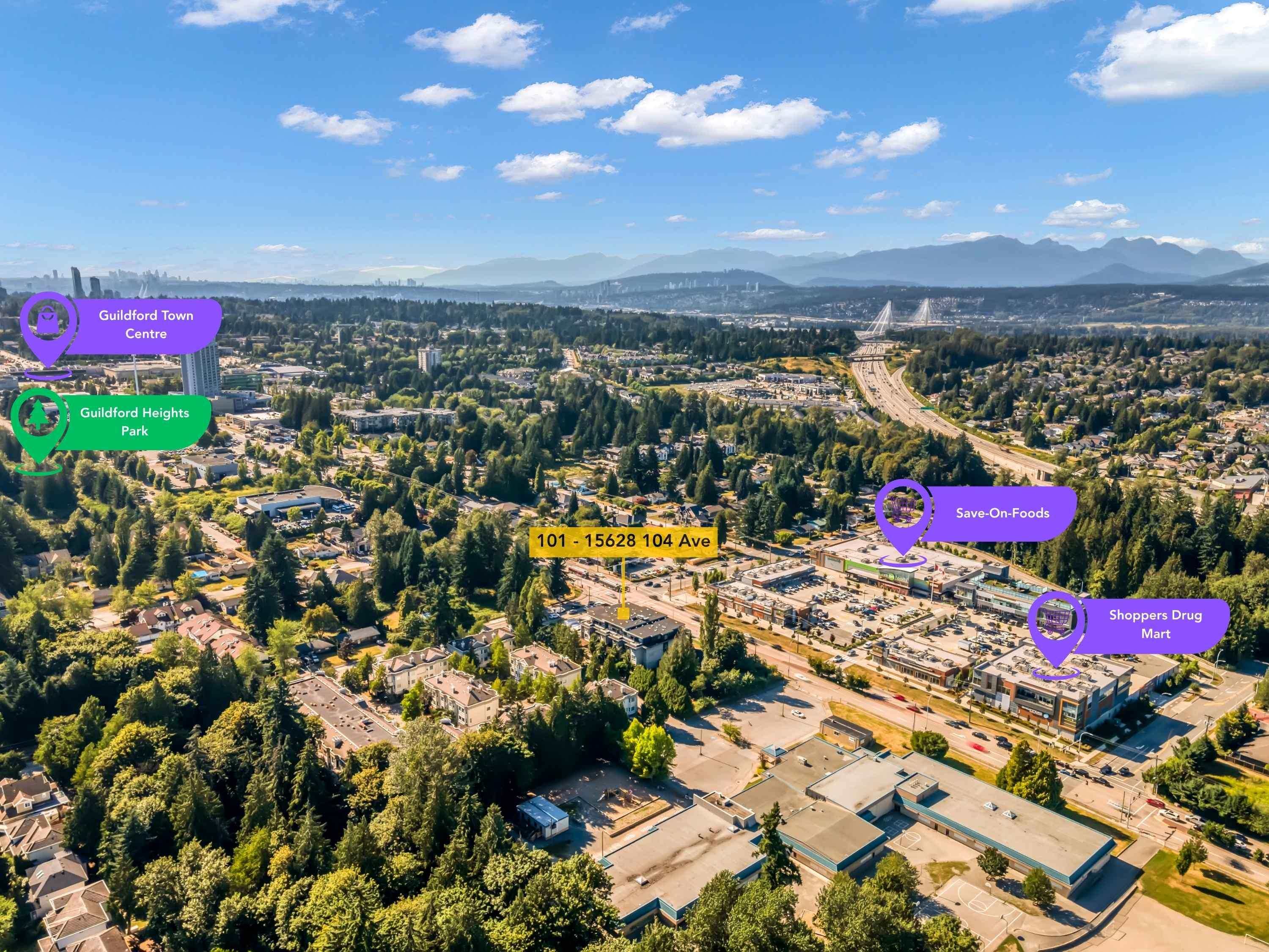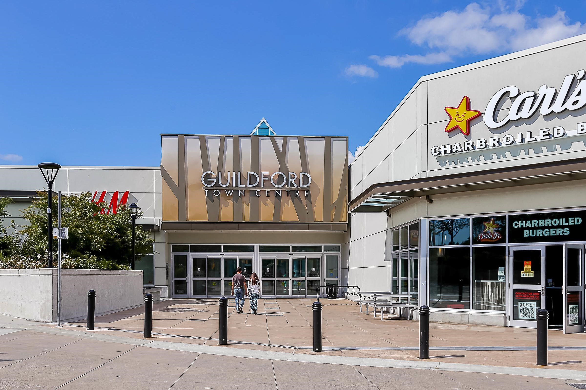 RARELY AVAILABLE GROUND-LEVEL CORNER UNIT — This spacious 2 BED, 2 BATH home is the LARGEST IN THE BUILDING and features a generous WALK-OUT PATIO just steps from GUILDFORD VILLAGE SHOPPING PLAZA, home to Save-On-Foods, pharmacy, child care, dining, and more. Stylishly UPDATED with modern LED lighting, 10' high CEILINGS and WIDE PLANK VINYL FLOORING. Ideally situated with a BUS STOP at your doorstep, beside HAROLD BISHOP ELEMENTARY, and minutes to GUILDFORD SECONDARY, major HIGHWAY ACCESS, scenic NATURE TRA...