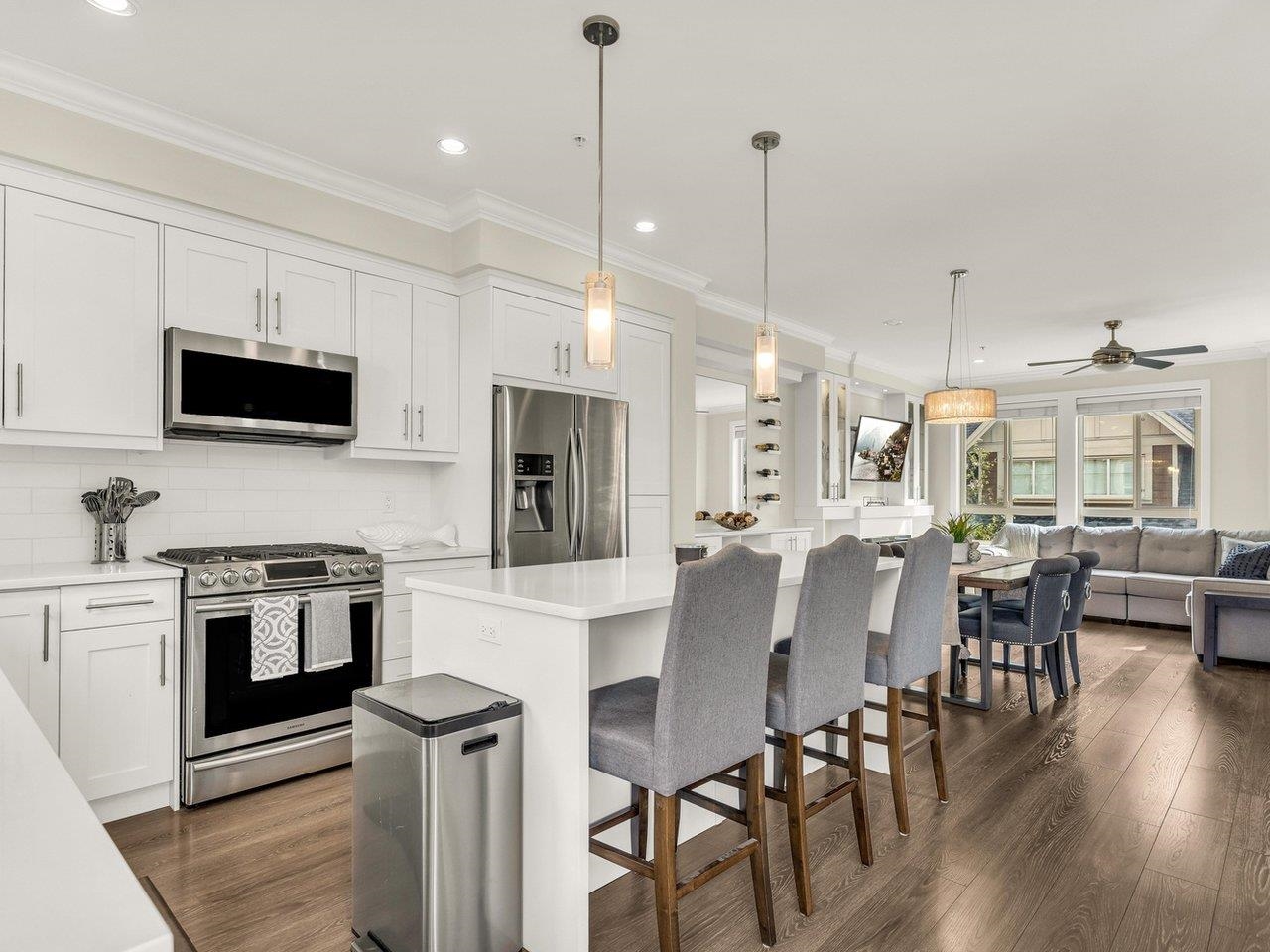 THE BROOKS developed by Apex Custom Homes. This Unique CORNER UNIT located on the Quiet side by Routley park has massive living space w/ 3 BDRMS & 4 BATHS includes spacious rec room (easily convertible into 4th BDRM with F/Bath). Master-chef designed kitchen w/ quartz countertops, SS Appliances, incl gas range, plenty of built in cabinet space w/ extensive millwork, large kitchen island & feat. wall w/built-in cabinets & wine rack. Oversized low E rating windows (lots of natural light). 2021 BOILER w/radian...