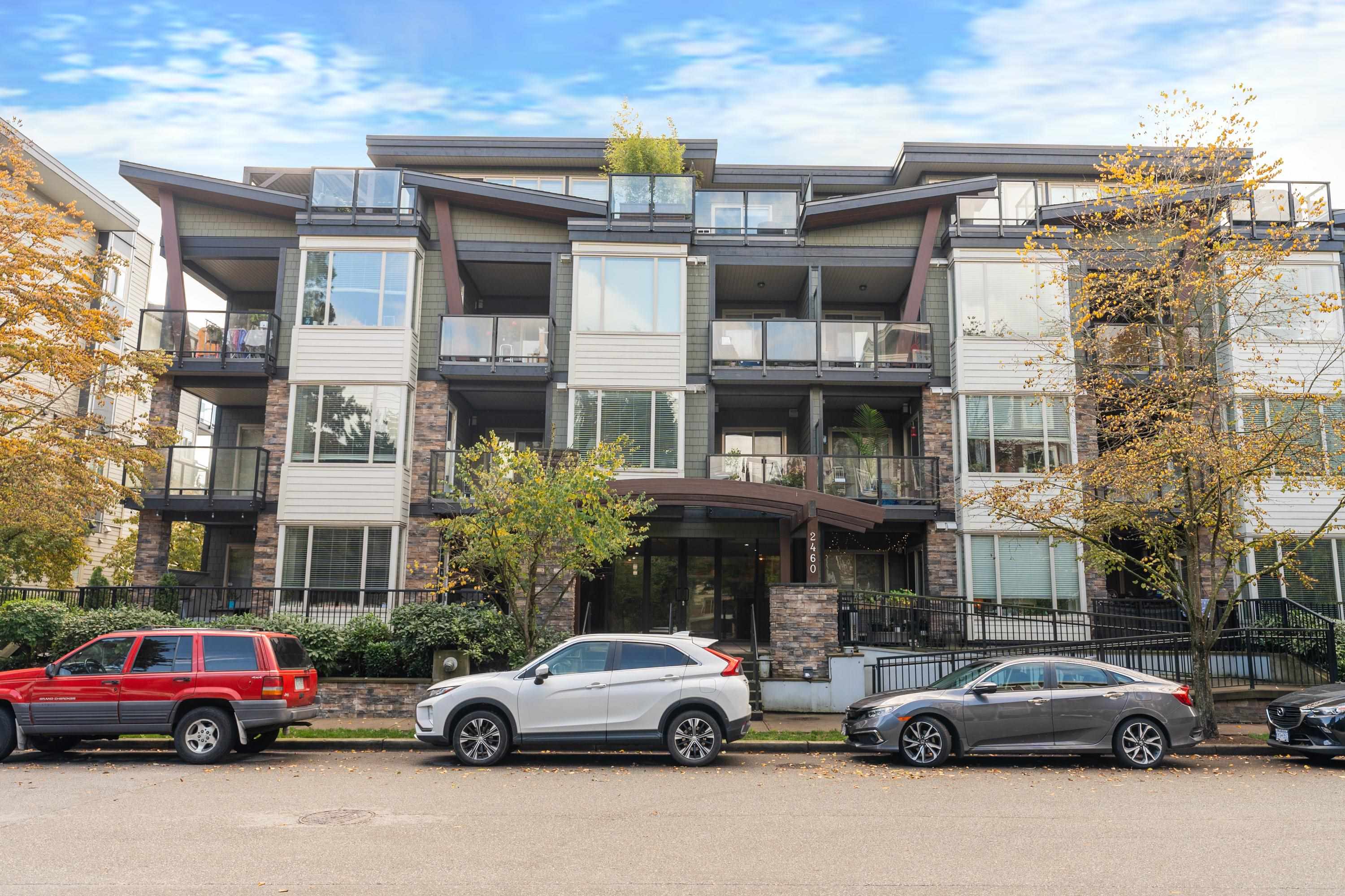 This quiet, ground-level corner unit offers over 1,000 sqft of modern living space, including 2 beds, 2 baths, and a versatile den perfect for an office or flex space. The open-concept layout features a contemporary kitchen with quartz counters, stainless appliances, and a cozy electric fireplace in the living room. Step outside onto a spacious 300+ sqft wrap-around patio, ideal for entertaining. Located just steps from Gates Park, Coquitlam River, trails, shopping, and transit, this boutique building provi...