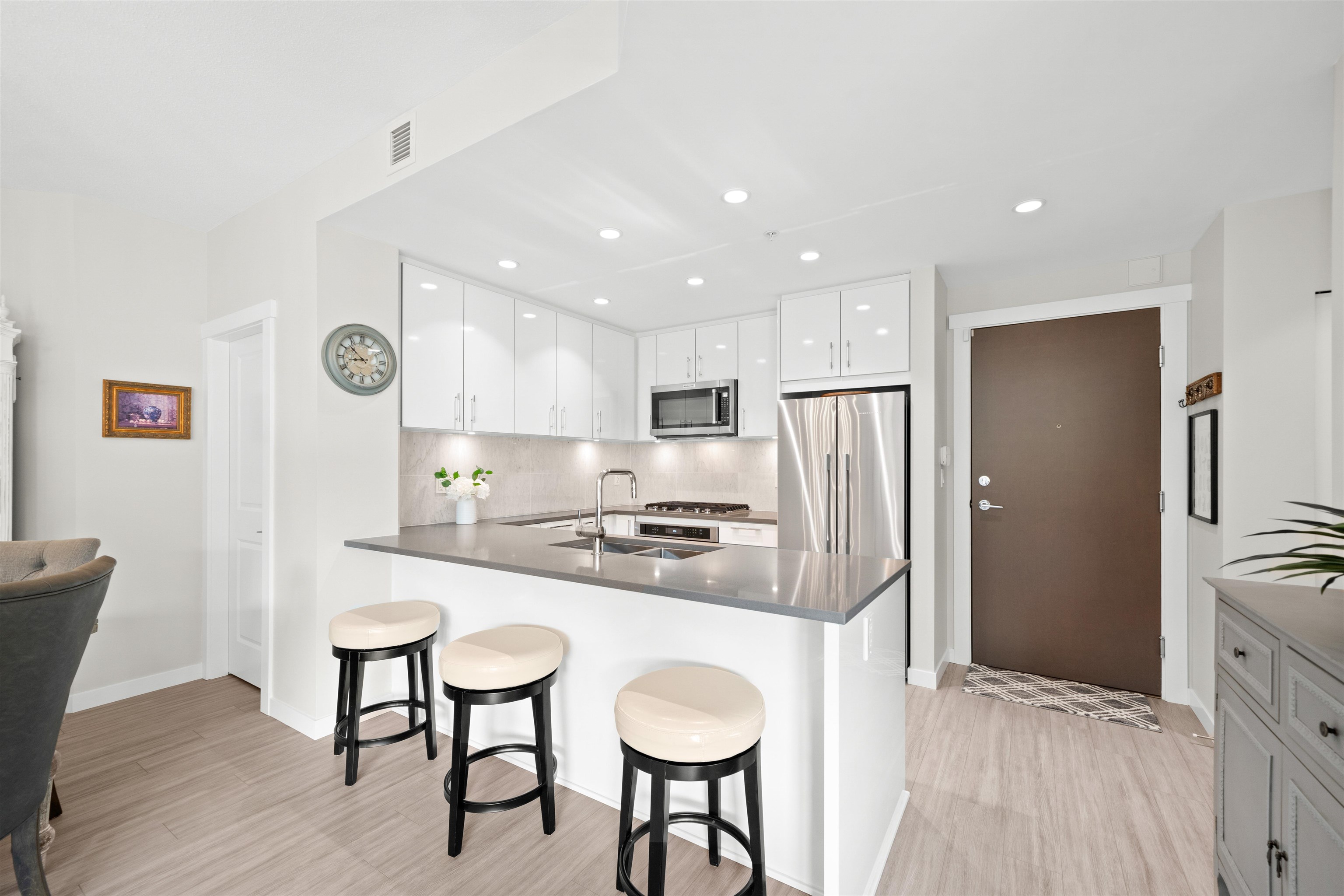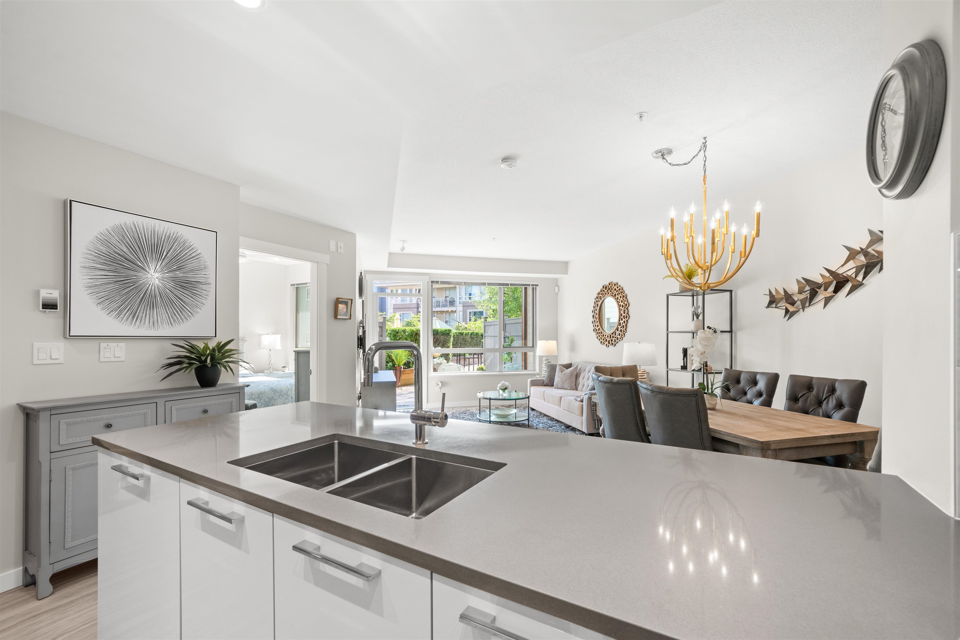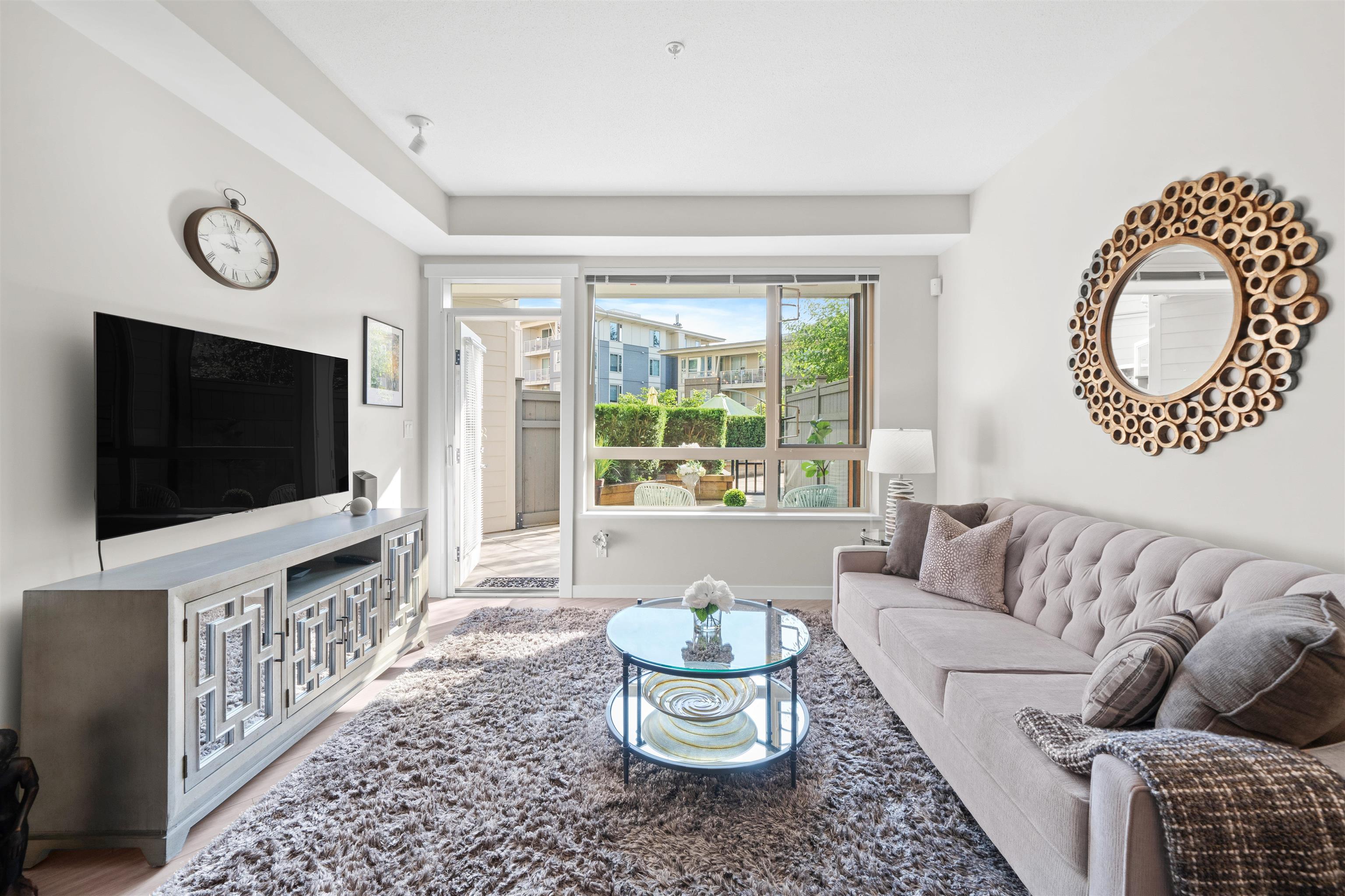 Spacious ground-level 1 bedroom at Juniper by Polygon. Features a large 214sf patio on the East-facing side of the building, very quiet and ideal for morning light. Modern design throughout, stylish kitchen with stone counters, stainless steel appliances, gas range, large dining area & a bonus storage room. Enjoy the convenience of ground level living in the heart of Lynn Valley. Step out to your private gated patio, great for BBQs, entertaining, pet owners and easy trail access. Amenities include a gym, b...
