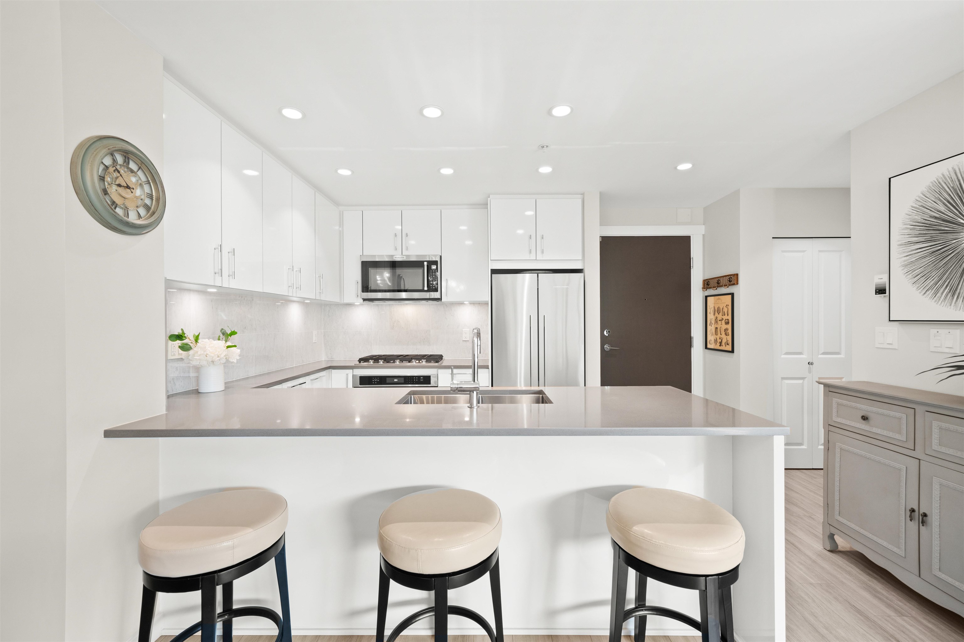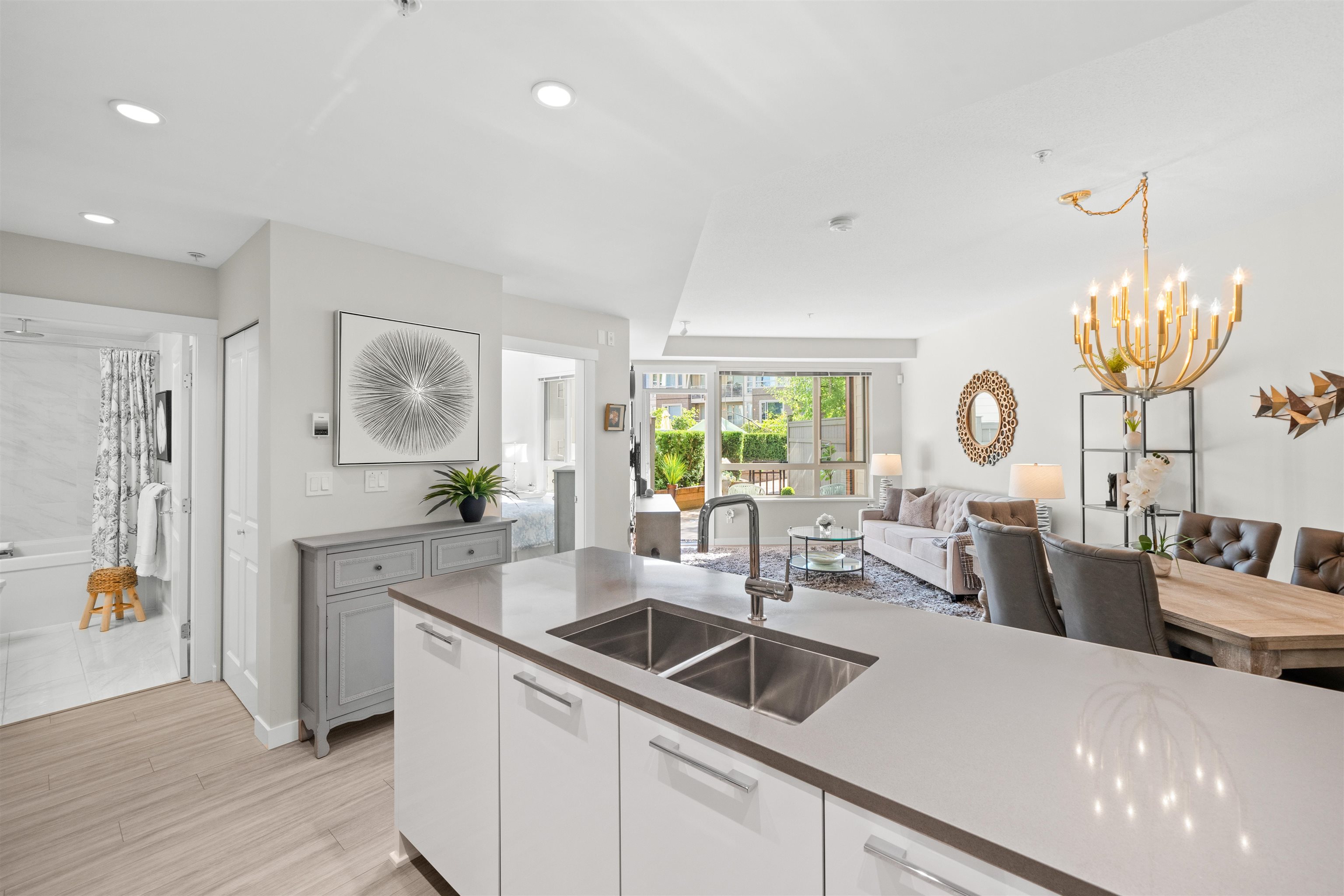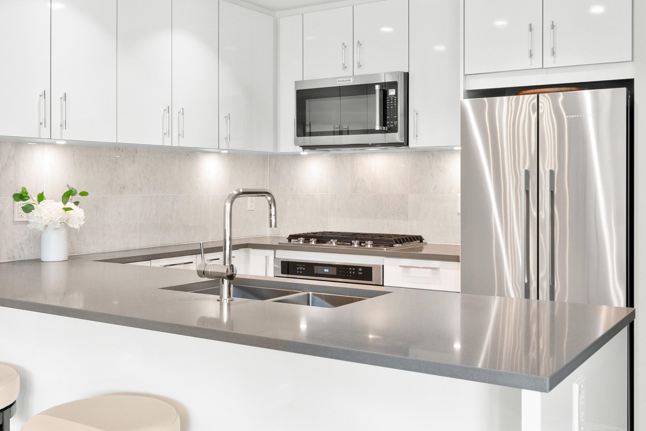 Spacious ground-level 1 bedroom at Juniper by Polygon. Features a large 214sf patio on the East-facing side of the building, very quiet and ideal for morning light. Modern design throughout, stylish kitchen with stone counters, stainless steel appliances, gas range, large dining area & a bonus storage room. Enjoy the convenience of ground level living in the heart of Lynn Valley. Step out to your private gated patio, great for BBQs, entertaining, pet owners and easy trail access. Amenities include a gym, b...