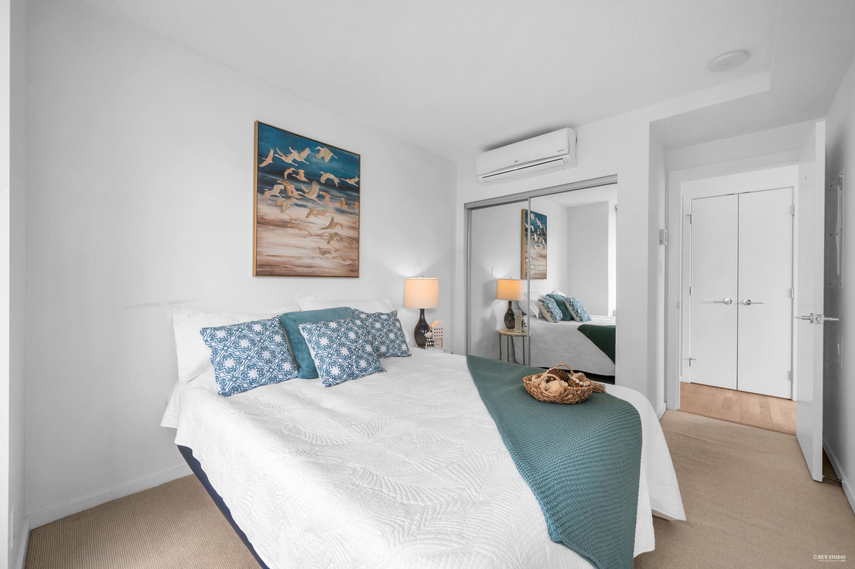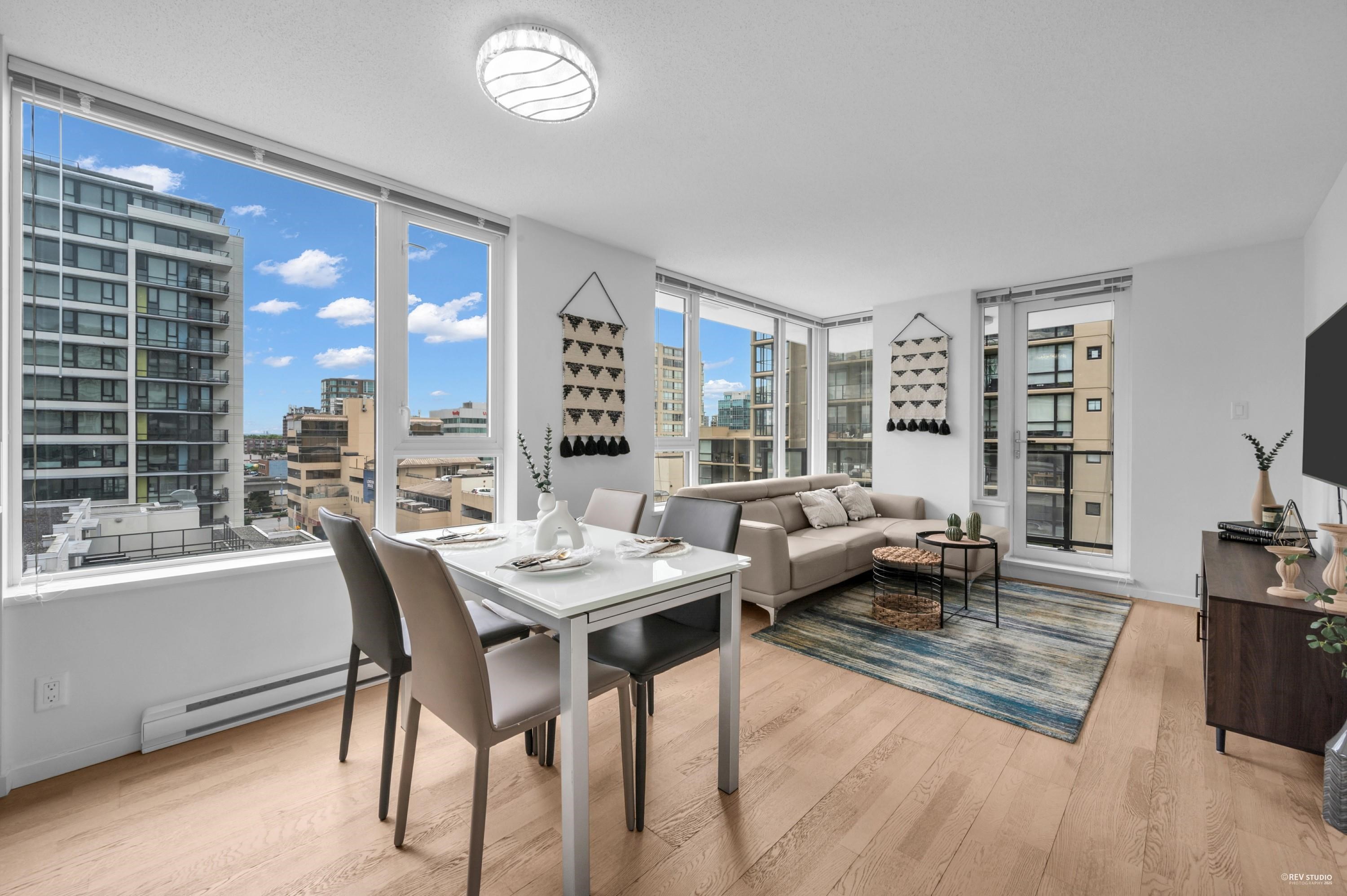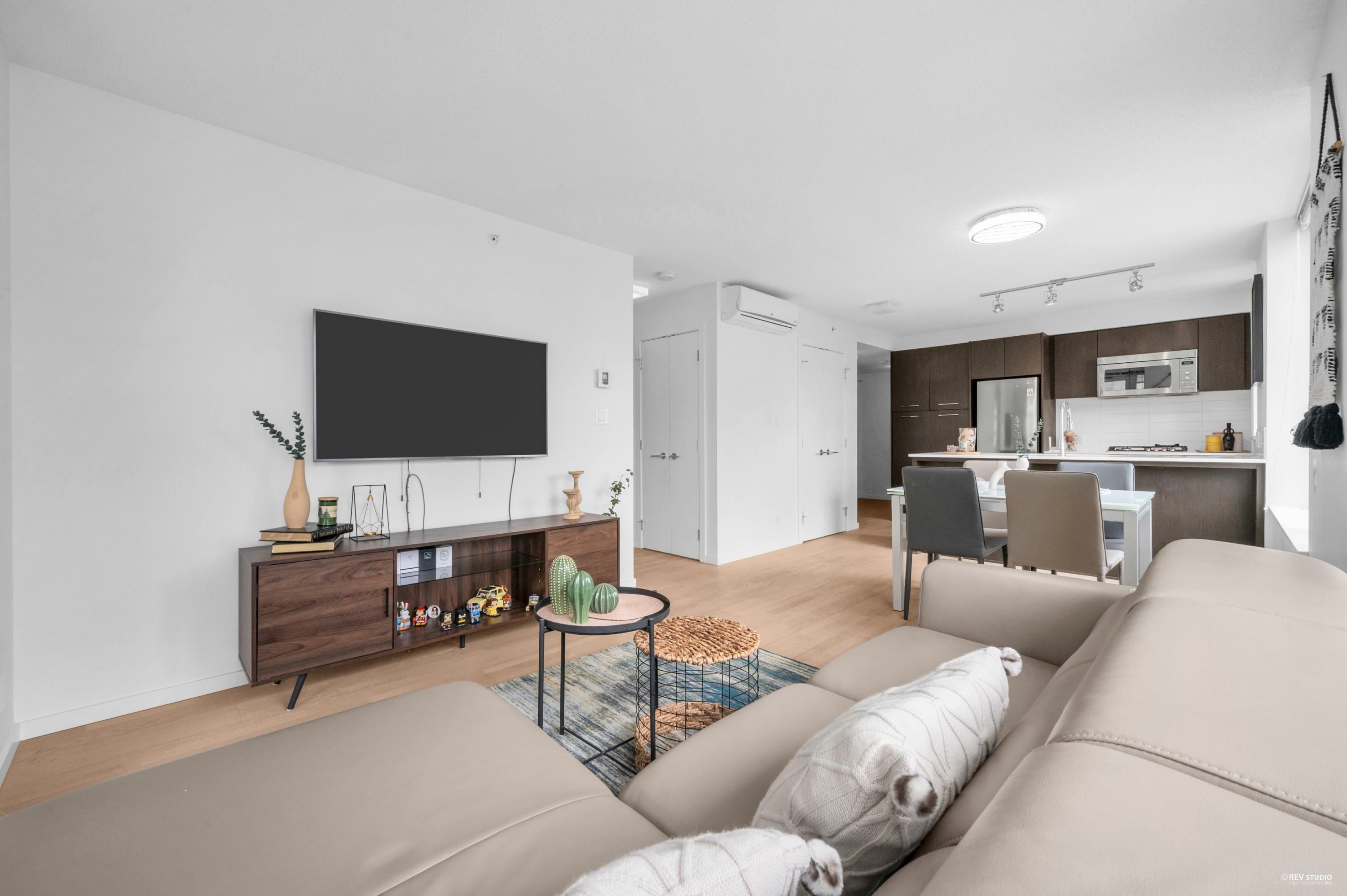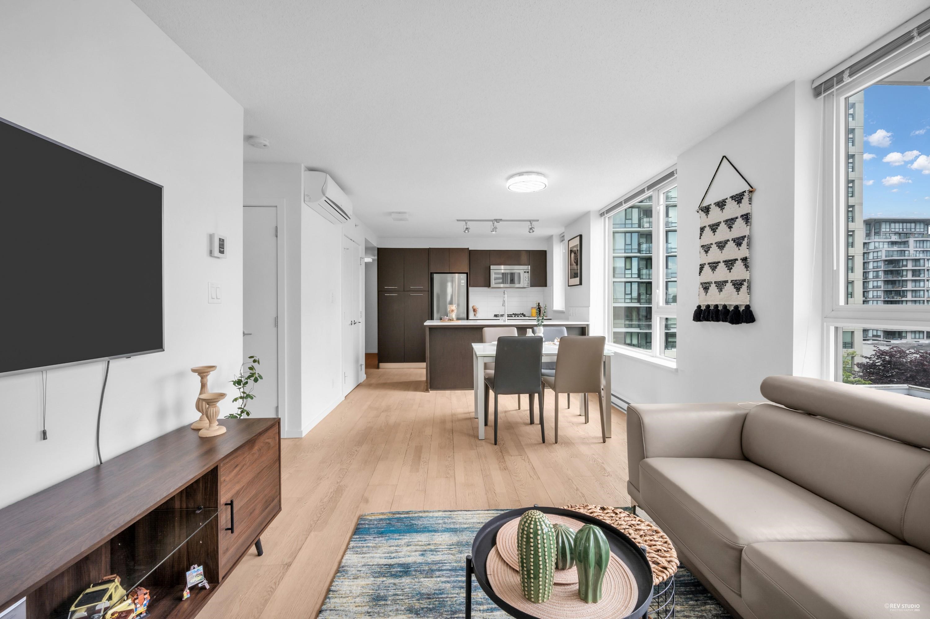 Enjoy the convenience of living at Quintet Tower C, in the heart of Downtown Richmond. This bright southeast-facing corner one-bedroom unit offers over 600 sq ft of space and abundant natural light. With a highly functional layout, it feels more spacious than a typical one-bedroom. A/C units are installed in both the living room and bedroom. The kitchen features an oversized countertop and a stainless steel appliance package. Strata amenities include an indoor swimming pool, sauna, steam room, gym, and cour...