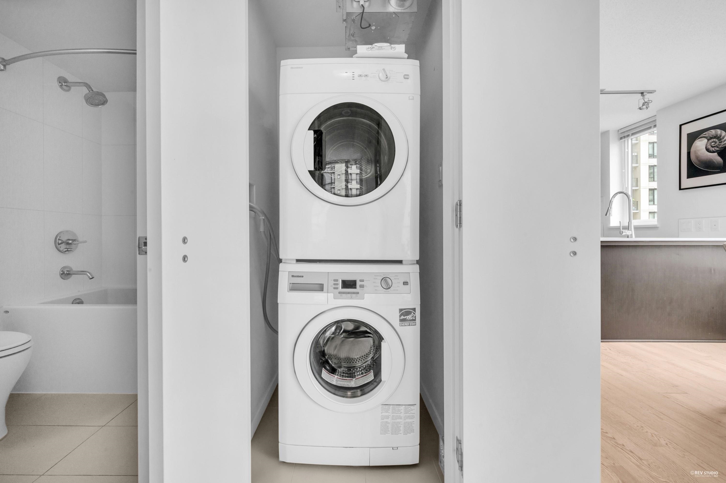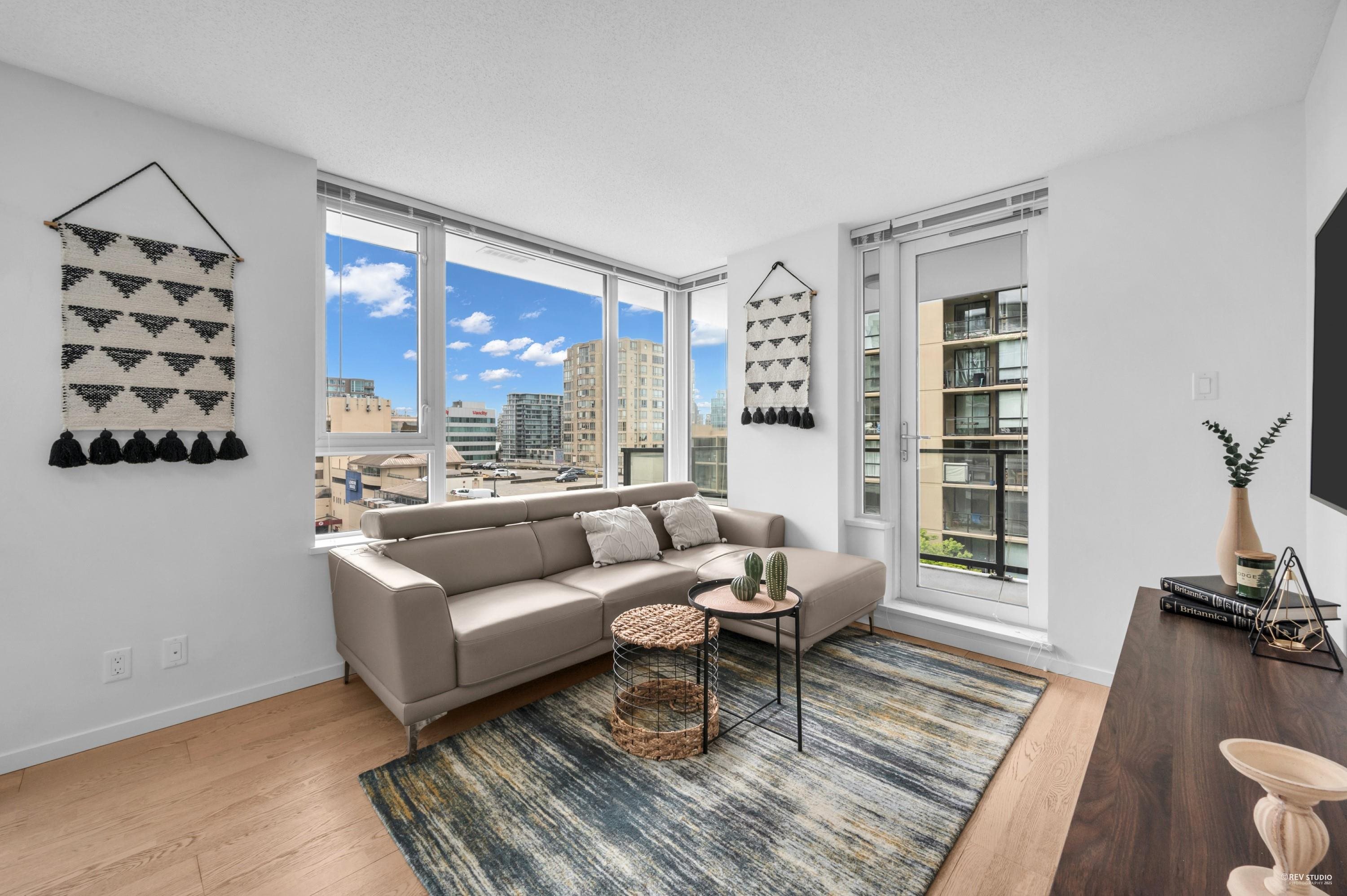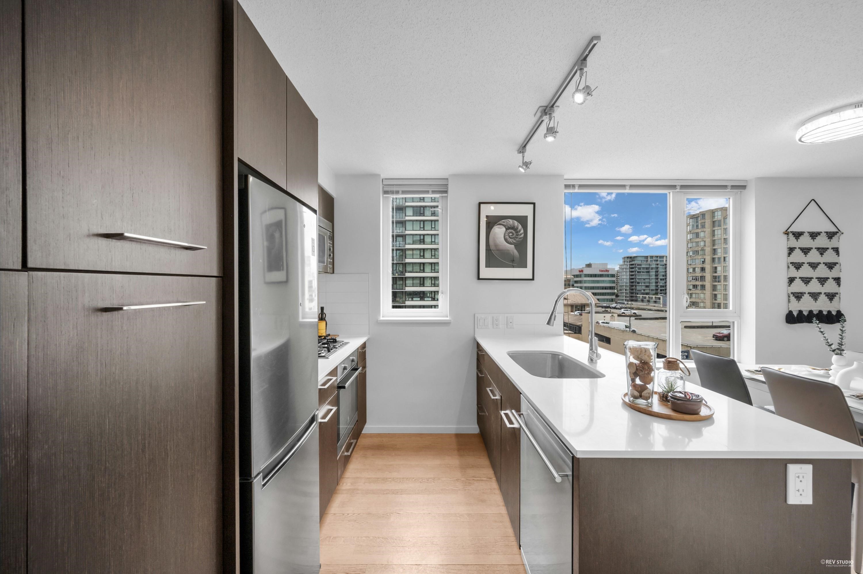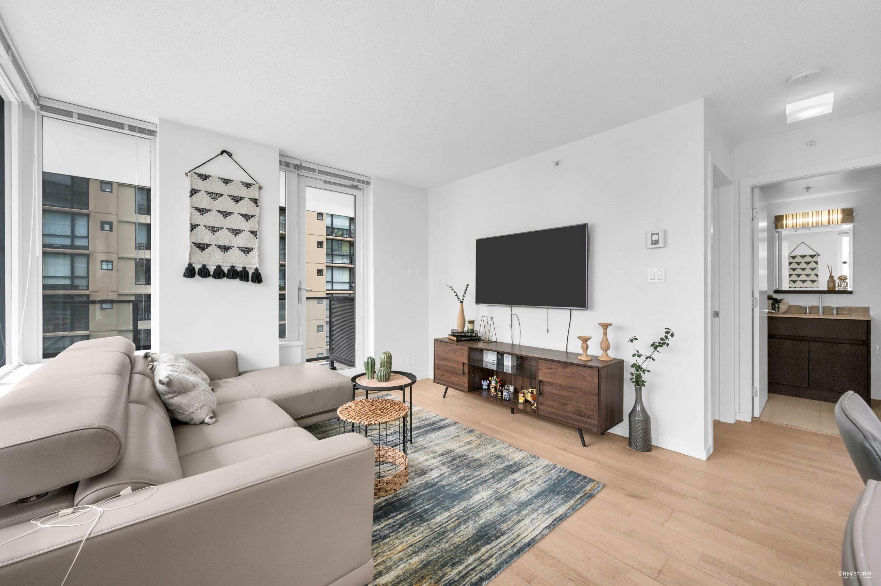 Enjoy the convenience of living at Quintet Tower C, in the heart of Downtown Richmond. This bright southeast-facing corner one-bedroom unit offers over 600 sq ft of space and abundant natural light. With a highly functional layout, it feels more spacious than a typical one-bedroom. A/C units are installed in both the living room and bedroom. The kitchen features an oversized countertop and a stainless steel appliance package. Strata amenities include an indoor swimming pool, sauna, steam room, gym, and cour...