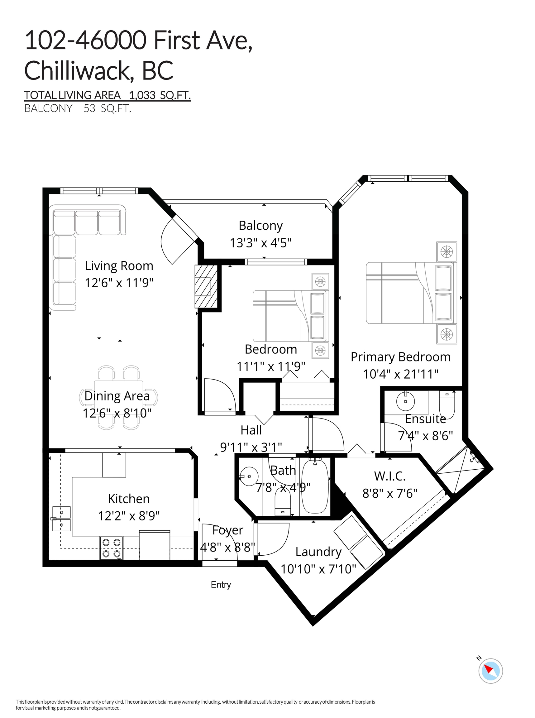 Walking distance to the vibrant District 1880, this well-maintained 2 bedroom, 2 bathroom home offers 1,033 sq ft of bright and comfortable living space. The spacious living room features a natural gas fireplace, included in the strata fee, and access to a walk-out balcony with sliding screen door. The updated kitchen includes newer stainless steel appliances and plenty of cabinet space. The oversized primary bedroom features a large walk-in closet and 3-piece ensuite. The second bedroom easily fits a queen...
