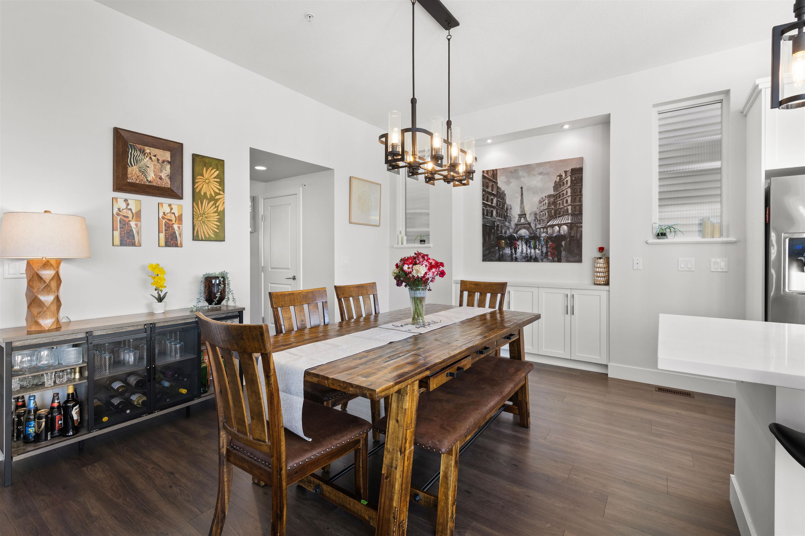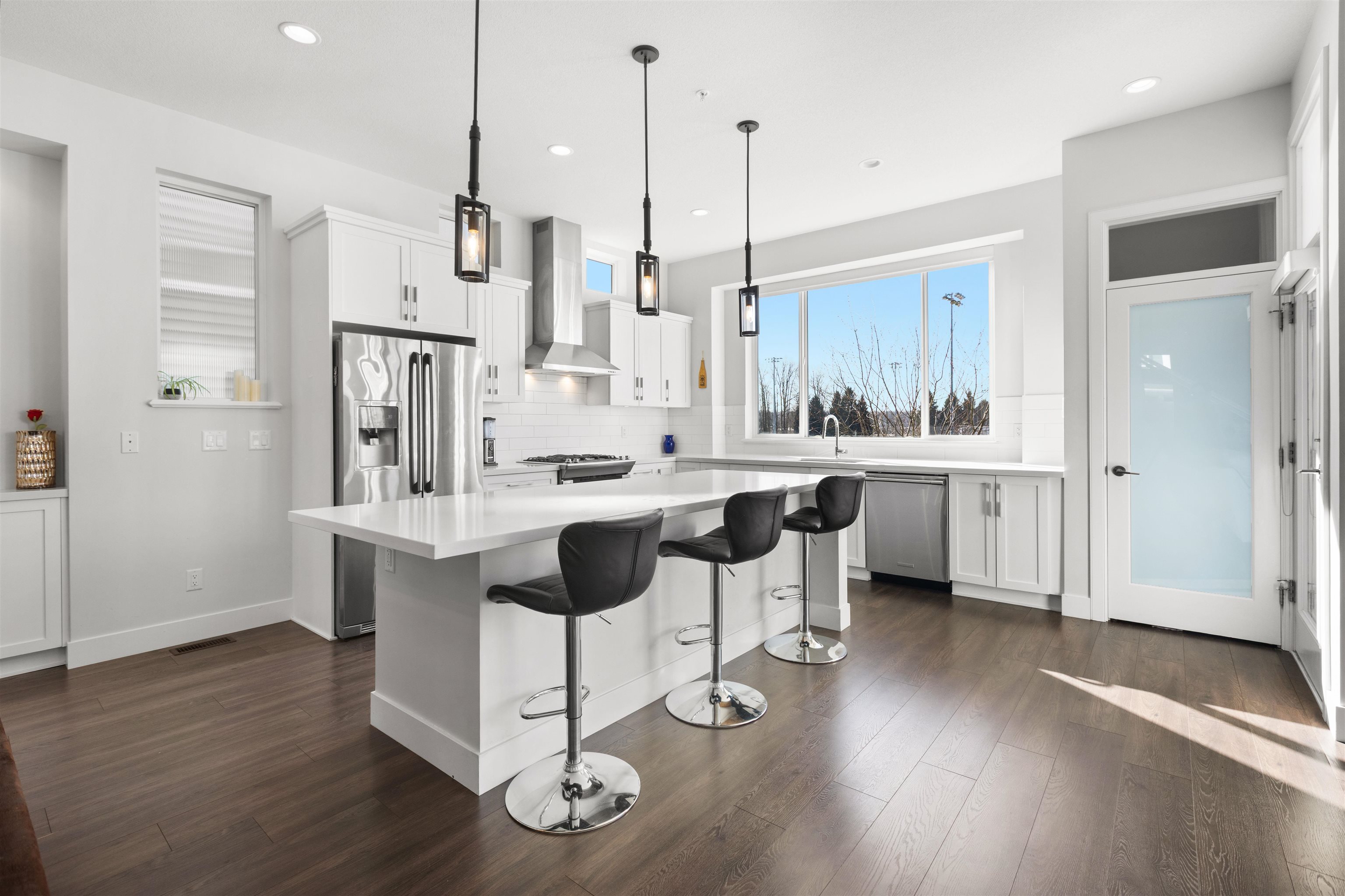 Backing directly onto the Park, this beautifully appointed three-level residence offers refined living in a peaceful park-side setting. The main level features open-concept living with a chef-inspired kitchen showcasing quartz countertops, an oversized island, soft-close cabinetry, and stainless steel appliances, flowing into the great room with a fireplace and park-view windows. Premium upgrades include California Closets, motorized blinds, designer lighting, and a private hot tub. Upstairs, the spacious p...