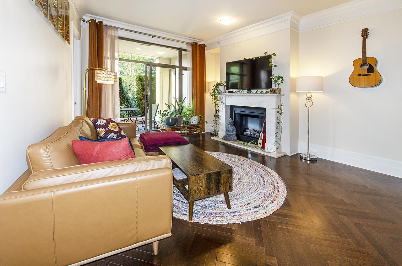 Luxury living meets convenience at this beautiful suite at Waters Edge in West Vancouver. Boasting over-height ceilings, this ground floor corner unit exudes sophistication featuring AIR CONDITIONING, open concept living / dining, herringbone h/w flooring, deluxe kitchen w stone treatments, gas cooktop, Miele / subZero appliances, partially covered west facing terrace, great primary bedroom with adjacent den perfect for guest accommodations, spa inspired ensuite bath plus walk-through closet. Best in class ...
