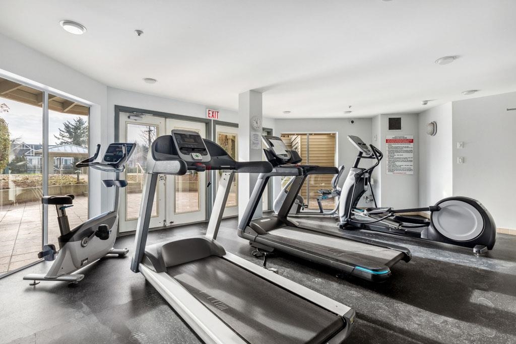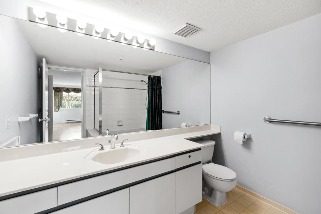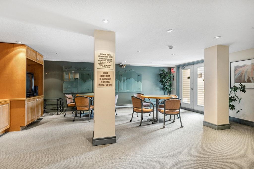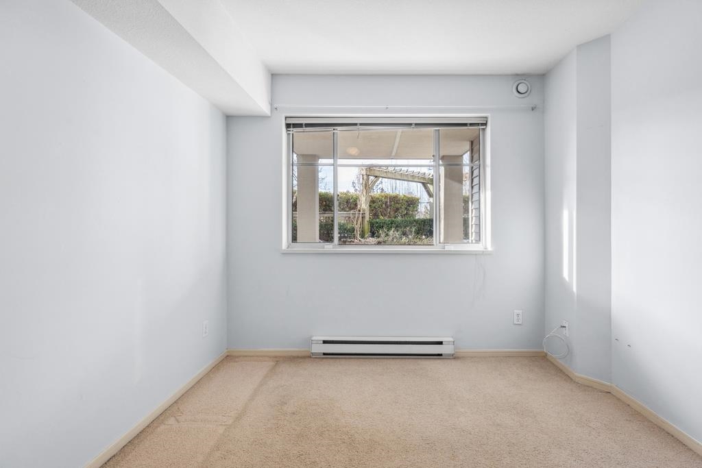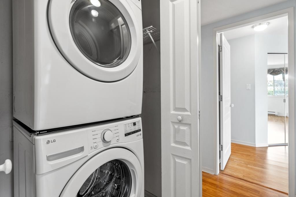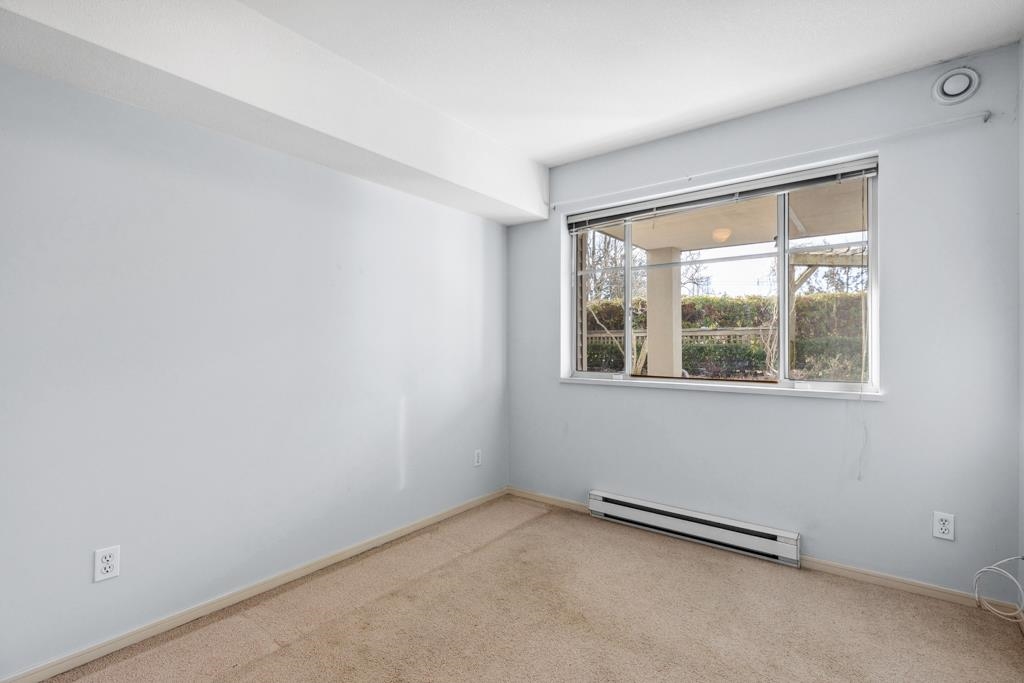 Laguna is a quiet, well-maintained gated community surrounded by mature trees and shrubs. This spacious 977sf garden-level unit offers 2 bedrooms and 2 bathrooms with laminate floors in most areas and a massive 465sf paved patio bordered by planters. The rectangular living room features a gas fireplace, ceiling light, and a large window facing the patio. The dining area has a classy chandelier, while the kitchen offers three rows of white cabinets and a pass-through window. The primary bedroom fits a king-s...