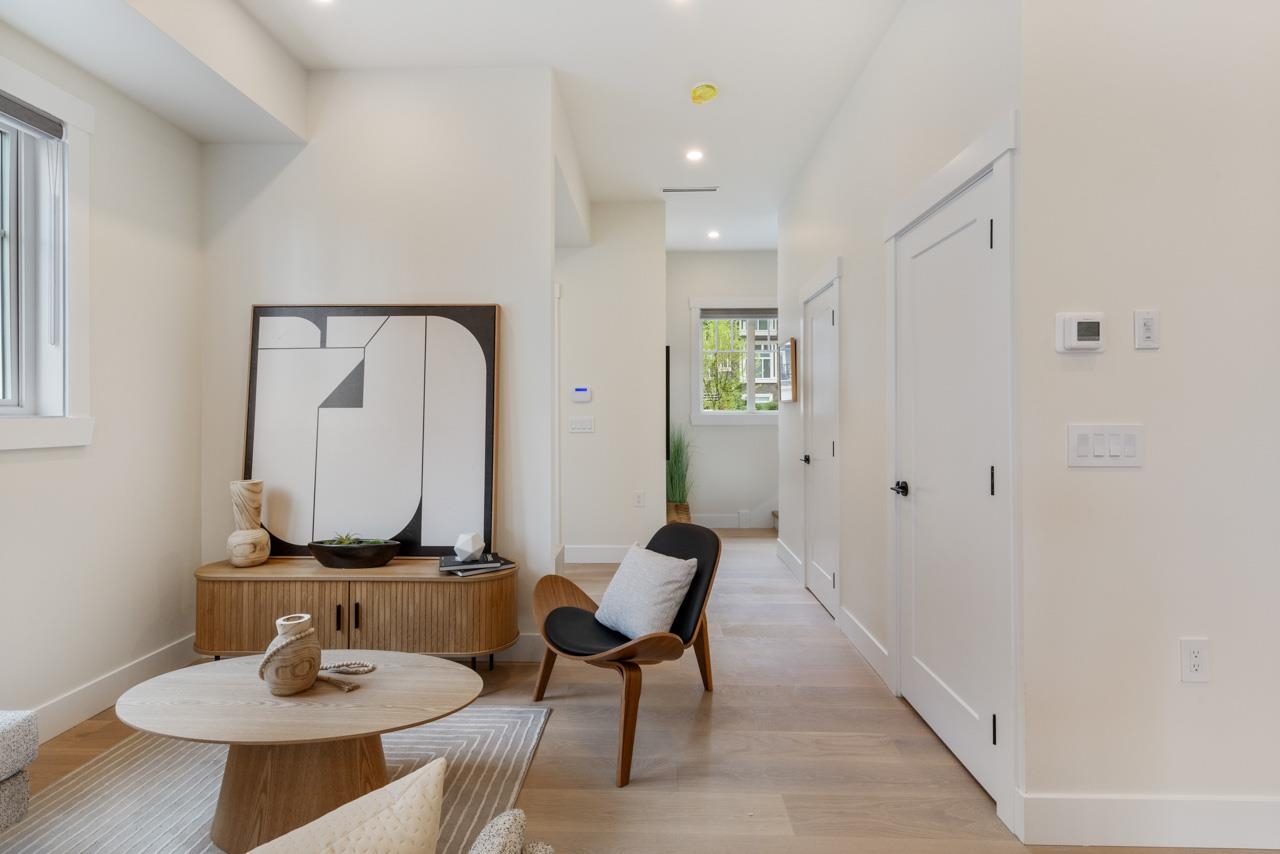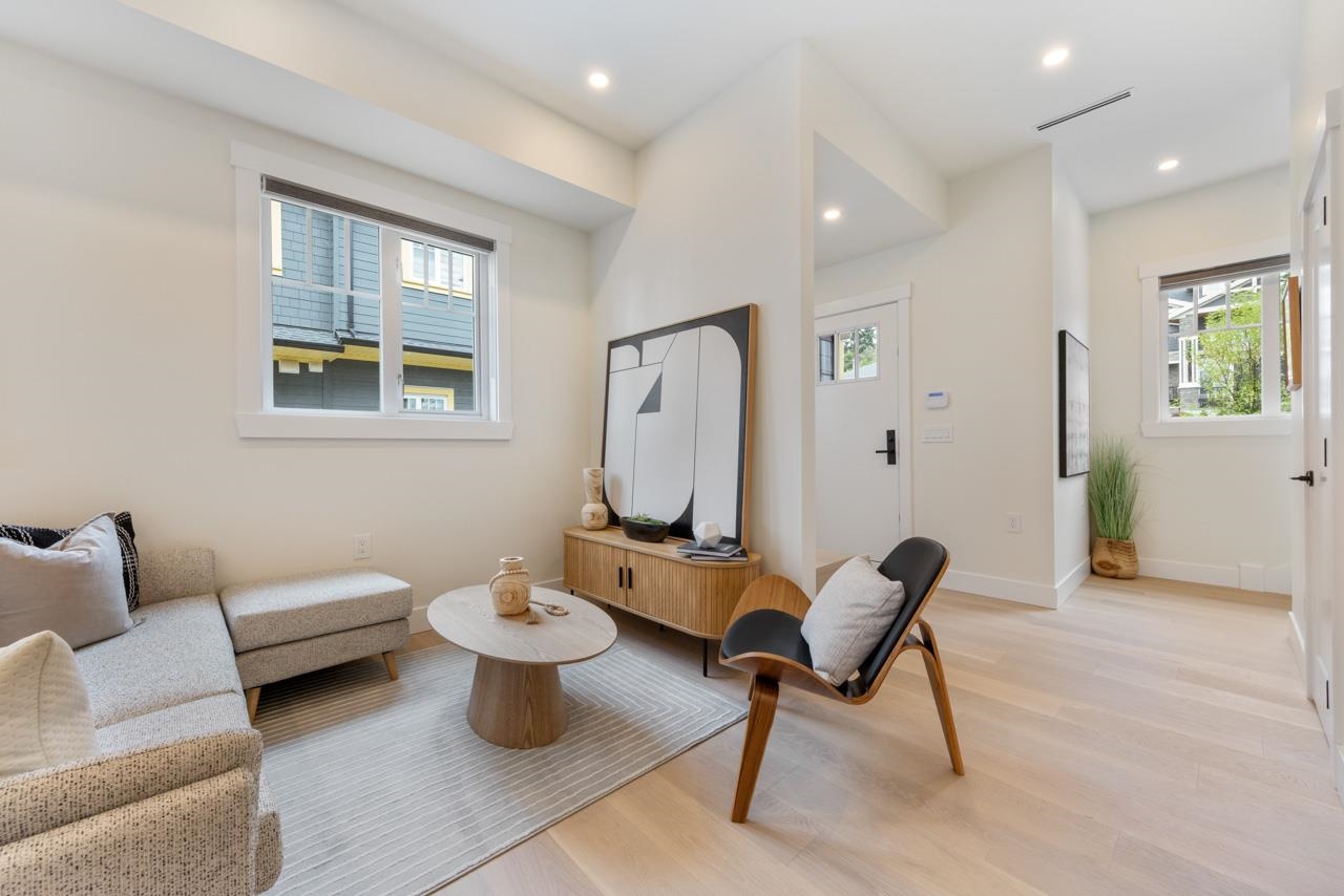 ***OPEN SUN JAN 25th, 2-4PM*** Brand-New Move In Ready 3 Bed, 2.5 Bath Townhome in "Le Bleu' - A Boutique Development in Historic Maillardville. Stunning end-unit, thoughtfully designed and built with quality craftsmanship, this home offers a blend of comfort and modern luxury. Enjoy peace of mind with a severe two-car attached EV ready garage. central A/C, high-efficiency gas furnace, Heat Recovery Ventilation system. Endless on-demand hot water ensure comfort for all. Bright and airy with 10' ceilings dow...