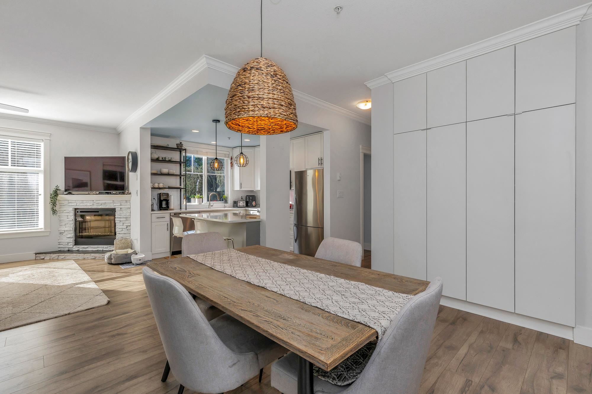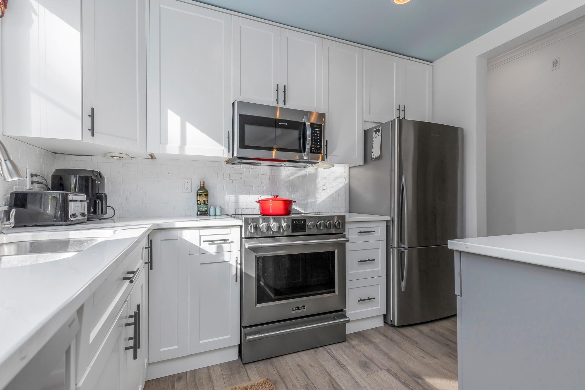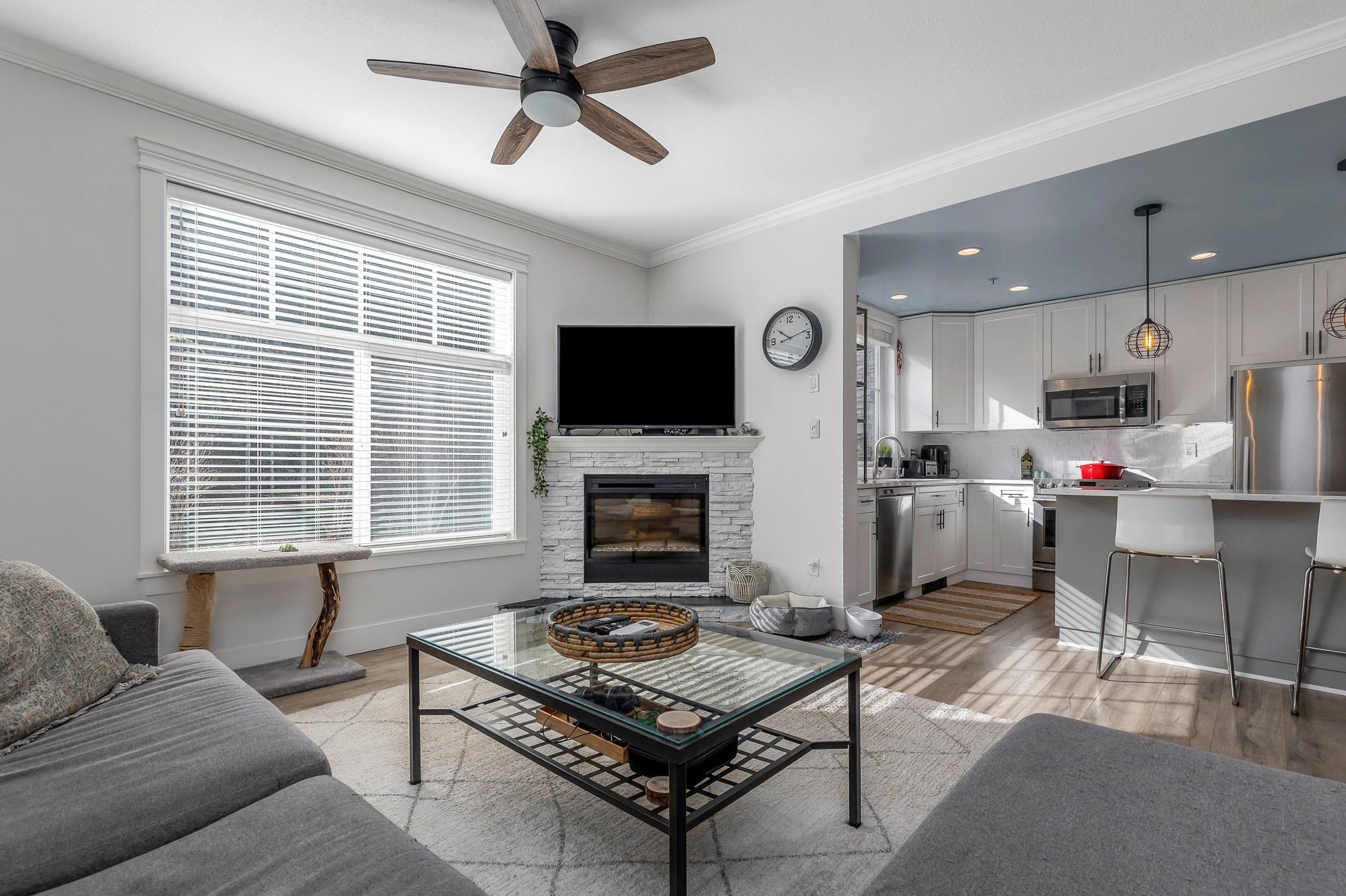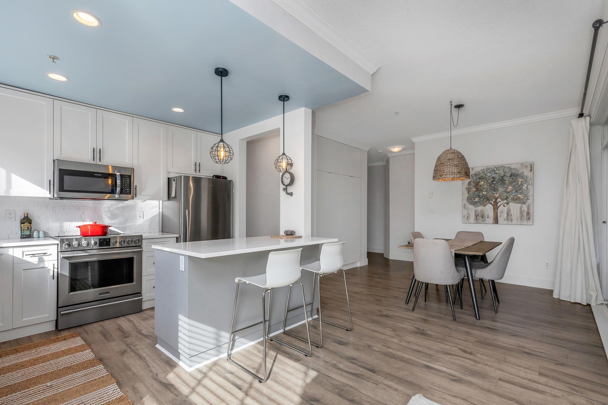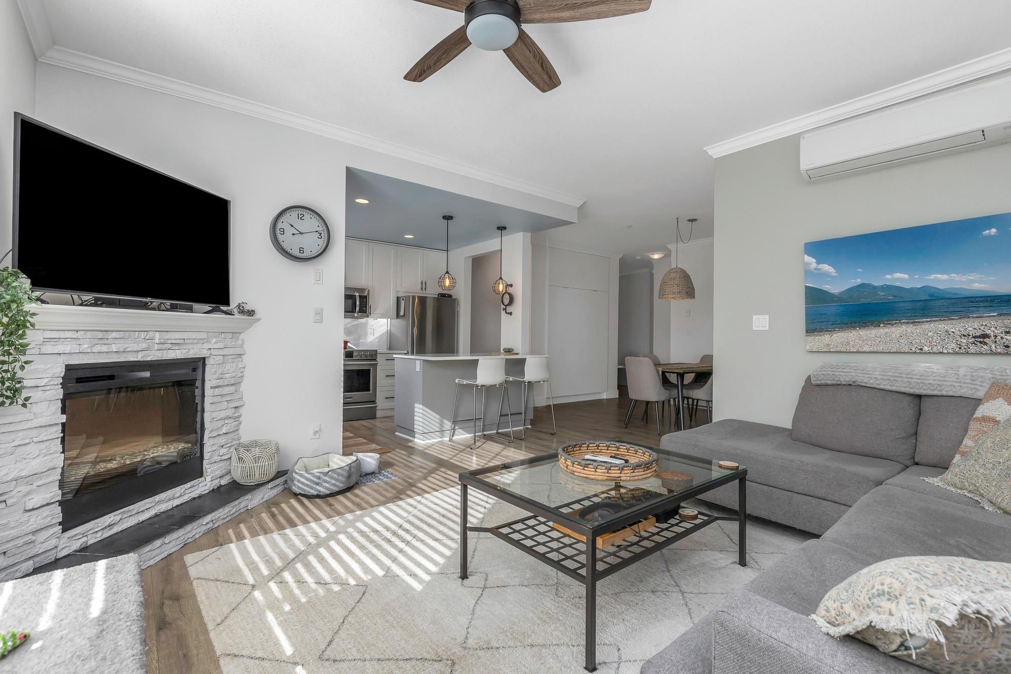 Welcome to The Sterling. Bright & spacious 2 bed/2 bath + den corner unit! Nearly $60K spent on a FULL 2022 renovation including stunning new kitchen, bathrooms, heat pump w/AIR CONDITIONING, paint, mouldings & more—truly magazine worthy! Open concept layout with south & west exposure for abundant natural light. L-shaped kitchen w/island flows into dining & living room w/electric fireplace. Den off entry makes the perfect home office. Bedrooms on opposite sides for privacy. Walk-thru closet to gorgeous e...
