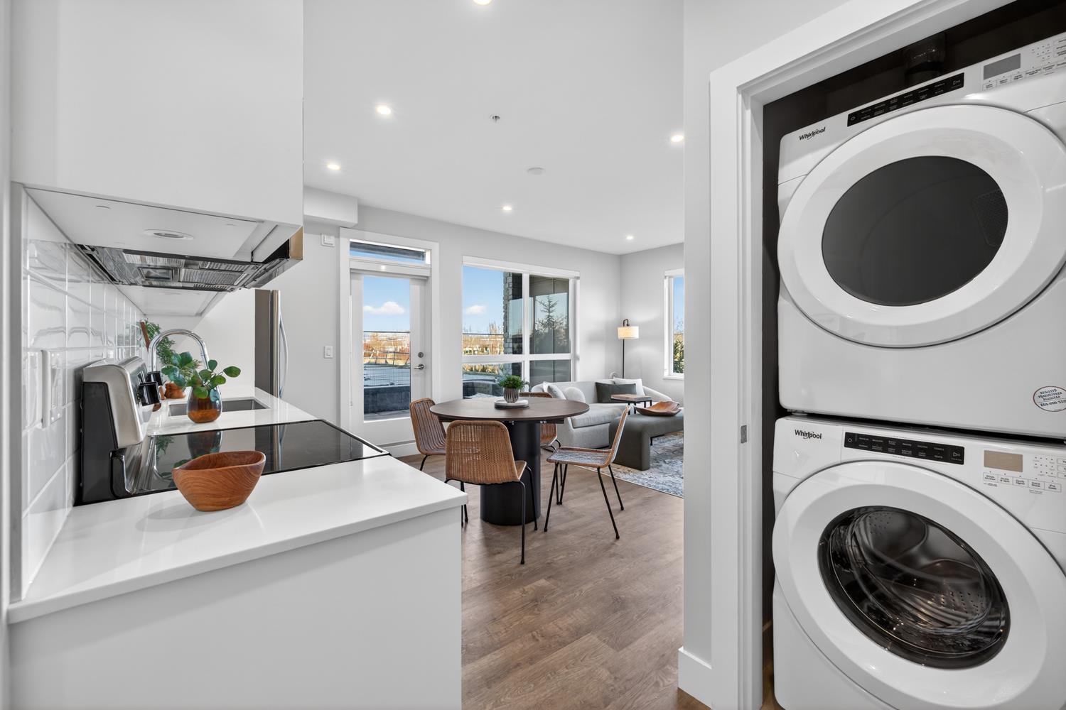 Welcome to the Condominium Collection at West Coast Estates in sunny Tsawwassen. This bright corner 2 bed + den, 2 bath home offers 786 sq.ft. of efficient open-concept living. Modern West Coast interiors feature large windows, a seamless indoor-outdoor connection, and direct patio access. The kitchen includes quartz countertops, tiled backsplash, and Whirlpool stainless steel appliances. Enjoy a spacious patio with adjoining grassy area (Courtyard to be completed), perfect for relaxing or entertaining. Dog...