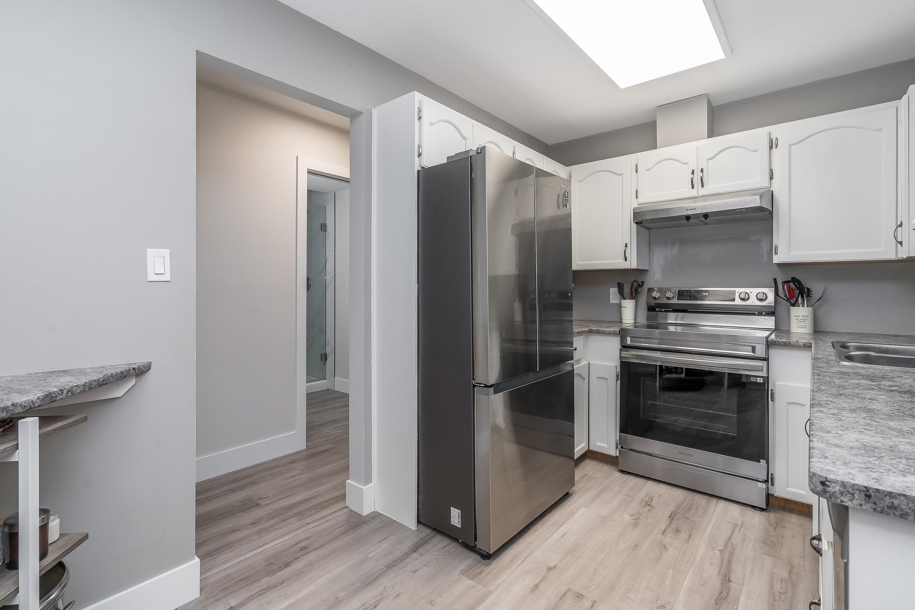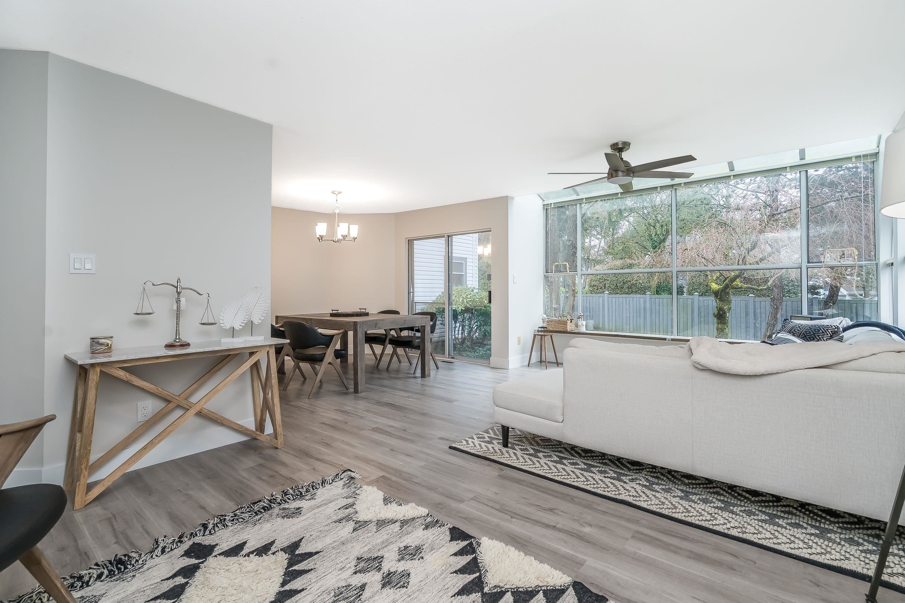 Located in sought after Murrayville, this rarely available ground level, 2 bdrm + den, 2 bath gorgeously renovated townhome. Spacious living room w/gas fireplace, huge atrium bay window w/view of quiet greenspace. Elegant dining room w/ sliding door onto your private patio (has been approved for fencing). Bright kitchen, loads of counter space & new appliances, opens to dining room for effortless entertaining. Oversized Primary Bedroom is perfect oasis w/ luxury ensuite, built in custom double closets & big...