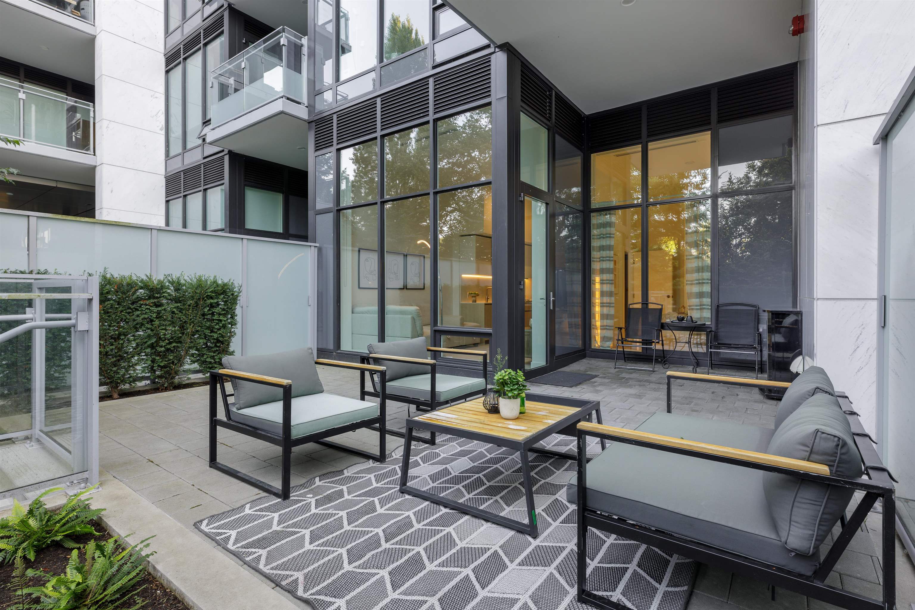 RARE 11’ CEILINGS, AN EXPANSIVE ~398 sq ft PRIVATE YARD WITH GROUND-LEVEL ACCESS 1BED+1DEN UNIT! At Hollybridge at River Green, this ASPAC-built 1-bedroom+1 den puts convenience and amenities first. Inside you’ll find hardwood floors, floor-to-ceiling windows, a chef’s Miele kitchen with Caesarstone counters and Italian cabinetry, plus a smart-home system with integrated speakers; outside, enjoy 20,000+ sq ft of resort facilities—indoor pool, sauna/steam, full gym, basketball court, lounges, co-working, zen...