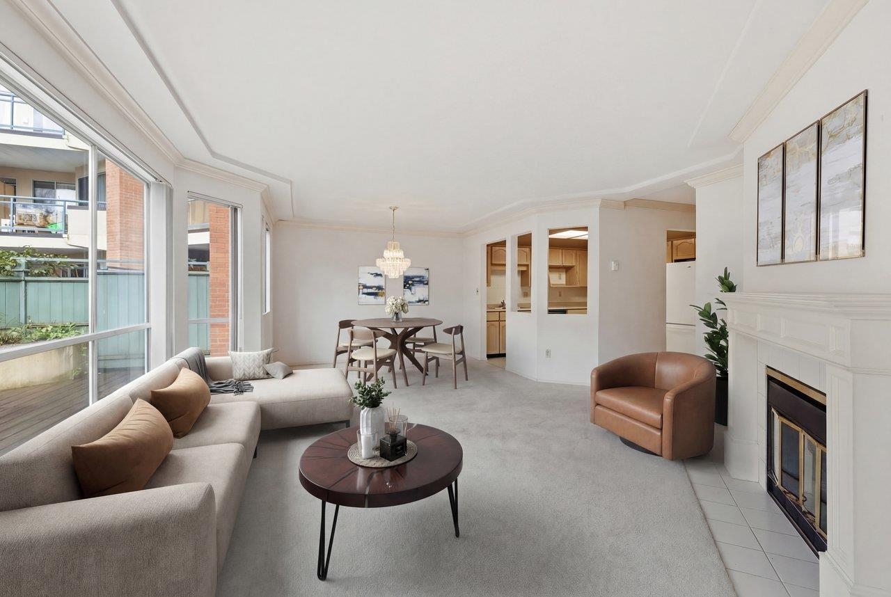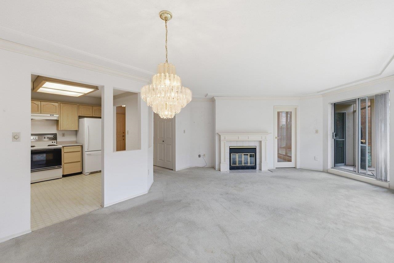 Spacious & full of potential, this large 2 bdrm, 2 bath home offers an exceptional opportunity to create the space of your dreams. The generous floorplan feats. expansive living & dining areas, cozy gas fireplace, & large windows that fill the home w/natural light. The kitchen includes a convenient eat-in area, ideal for casual meals or future redesign possibilities. Enjoy the outdoors from the massive West facing 500sqft deck, on the quiet side of the building facing the courtyard, perfect for relaxing in ...