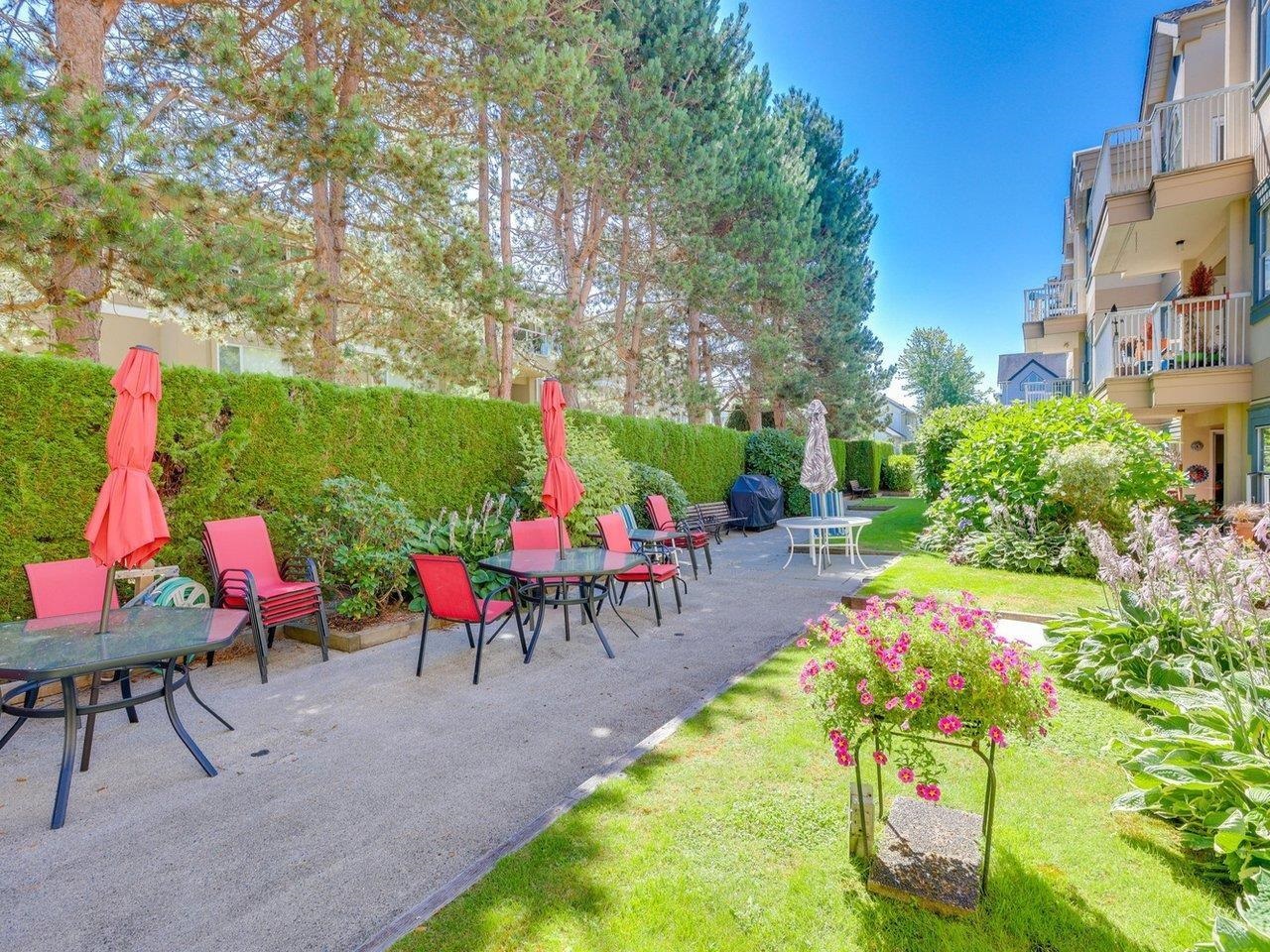 Welcome to The Lexington, 2 bedrooms, 2 full bathrooms, good floor plan. Engineered hardwood floors, updated bathrooms and kitchen with private west facing patio. Storage not a problem with large laundry room and convenient storage locker. complex offers amenities room with beautiful patio area, bike room and workshop. QUIET location, well run strata, walk to everything! Age restrict 55