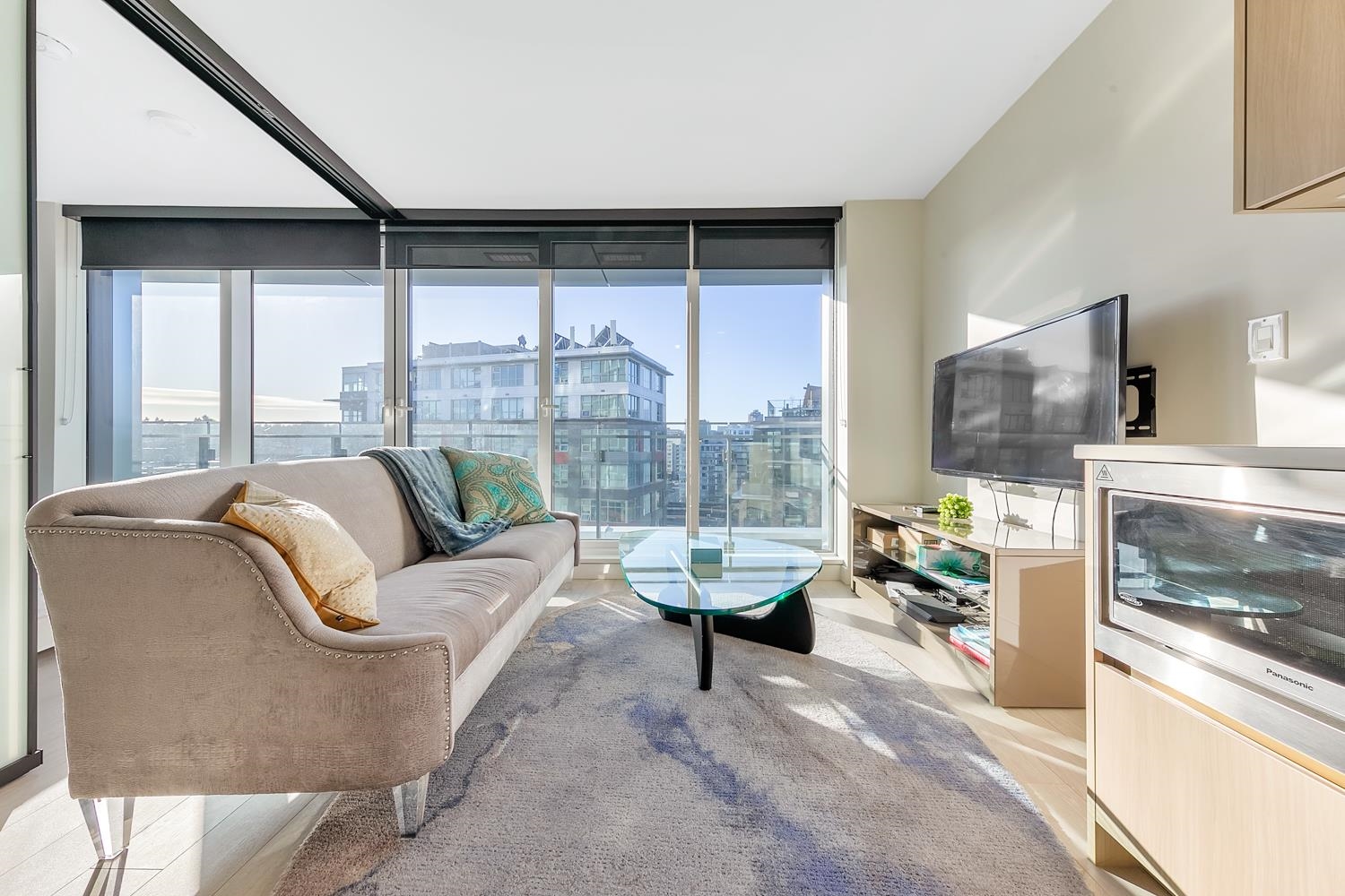 Luxurious 1 BR+ DEN unit by Concord Pacific with city, park & water view. Naturally well-lit with floor to ceiling windows and high quality flooring/finishings with detailed craftsmanship throughout the unit (incl. smart thermostats). Modern, gourmet kitchen features gas stove & Meile appliances w/ designer cabinetry & crisp quartz counters. Good size bedroom comes with luxury Walk-in closet. EXTRA DEN for home office/storage area. Enjoy A/C and superb amenities incl. concierge, fitness centre, community ga...