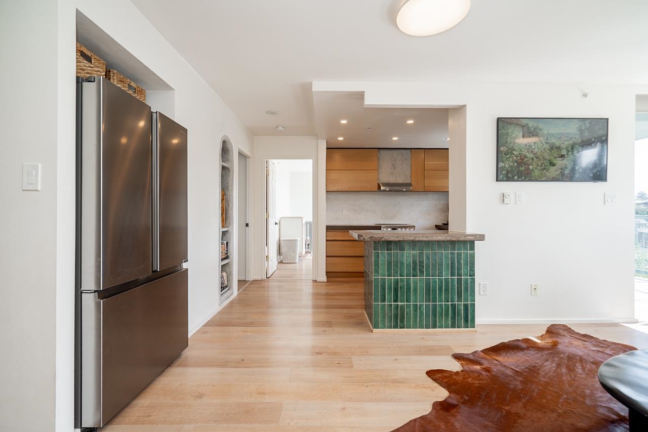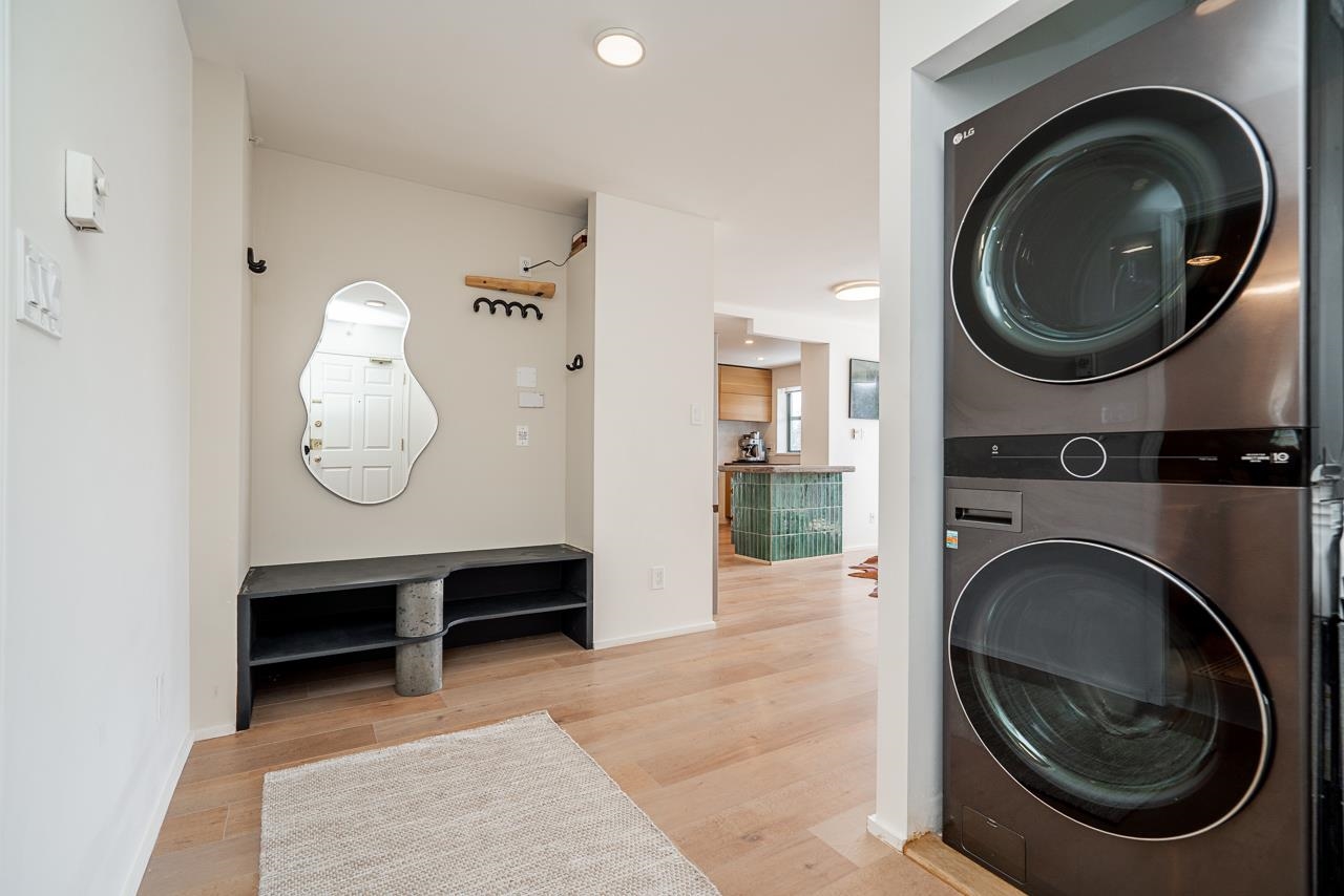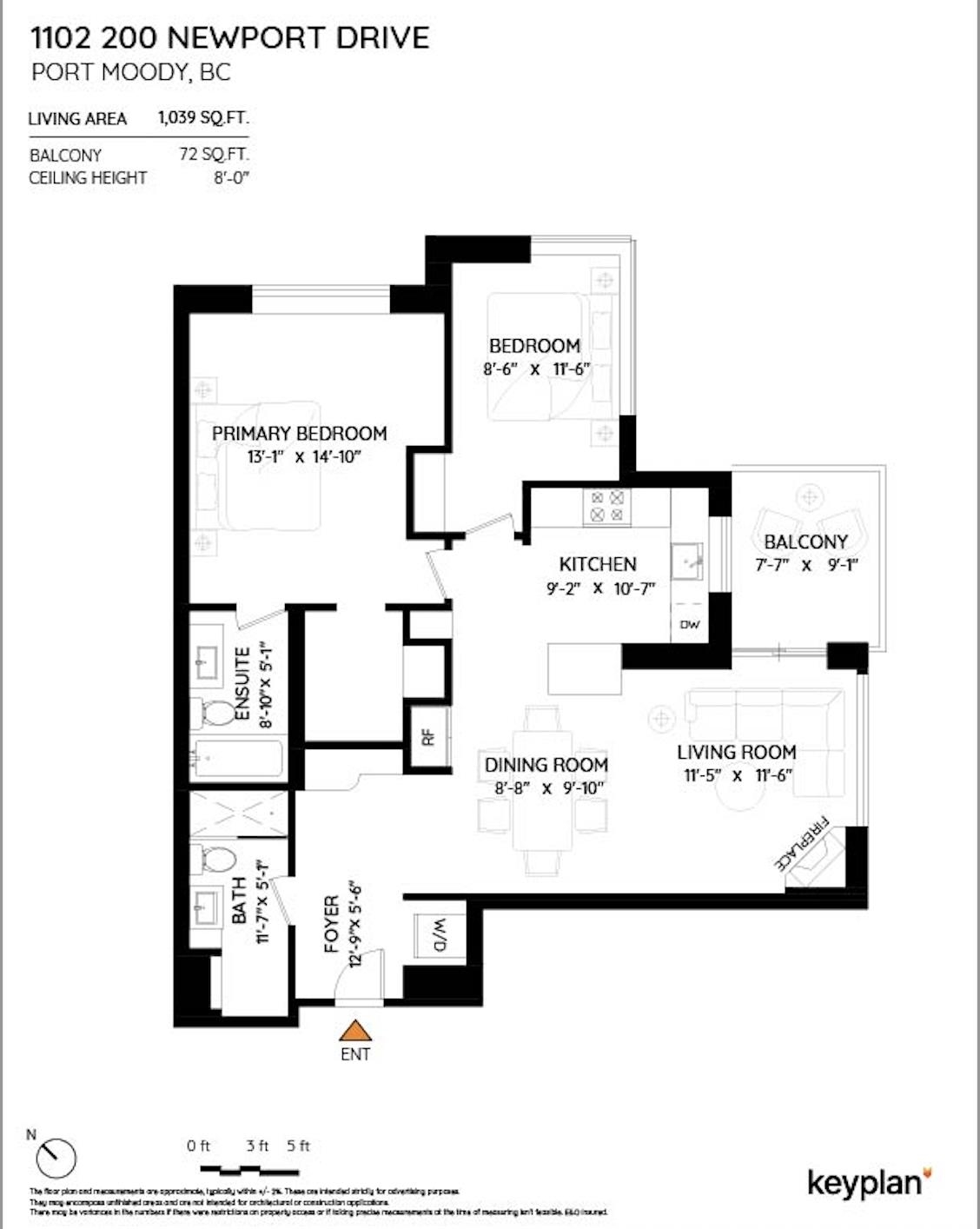 RENOVATED CORNER UNIT, 1 balcony & open private mountain & city views. Large welcoming entry, bedrooms on opposite end for ultimate privacy, updated kitchen & baths, s/s appliances, hardwood flooring, new Washer/Dryer & cozy gas fireplace. Dining room w/direct access to the private & covered balcony. In the heart of Newport Village, shopping at your doorstep at your doorstep & Ocean, Mountains, Parks, & Skytrain steps away. The Elgin - well respected, impeccably maintained & well managed building w/beautifu...