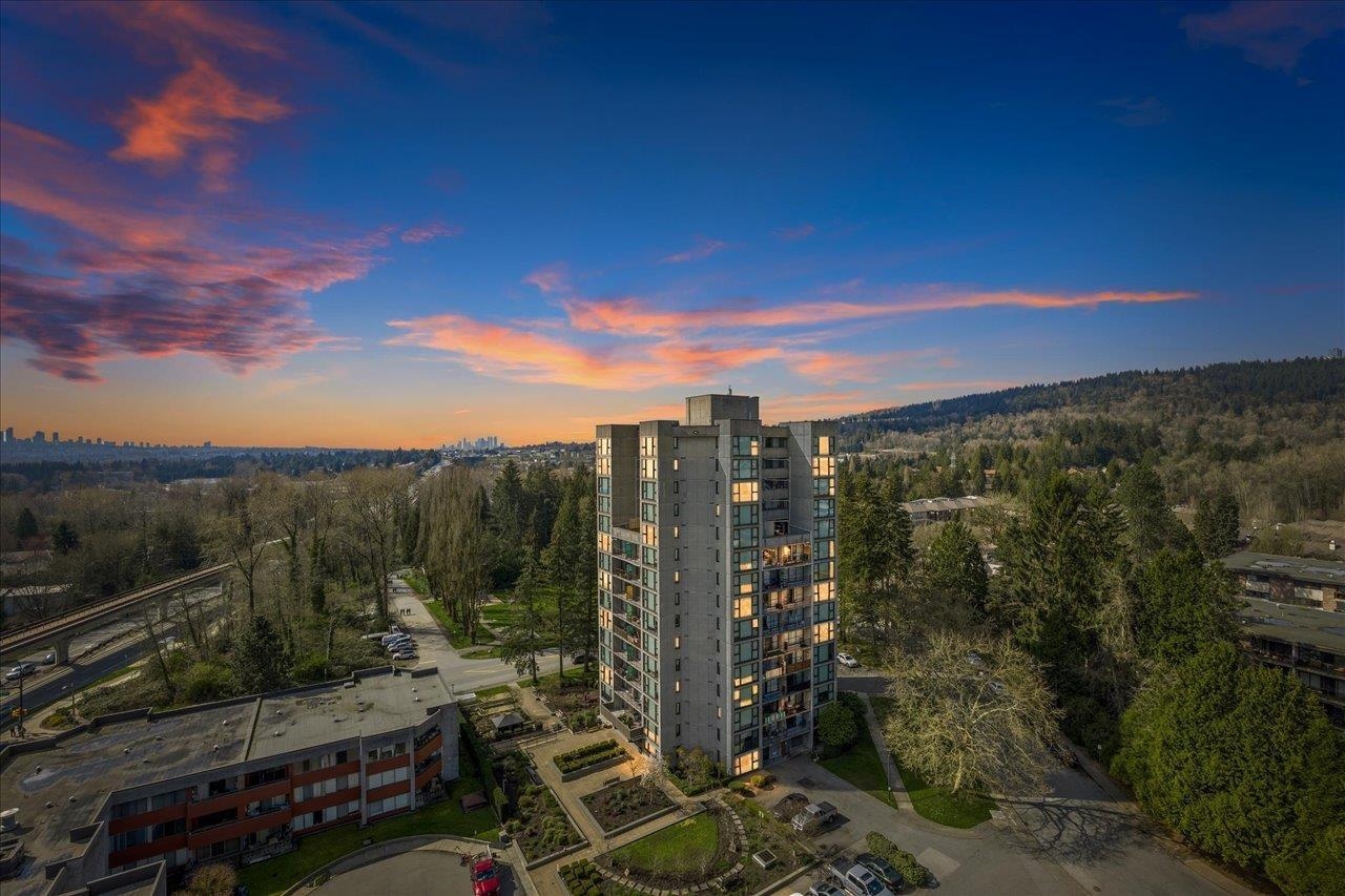 PERFECT FOR FIRST-TIME BUYERS! Bright 2 bedroom SOUTH facing condo with incredible views. Resort style living with seasonal outdoor pool, sauna, party room, guest suite, hobby room and more. Steps from Lougheed Mall, skytrain, schools, restaurants and shops, this is the perfect place to call home. Modern kitchen w/lots of storage and new appliances, new flooring, bathrooms, washer/dryer, blinds and paint. Over $50,000 spent on renovations - all you need to do is move in and enjoy. Large covered balcony to e...