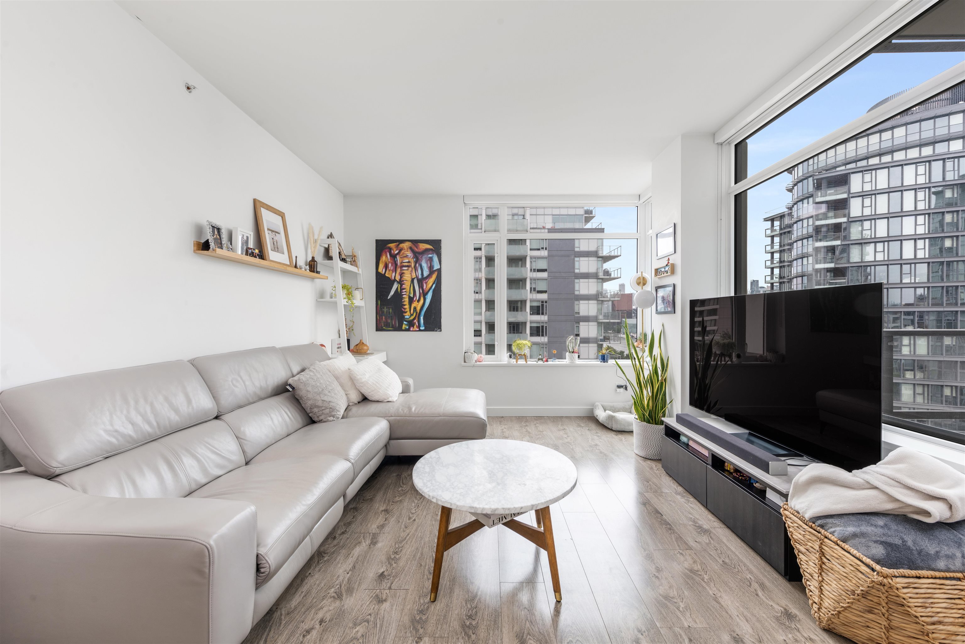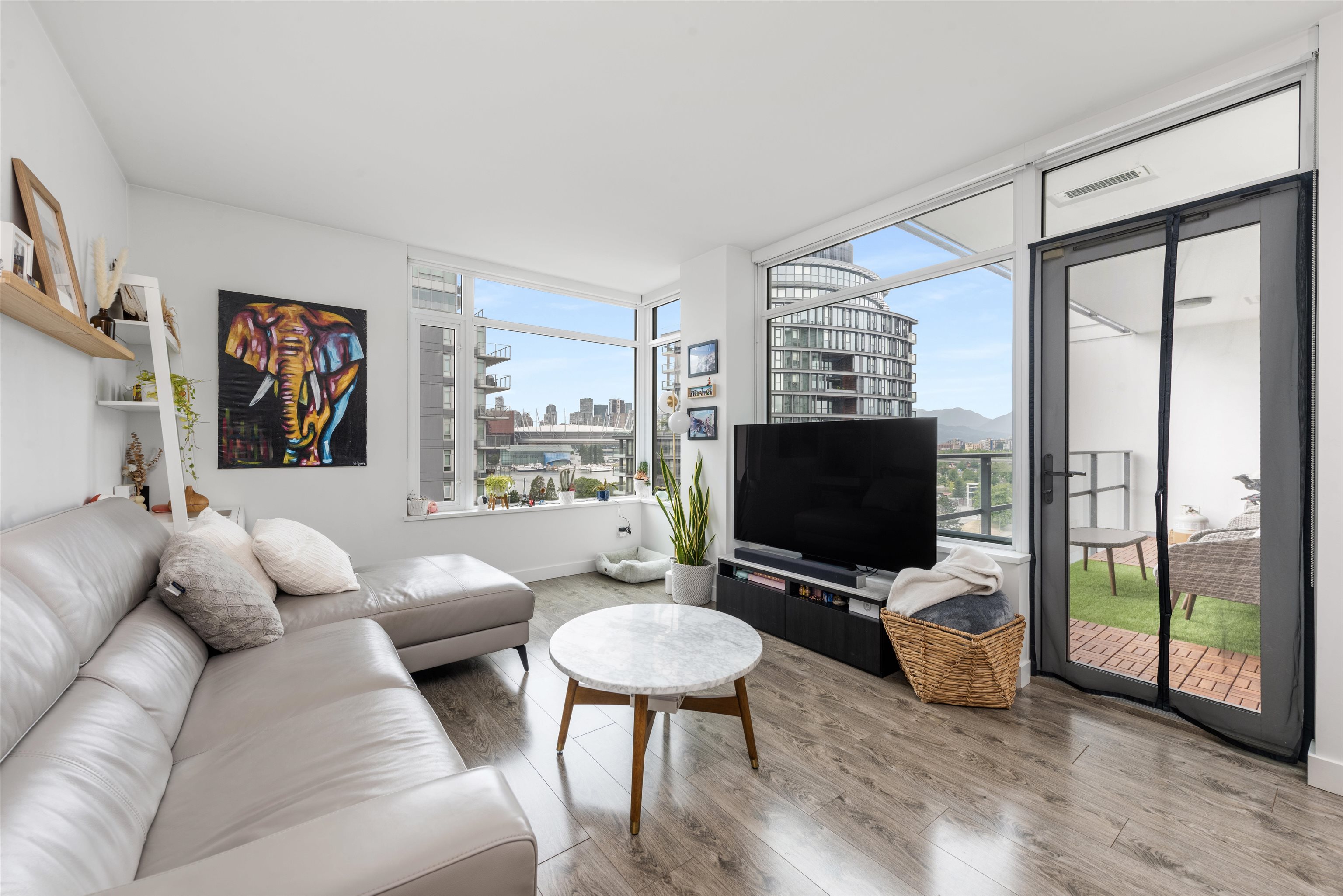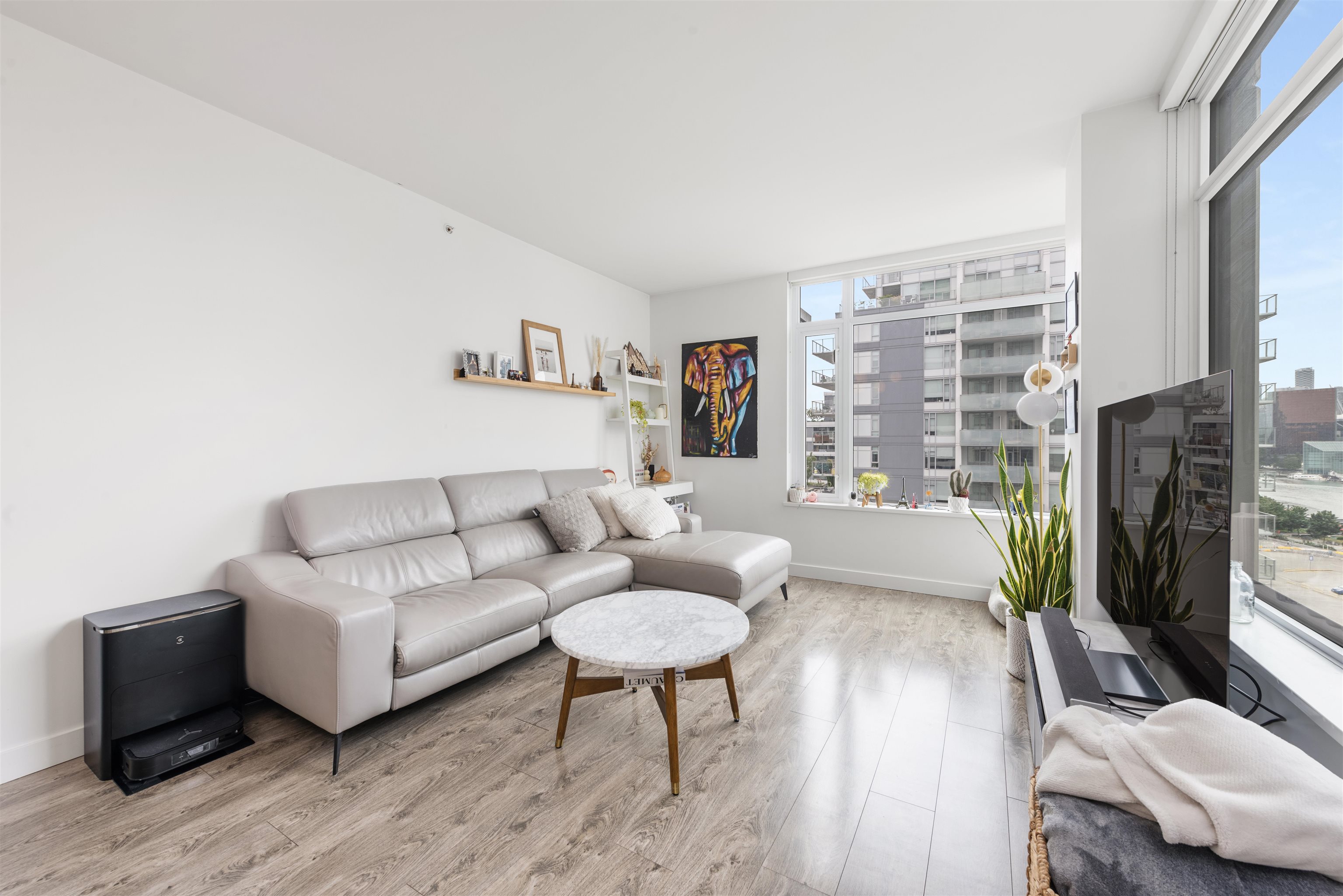Lido by Bosa Properties. This unit has a open and practical layout and offer a spectacular view of False Creek, mountains and skylines complemented with expansive NW windows along with air-conditioning for the summer days. Developer uniquely upgraded this unit by expanding the en-suite with double sinks/linen closet. Both bathrooms have been upgraded with nu-floor heating/custom stone wall tiles. Gourmet kitchen with Euro S/S appliances and gas stove. Extra room at entrance can be an office. 2 side by side ...