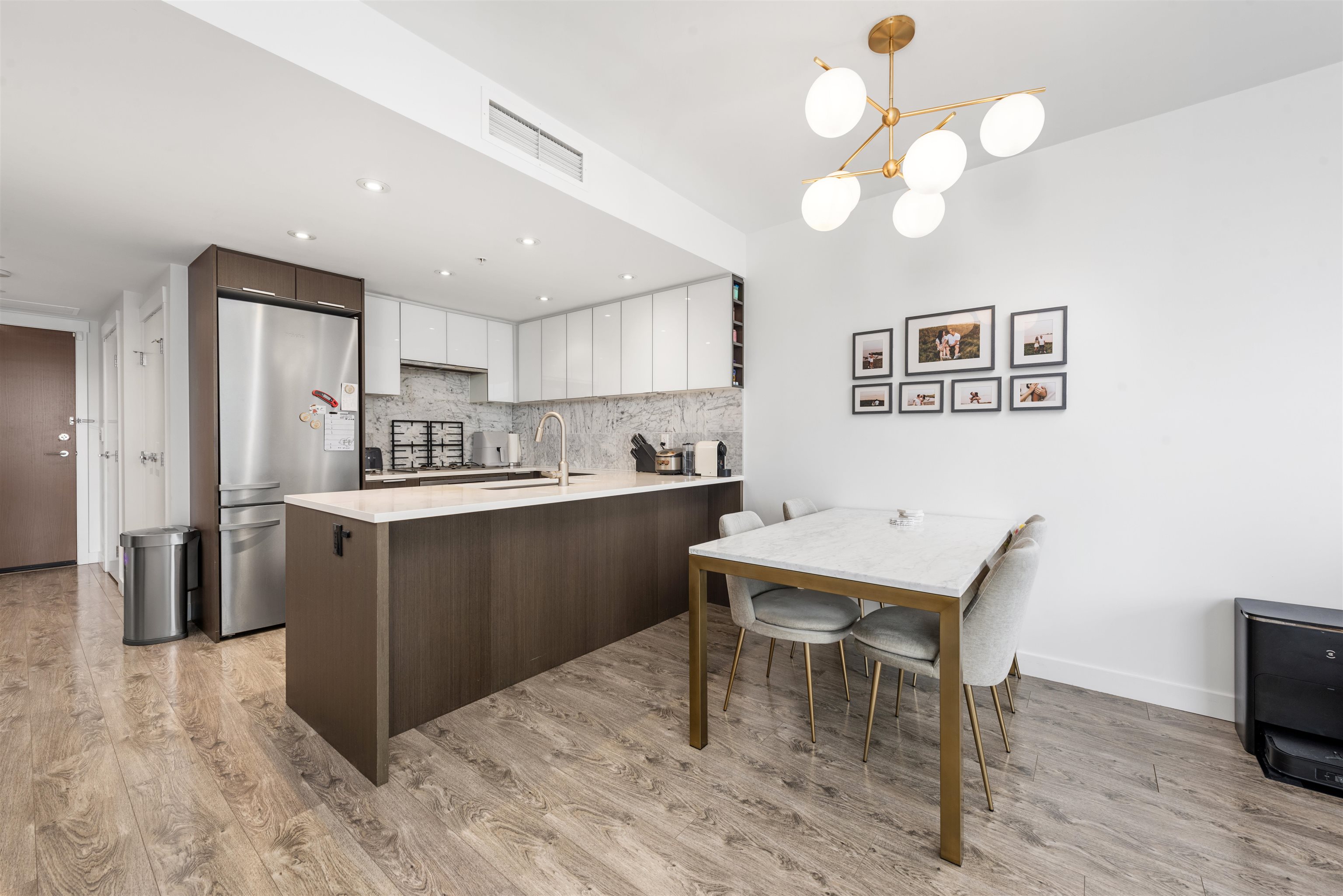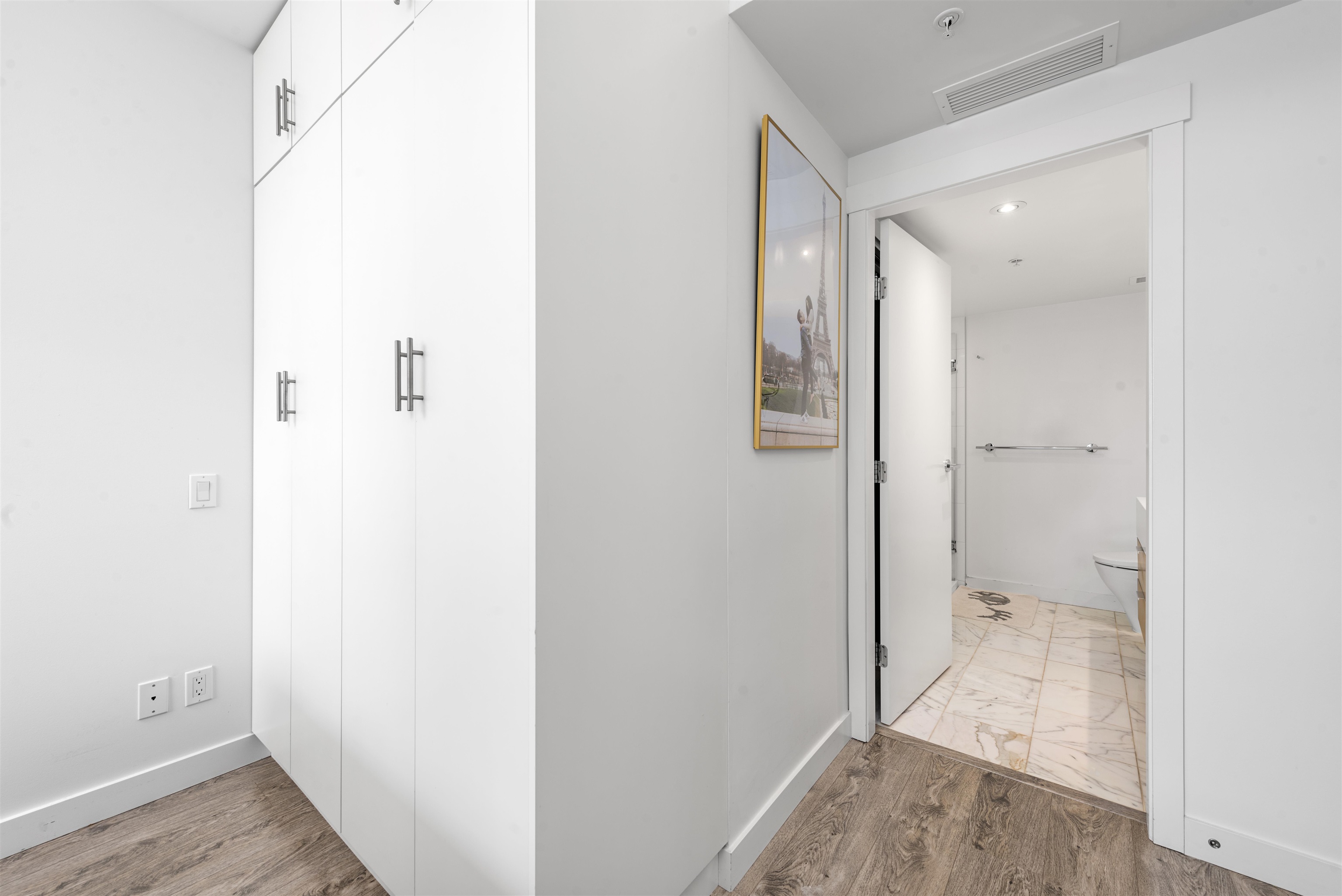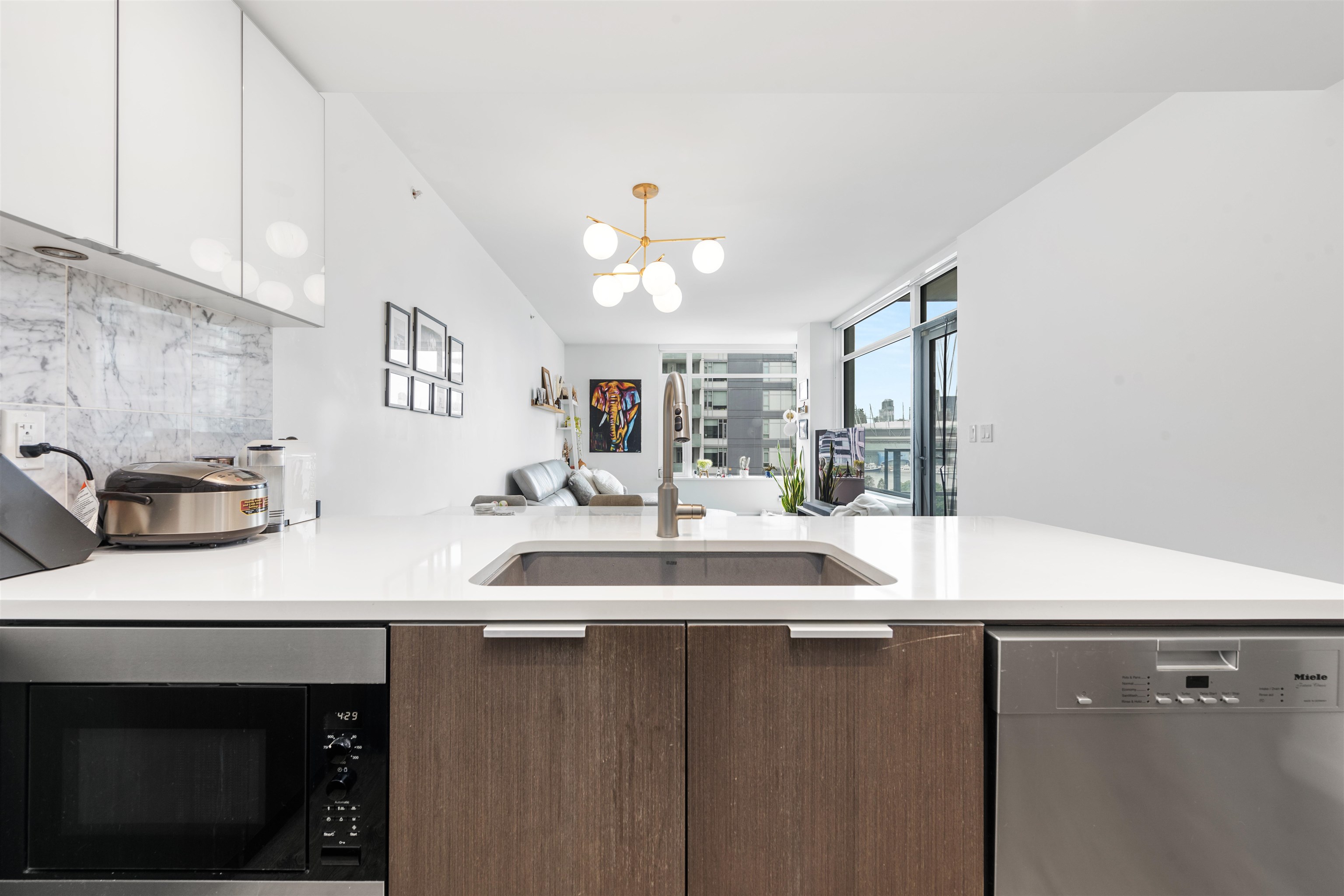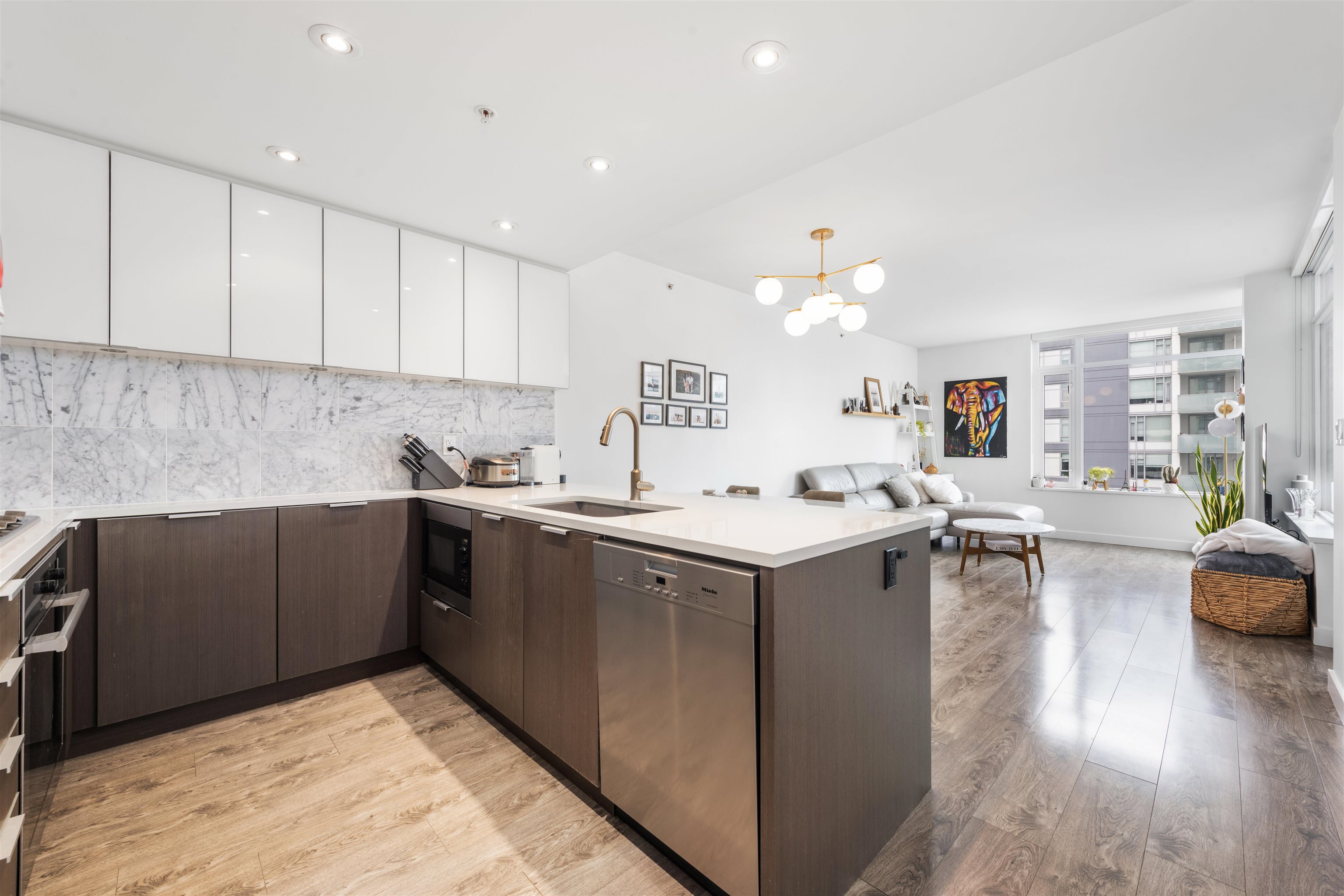 Lido by Bosa Properties. This unit has a open and practical layout and offer a spectacular view of False Creek, mountains and skylines complemented with expansive NW windows along with air-conditioning for the summer days. Developer uniquely upgraded this unit by expanding the en-suite with double sinks/linen closet. Both bathrooms have been upgraded with nu-floor heating/custom stone wall tiles. Gourmet kitchen with Euro S/S appliances and gas stove. Extra room at entrance can be an office. 2 side by side ...