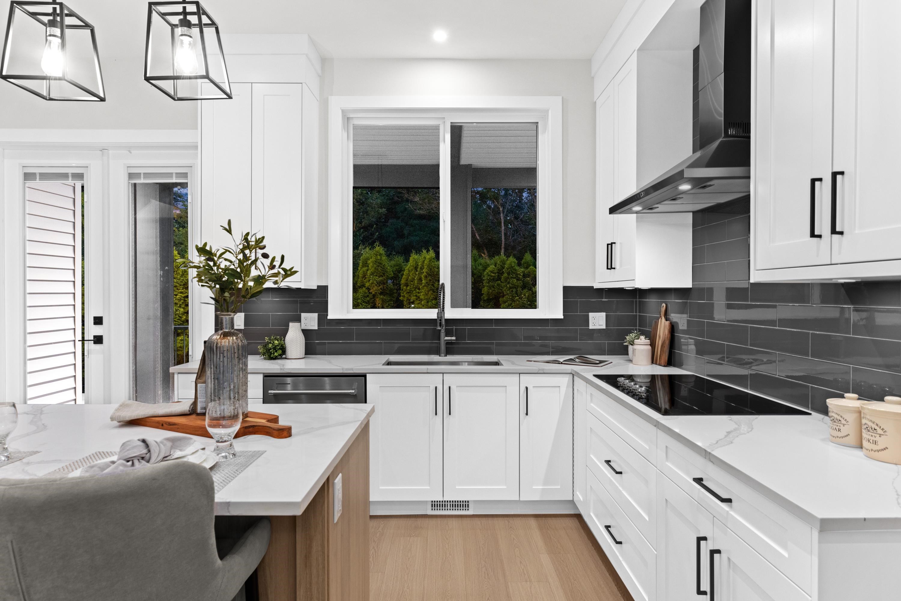 This West Coast Style home includes 4 bedrooms up, all with their own full ensuite baths and walk-in closets, the primary suite has a luxury bath with a soaker tub, a separate shower and a private covered balcony. The main floor includes a flex room that's perfect for a home office or study room for the kids and a spacious open plan with 10 foot ceilings, an island kitchen, a convenient laundry/mud room at the entrance from the double garage and a dining room that opens onto the covered sundeck that overloo...