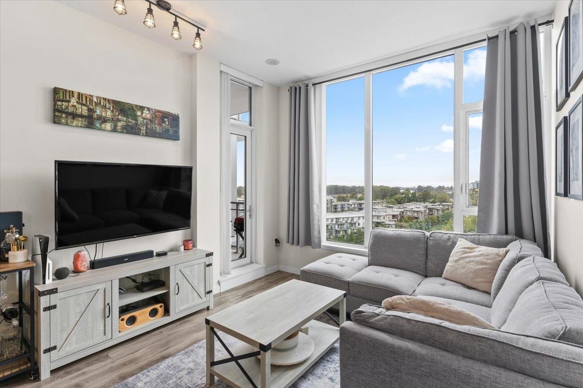 Sub-penthouse 2 Bed + Den at Rhythm by Polygon. The 1O' ceilings and unobstructed west-facing views of the Fraser River make for great sunsets on the balcony. Bright, open layout with separated bedrooms, modern kitchen with quartz counters, s/s appliances, and ample storage. Den makes an ideal office or nursery. Enjoy top-tier amenities at Rhythm Club: A/C fitness centre, lounge, meeting room, and courtyard. Kid-friendly community steps to parks, playgrounds, Fraser River Trail, and 2 blocks from River Dist...