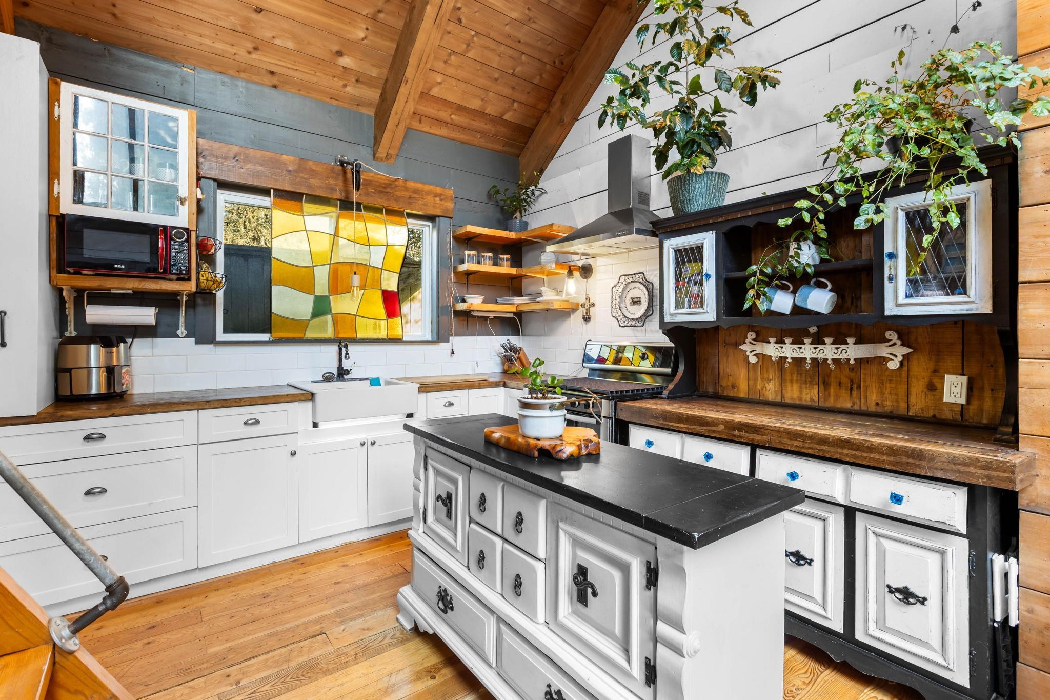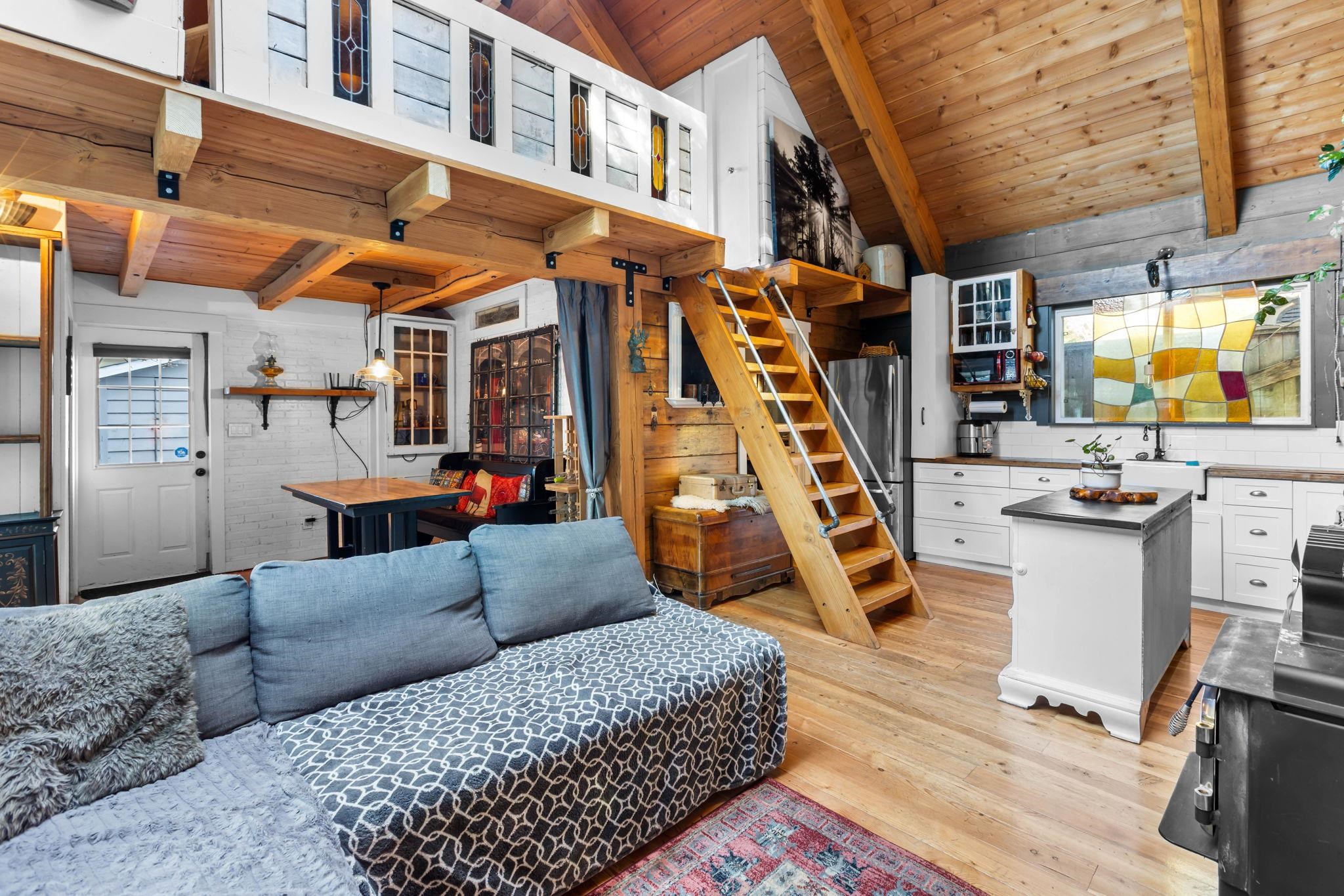Welcome to Ellendale — one of the neighbourhood's finest Ranchers, sitting across from an Elementary School and a lush green belt. The open-concept kitchen and living room radiate rustic warmth and character. A fully detached laneway home with a loft bedroom, 2 bathrooms, and its own laundry offers incredible mortgage helper potential. Plenty of parking and an EV charging outlet for modern convenience. Relax on the expansive laneway deck or utilize the bonus storage room at the back of the main home. Garden...