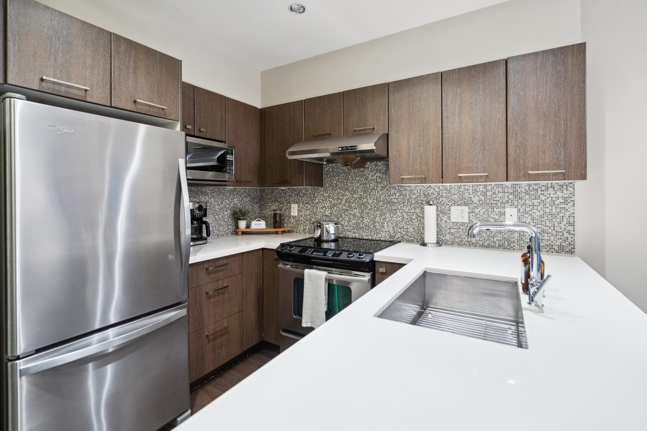 "CHARLAND" by LEDINGHAM MCALLISTER! A stunning 1-bedroom + den/home office with a spacious 232sf private entertaining patio—perfect for summer BBQs, relaxing evenings, or hosting guests. With direct lane access for extra parking, convenience is at your doorstep. open-concept layout with a generous living/dining space, laminate flooring throughout, in-suite laundry, and high-end finishes, including stainless steel appliances, quartz countertops, tile backsplash, and soft-close cabinetry. Amenities include se...