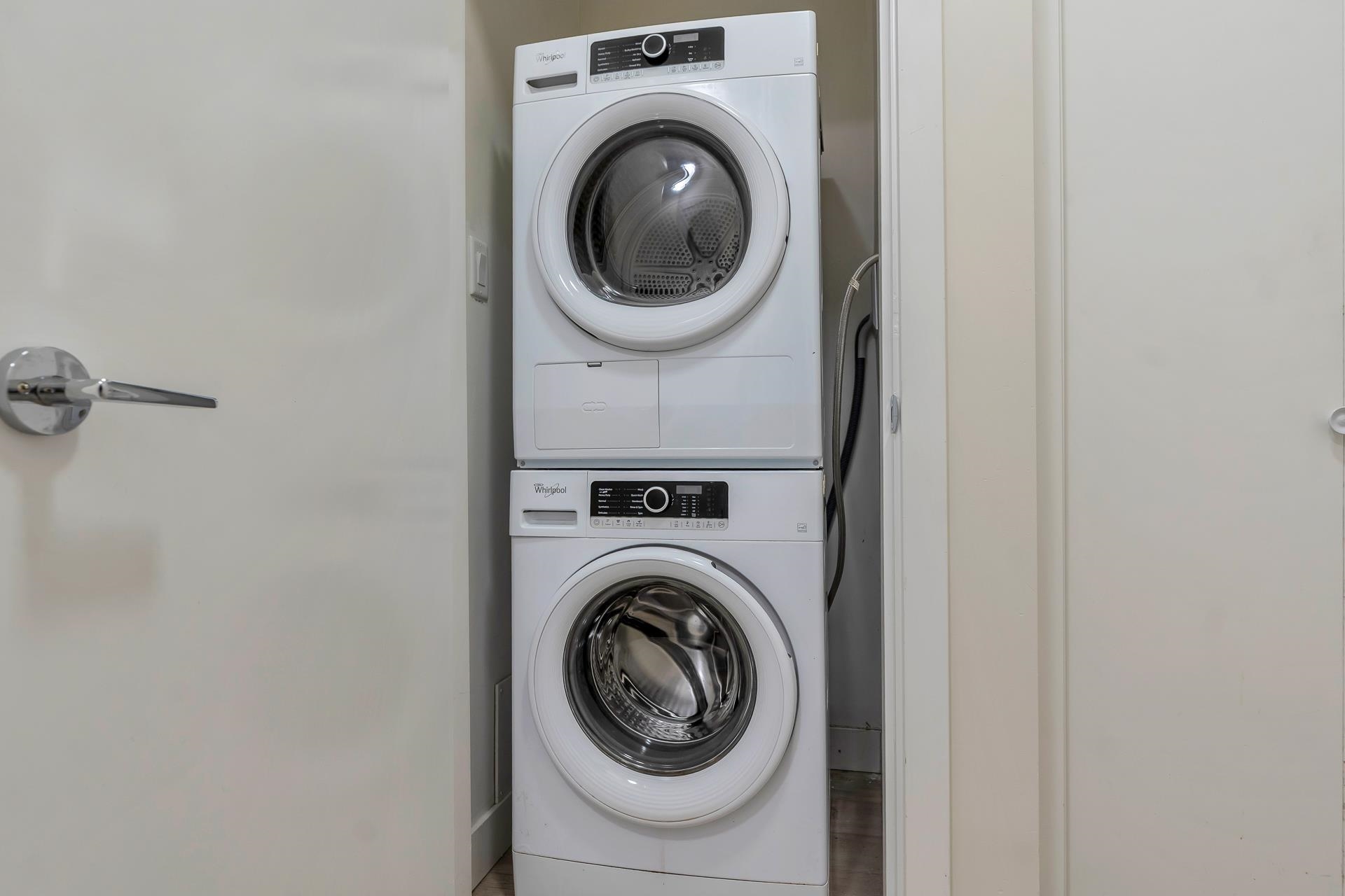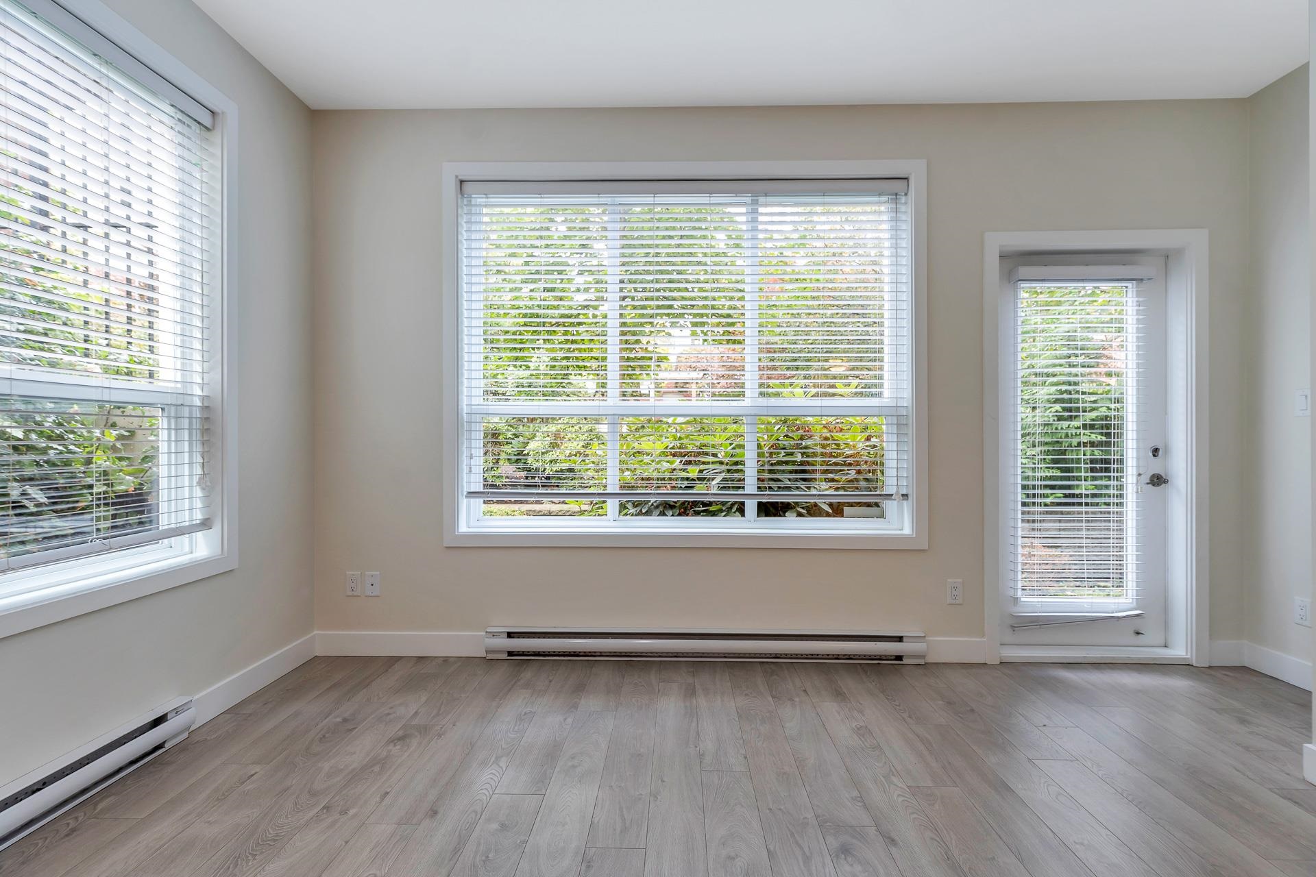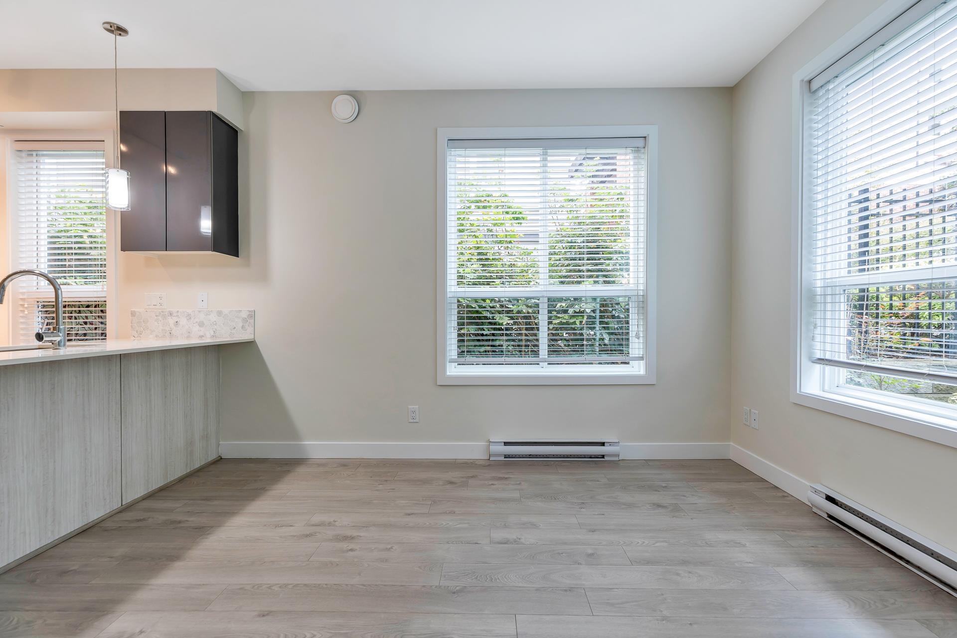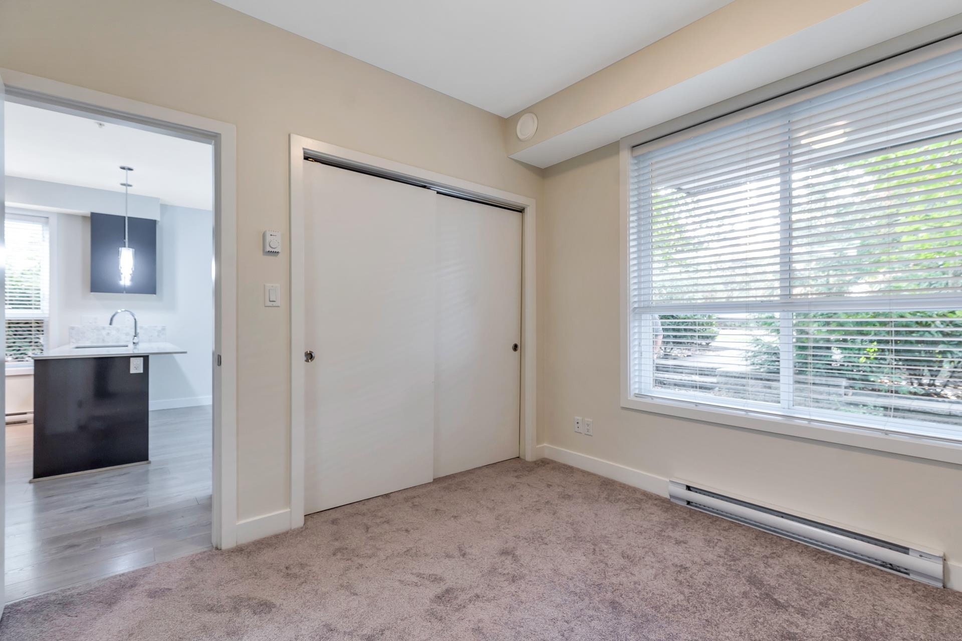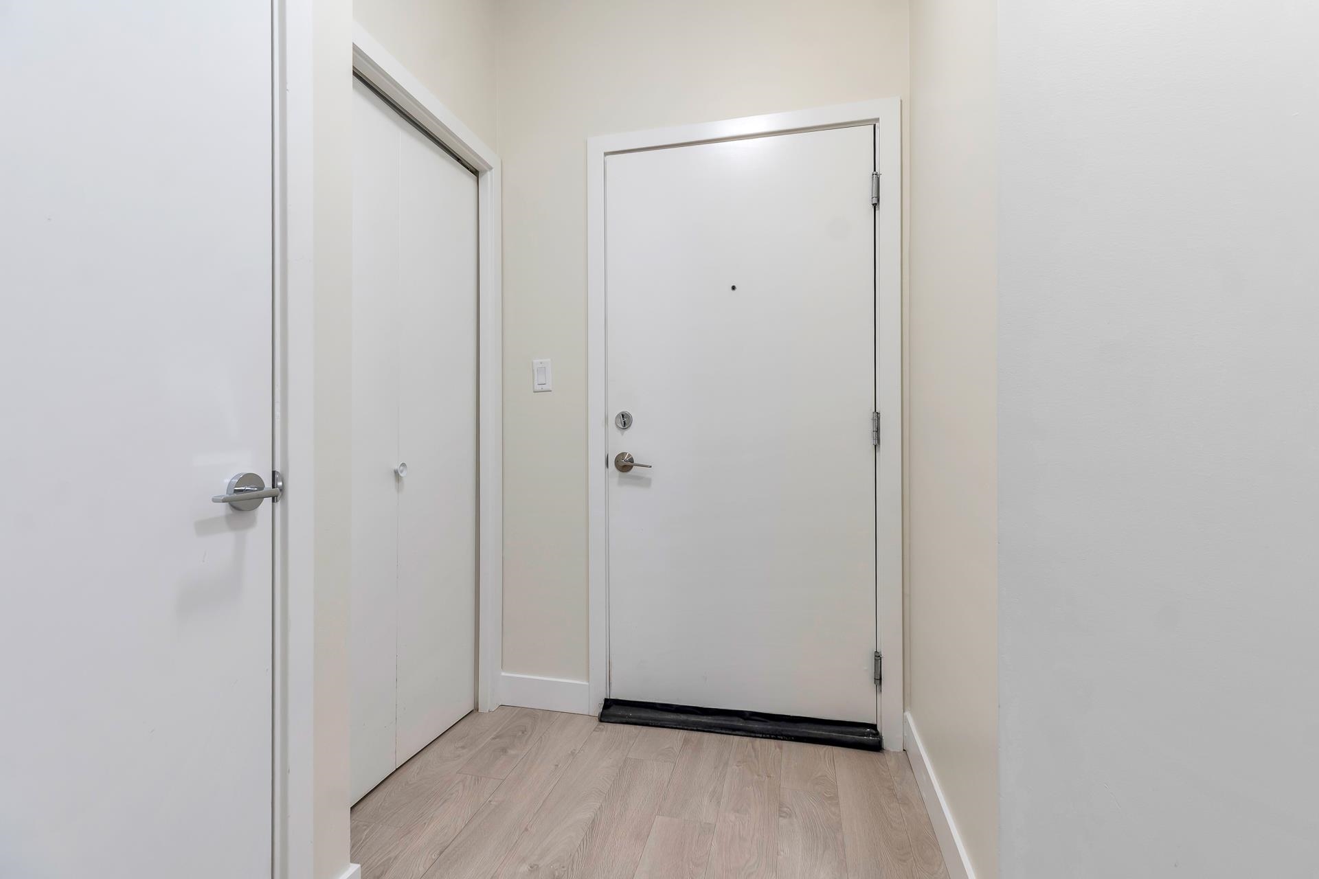 Main floor corner suite with its own private patio entry. This bright and spacious 2 bedroom, 2 bathroom home features a modern open floor plan with 9 ft ceilings, freshly painted walls, and stylish upgraded vinyl plank flooring. The kitchen offers a two-tone cabinet design with extra counter space and stainless steel appliances, perfect for both everyday living and entertaining. The primary bedroom includes new carpeting and a private ensuite. Additional highlights include two side-by-side parking stalls (...