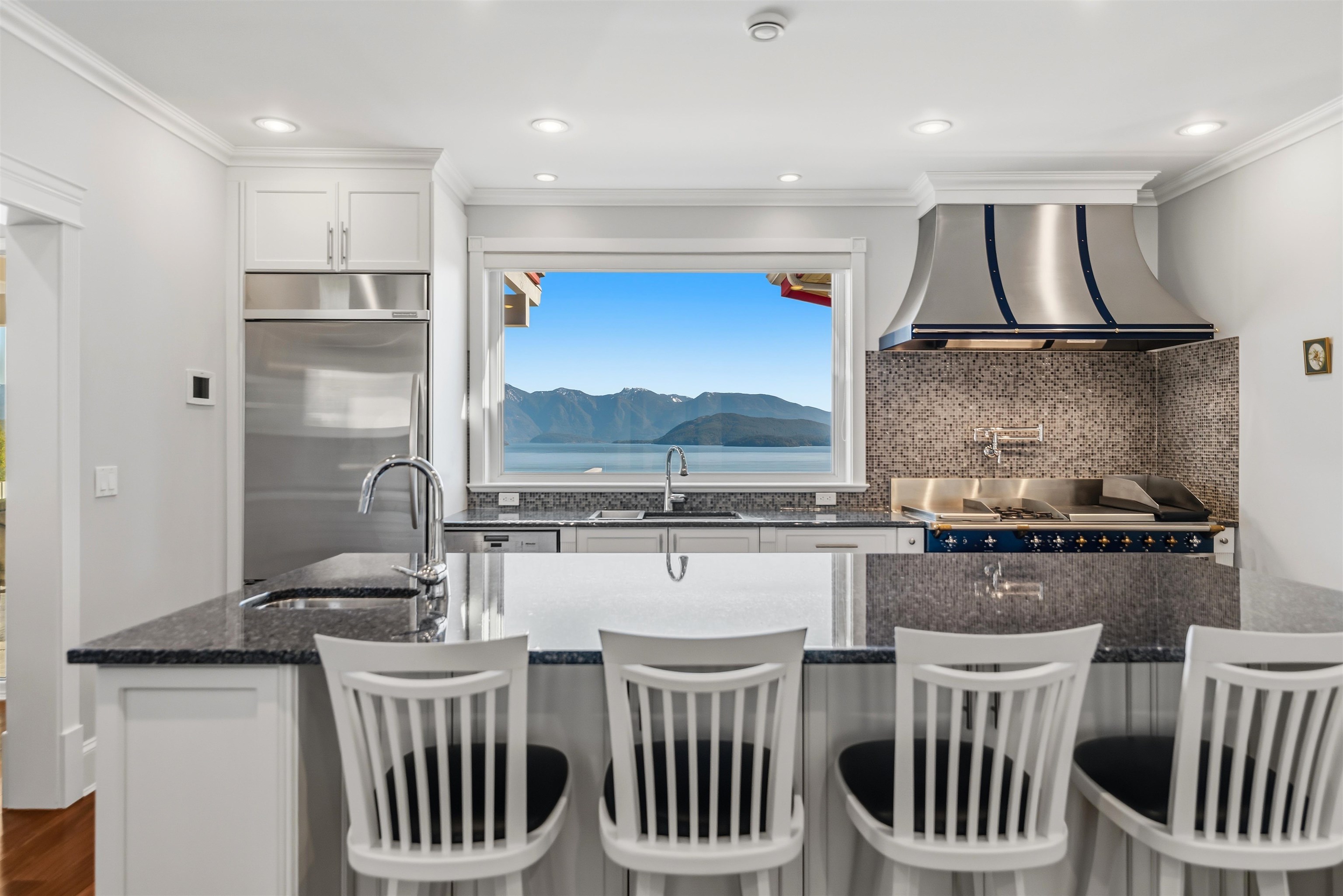Prepare to be captivated from the moment you enter the grand foyer, where panoramic, unobstructed ocean and mountain views unfold. This extraordinary 4,890+ sq ft residence showcases exceptional craftsmanship, featuring Brazilian teak hardwood floors, 10' ceilings, radiant in-floor heating, and a gourmet kitchen anchored by a Lacanche range from France. Thoughtfully designed for both luxury and function, the home offers expansive living areas, a conservatory, hidden office, media room, custom millwork, and ...