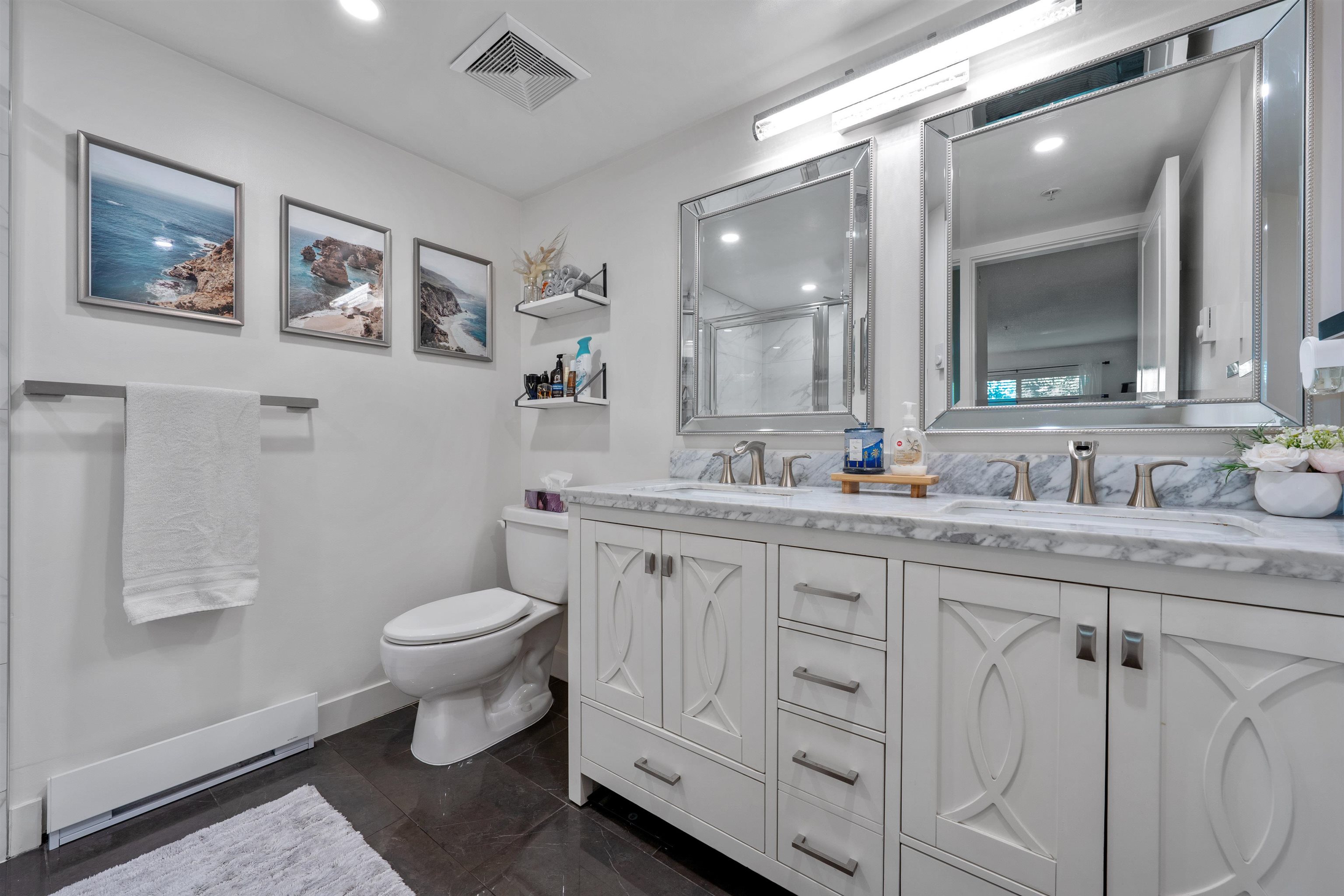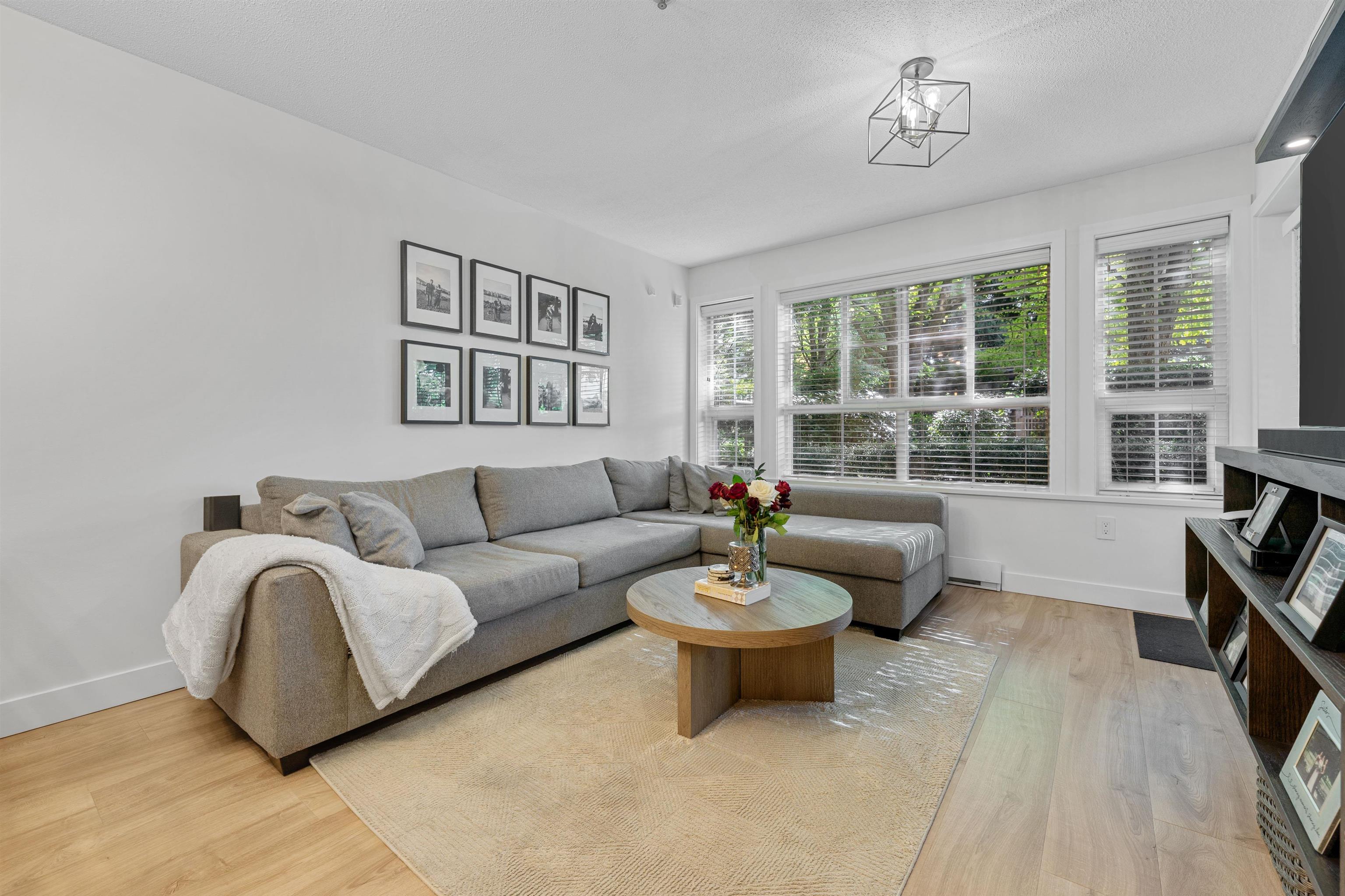 Welcome t o The Fairways! This stunning, fully renovated 945 s q ft 2-bed + den, 2-bath ground-level home blends style and comfort with brand-new kitchen, bathrooms, appliances, flooring, washer/dryer, plus a custom entertainment unit and wine rack. The bright, open layout and versatile den flow seamlessly t o a private patio retreat. Enjoy resort-style living with a gym, sauna, billiards room, guest suites, kids' playroom, and lush landscaped gardens. A proactive strata with a healthy contingency and newer...