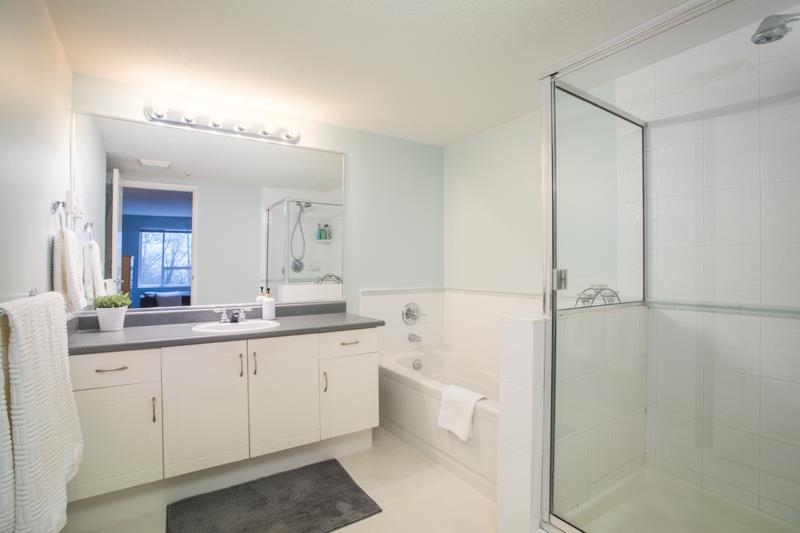 Peaceful and private, this 2 bed, 2 bath + open den home at The Glenmore is surrounded by lush tree canopy. The thoughtful split-bedroom layout features open kitchen and den—perfect for a WFH space—plus dedicated dining and living areas anchored by a cozy gas fireplace. This corner suite lives more like a rancher than a condo. With nearly 1,100 sq ft, there’s plenty of room for house-sized furniture. The oversized primary offers a walk-in closet with built-ins and a spacious ensuite. Moody Elementary and Mi...