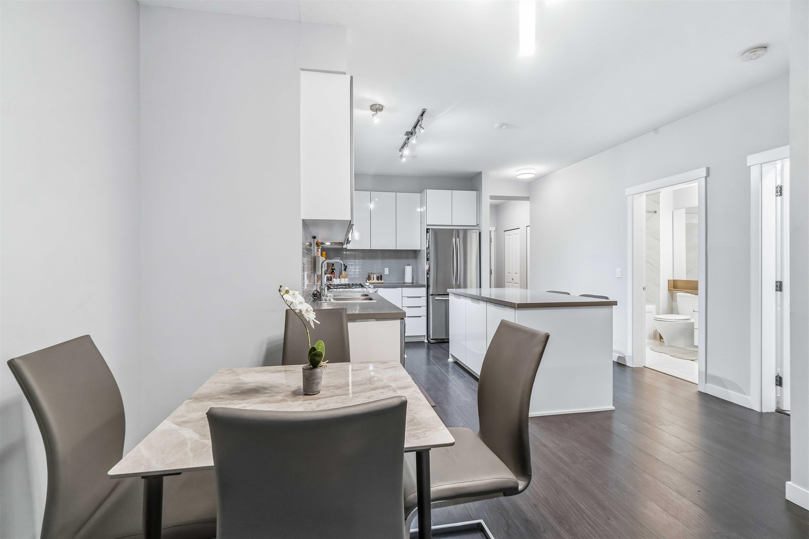 Discover contemporary comfort & exceptional convenience in this thoughtfully designed 1bed + DEN residence at Stanton House by Polygon, located in the heart of the vibrant & growing Burquitlam community. This bright, well-maintained home features an open-concept layout w/ a generous living & dining space, a sleek kitchen with s/s appliances & ample storage, & a spacious bedroom complete w/ a WIC. The versatile den is ideal for a home office, study, or additional storage. Large windows bring in abundant natu...
