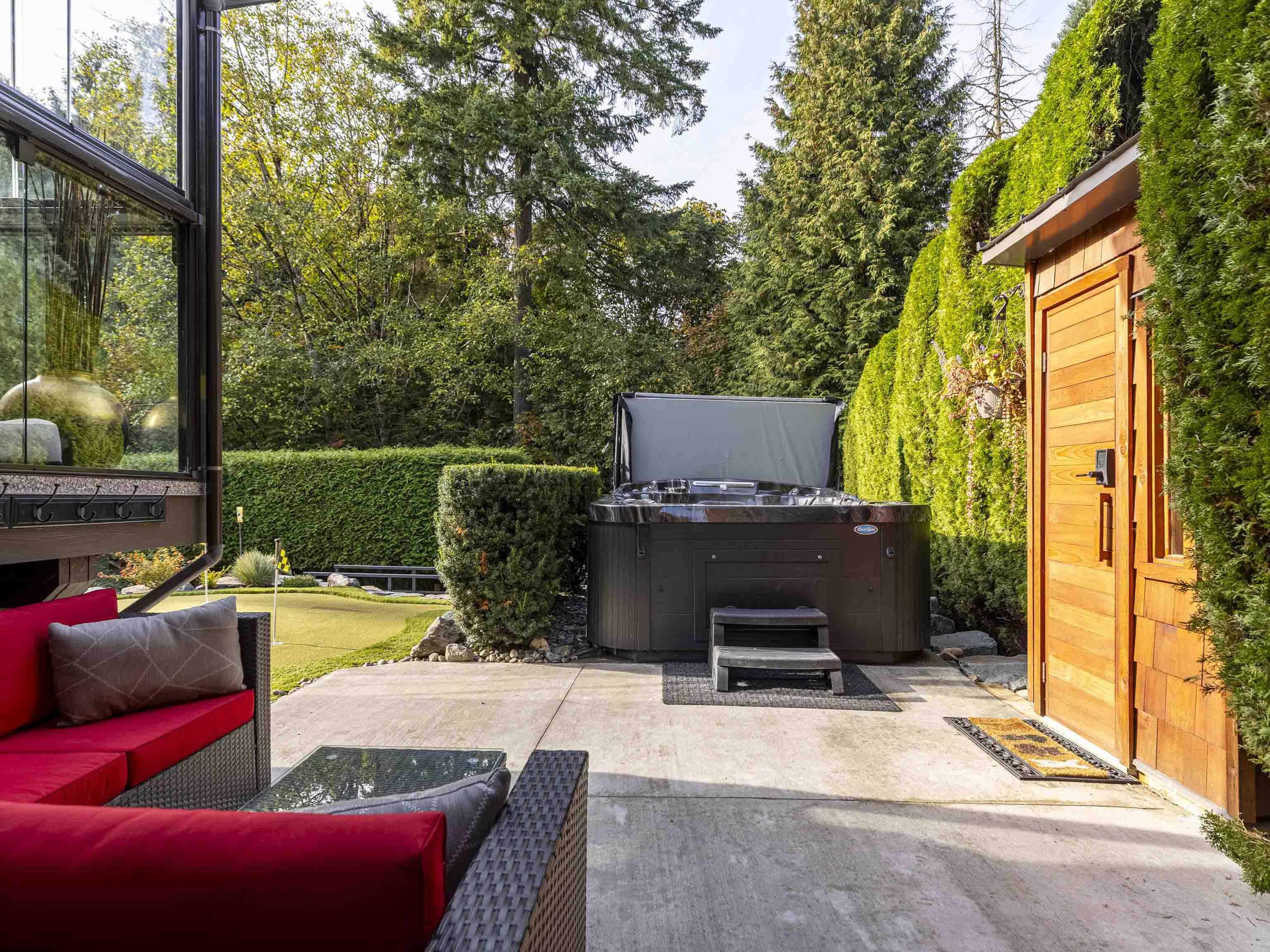 Over 4,000sf of indoor and covered outdoor living on one of Fraser Heights' most beautiful lots. 3 putting greens, a fully turfed, low maintenance yard, a covered bar & BBQ pavilion w, fireplace and ceiling heaters, multiple fire pits, a heated solarium w/ fully retractable glass panels and playground. An 8-person hot tub, a private sauna, and a lush forested backdrop create a personal sanctuary that restores as much as it impresses. Entertain forty. Unwind with two. Inside, enjoy a primary suite retreat, f...