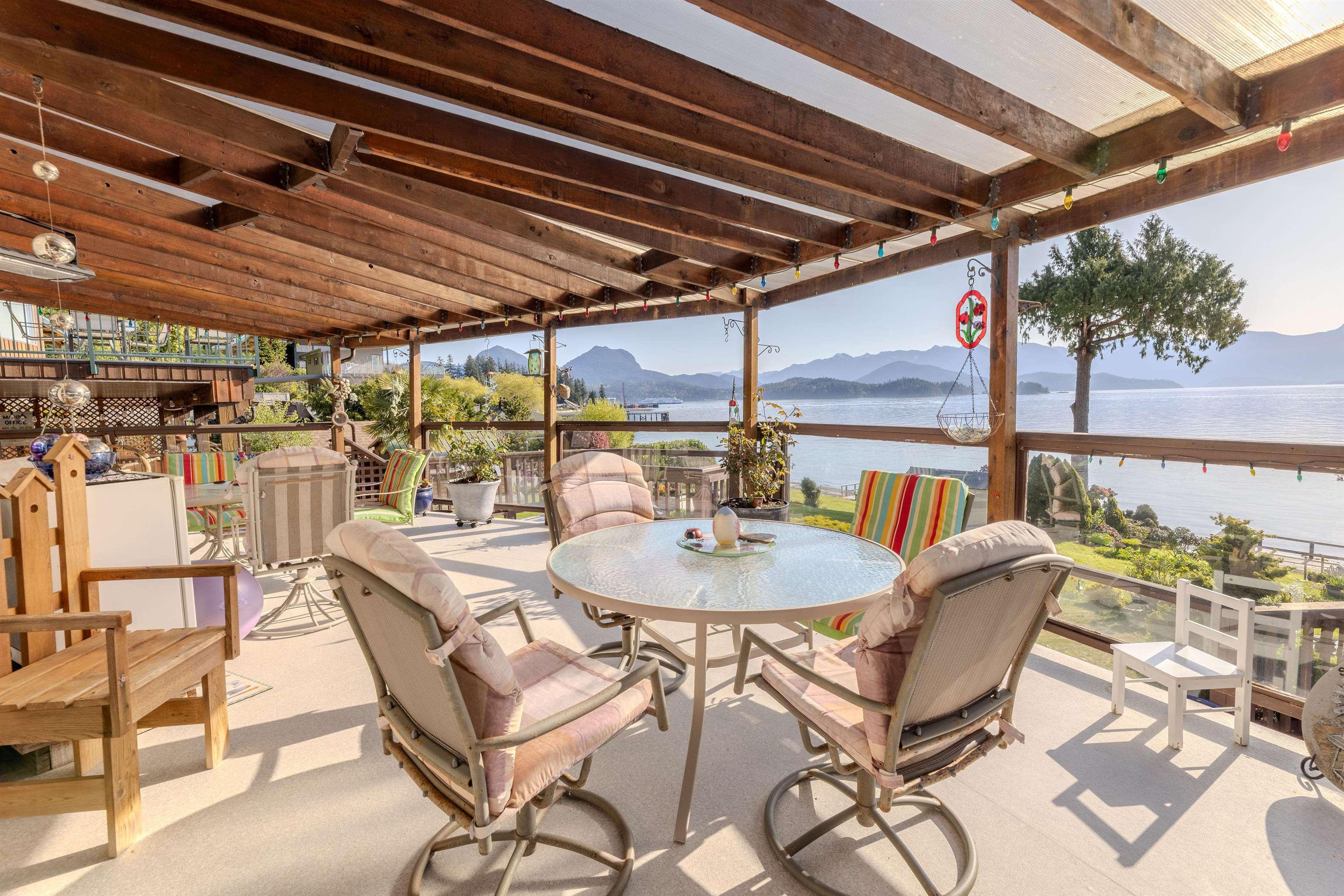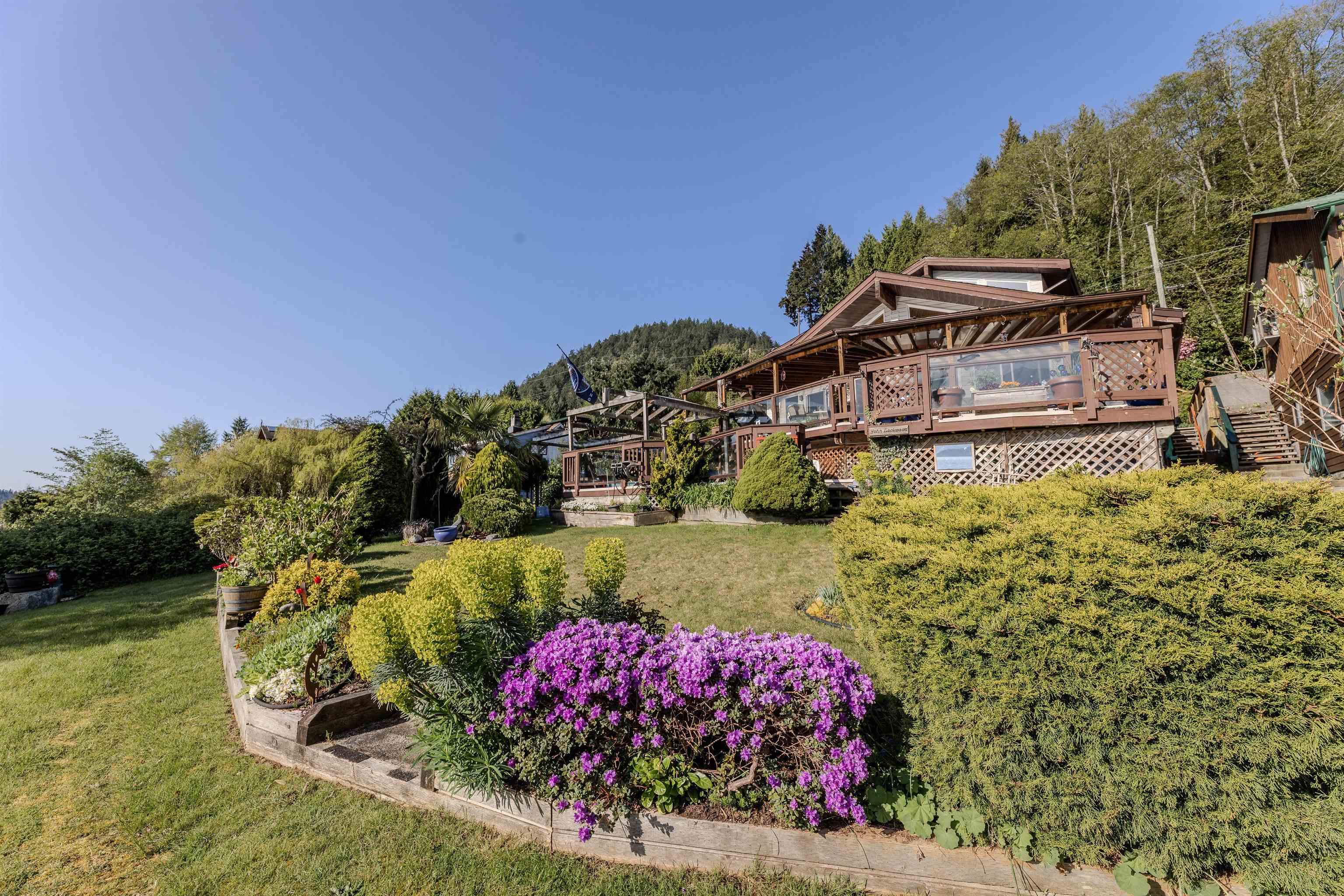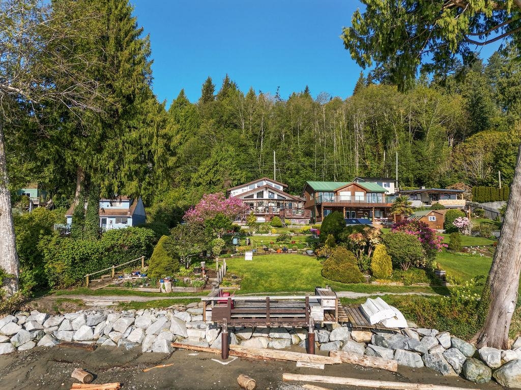 Low Bank Waterfront in Hopkins Landing. Renowned as one of the best Beaches around in Gibsons, you can walk to the Langdale Ferry, have friends visit you and tie up at Hopkins Dock which is in process of being rebuilt or tie your boat up to buoy and have fun all summer. This is about community - families know families and pass on to the next generation. This is a rare offering 10,067' lot, home built in 1991 features open design, vaulted ceilings, huge decks, greenhouse and hot tub. Home has its own garag...