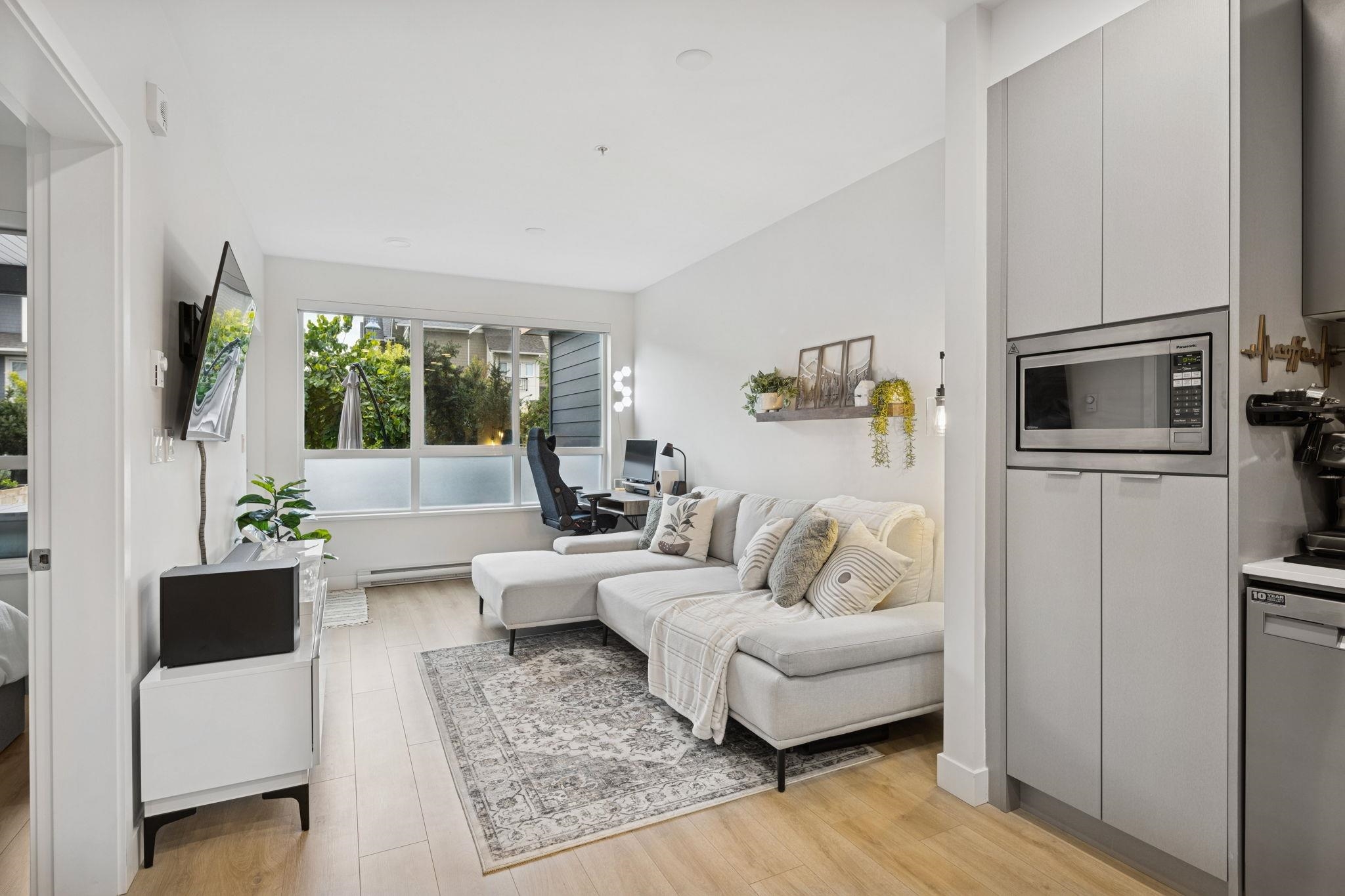 Welcome to this ground-level, townhome-style residence at Peregrine South! With 9ft ceilings, sleek cabinetry, stainless steel appliances, & a floorplan with no wasted space, this home truly checks all the boxes. The open living area extends seamlessly to a spacious 292sf west-facing patio—the true highlight—perfect for entertaining, enjoying your morning coffee, or taking advantage of direct, private access to Starling Dr. Ideal for pet owners & anyone who values outdoor living without the hassle of elevat...