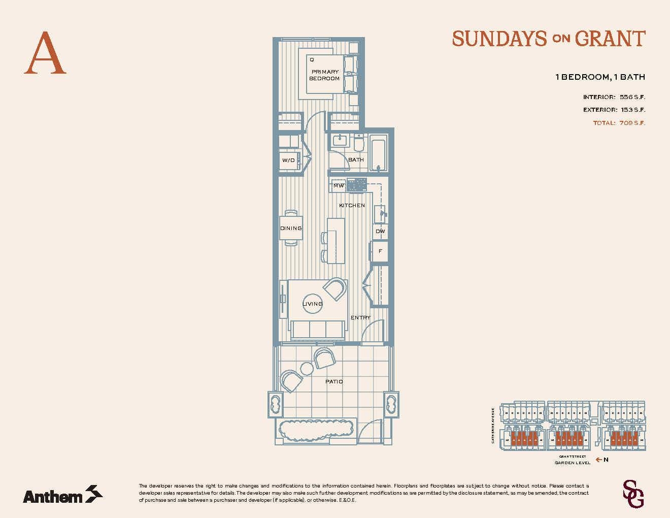 Welcome home to Sundays on Grant by Anthem, a modern community in a quiet, family-friendly pocket of West Coquitlam just 5 minutes from Burquitlam SkyTrain, shops, restaurants, and the YMCA. Located a short walk from Miller Park Elementary, Banting Middle School and the trails at Chines Park. This thoughtfully designed 556 sf 1-bedroom garden flat features your own private front door, an open-concept layout, contemporary kitchen with high-end appliances, 33" fridge and full-sized laundry. Step outside to yo...