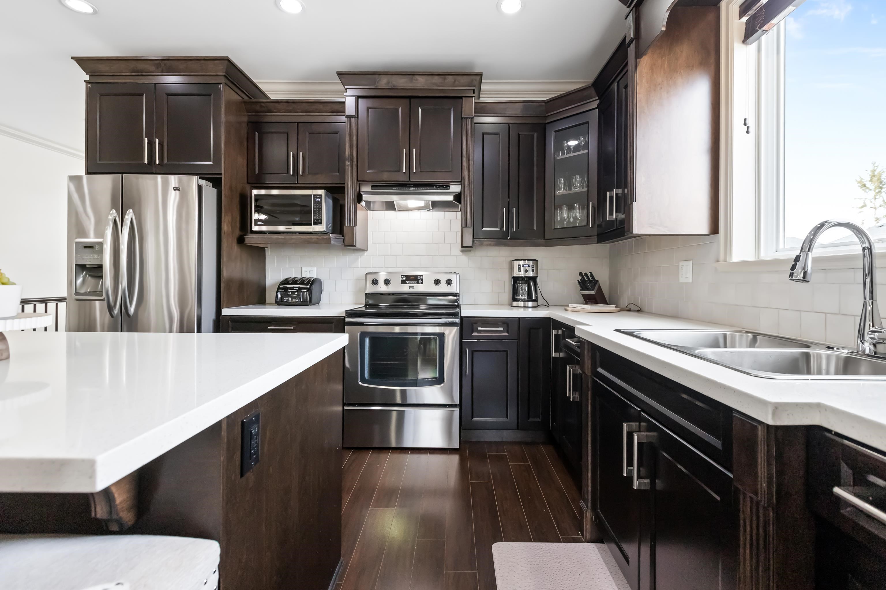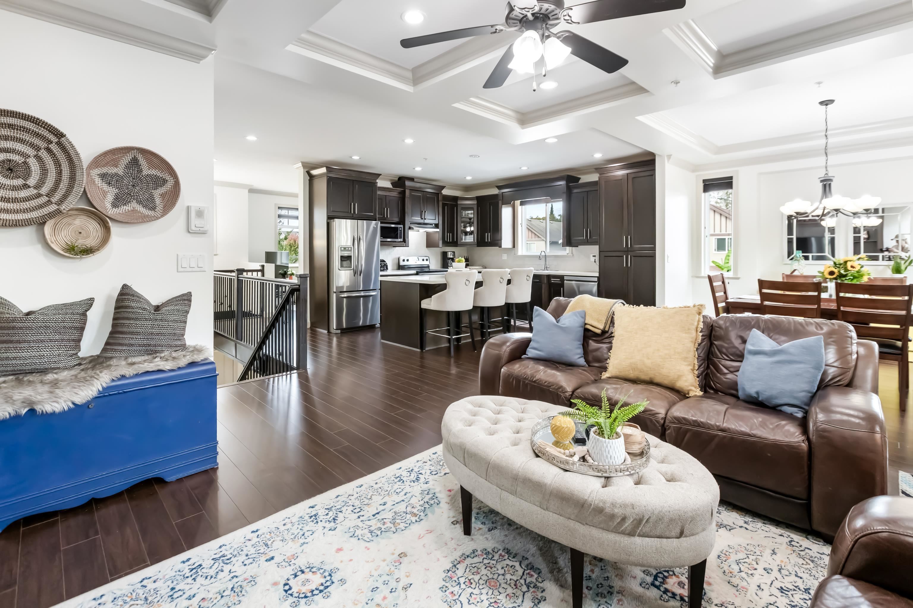 This spacious six bedroom & 3.5 bath basement entry home includes a 2-bdrm.in-law accomm. The open main floor boasts a bright, open-concept great room with stunning coffered ceiling, a spacious kitchen with abundant of cabinetry, large island, & stainless appliances. A separate living room adds a versatile space for the whole family. Main floor featuring offers 3 bdrms. including a primary with W.I closet & luxurious 5-piece ensuite. The lower level includes an additional bedroom plus a self-contained 2-bd...